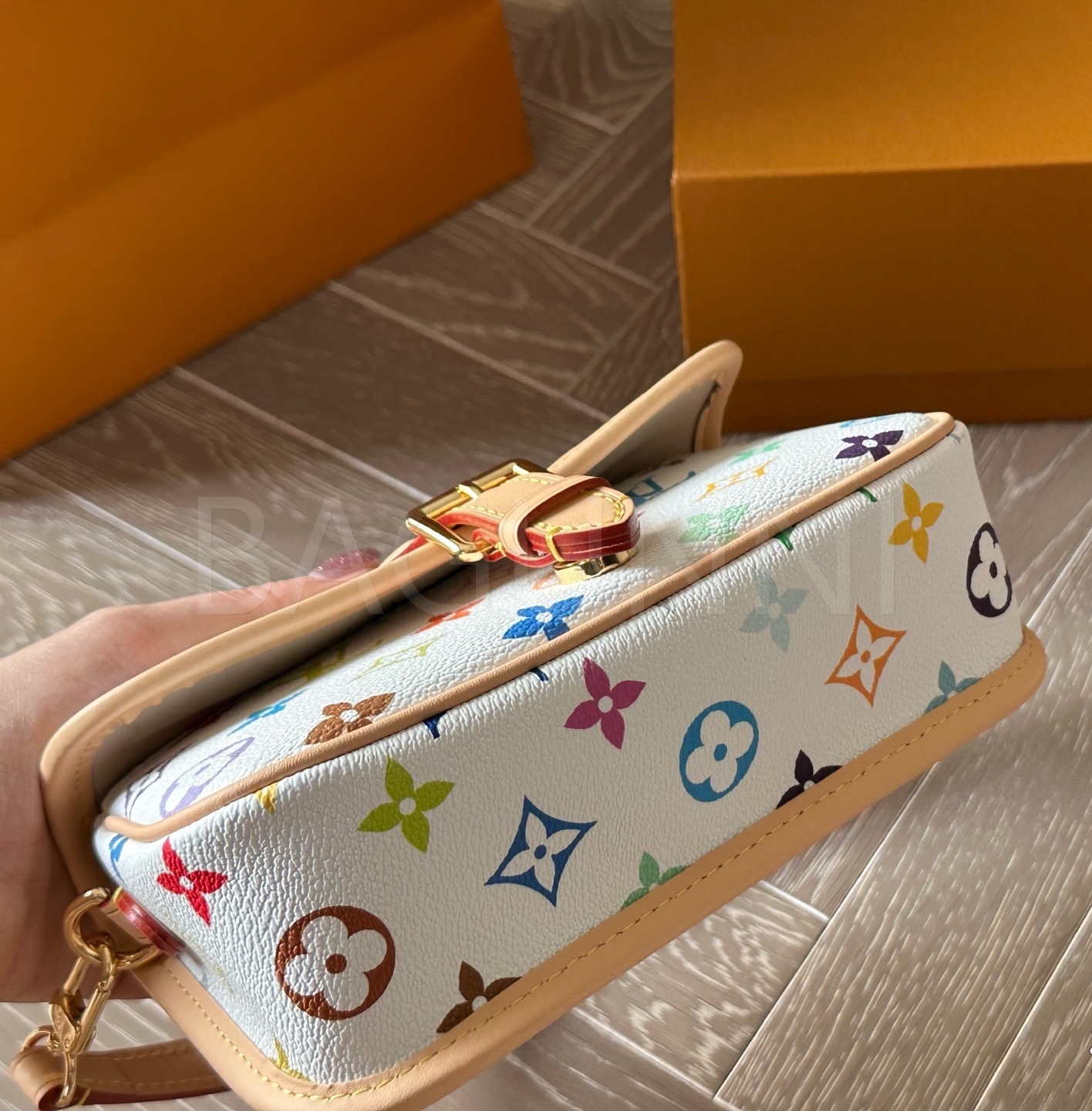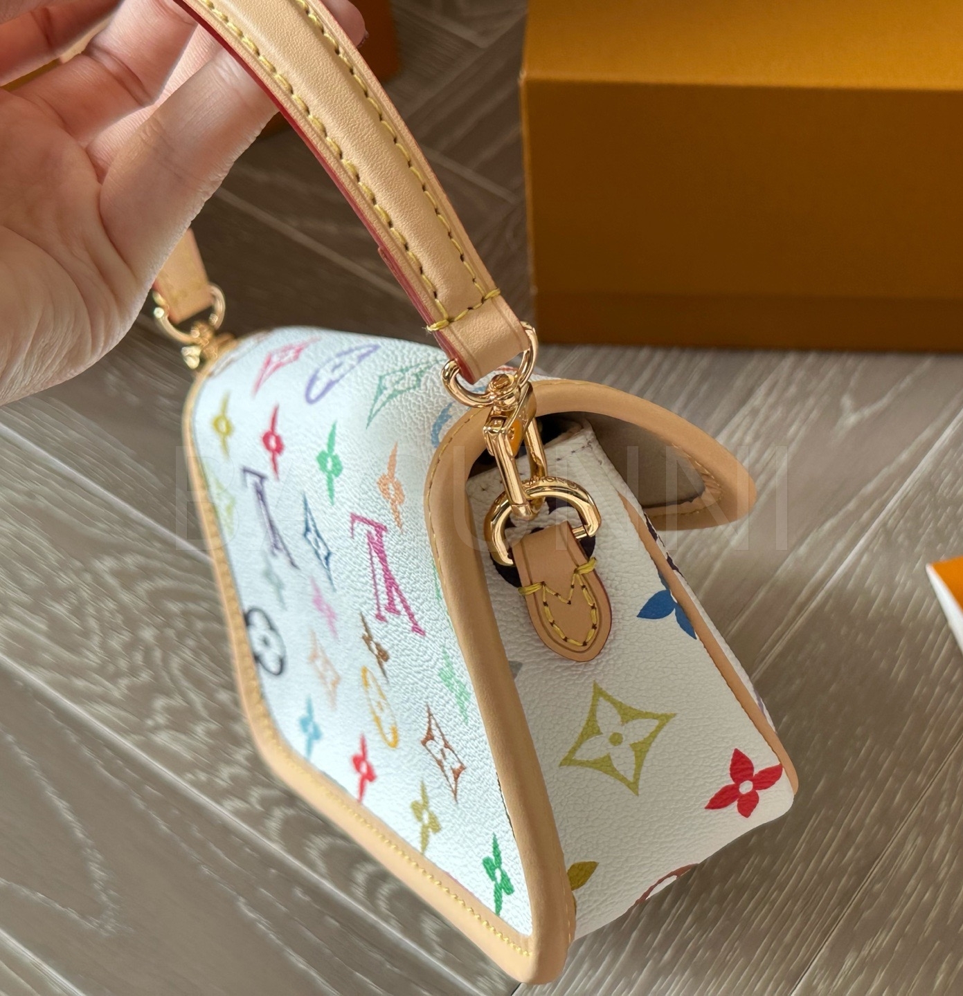 멀티컬러 모노그램, 탑핸들, 조절 가능한 스트랩, 슬림한 숄더 실루엣 디테일이 조화롭게 어우러져 완성도를 높여줍니다 데일리룩부터 가벼운 외출까지 부담 없이 활용하기 좋습니다