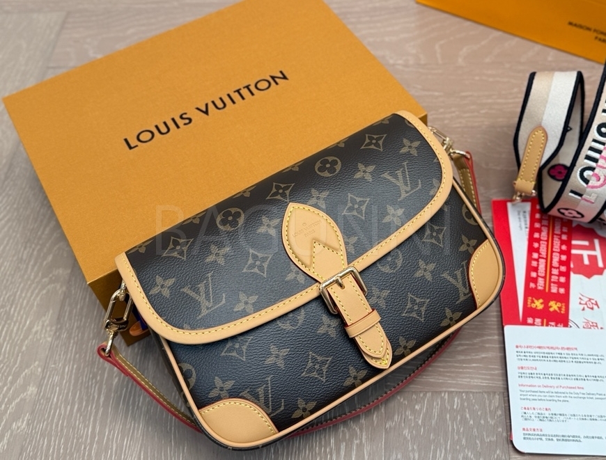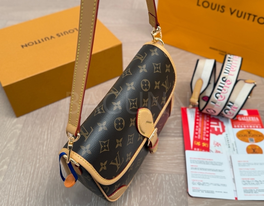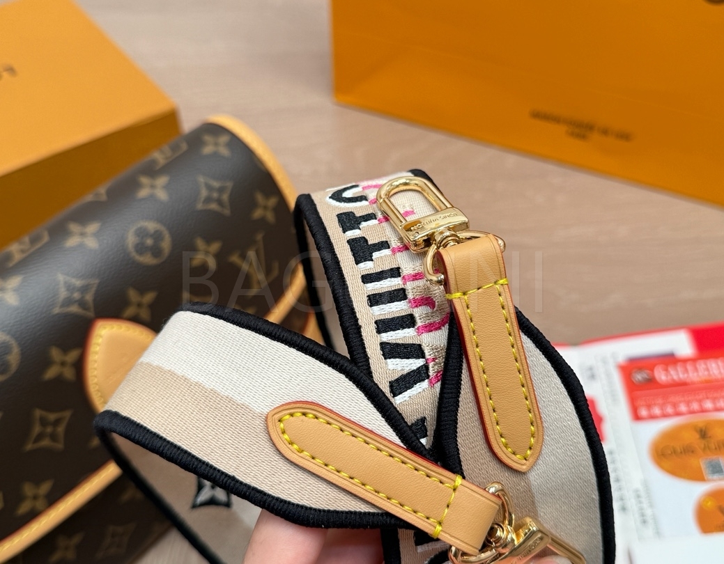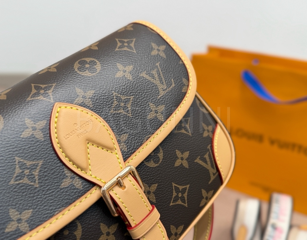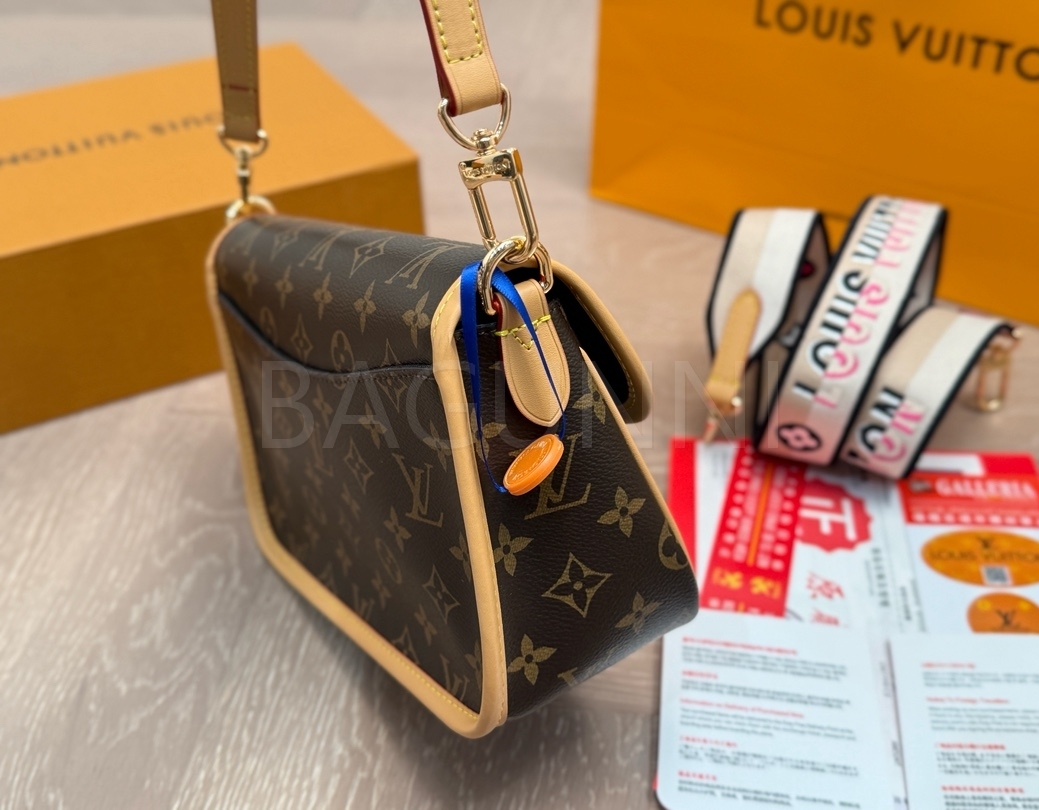 클래식한 캔버스 무드가 돋보이는 루이비통 다이앤 숄더백입니다.