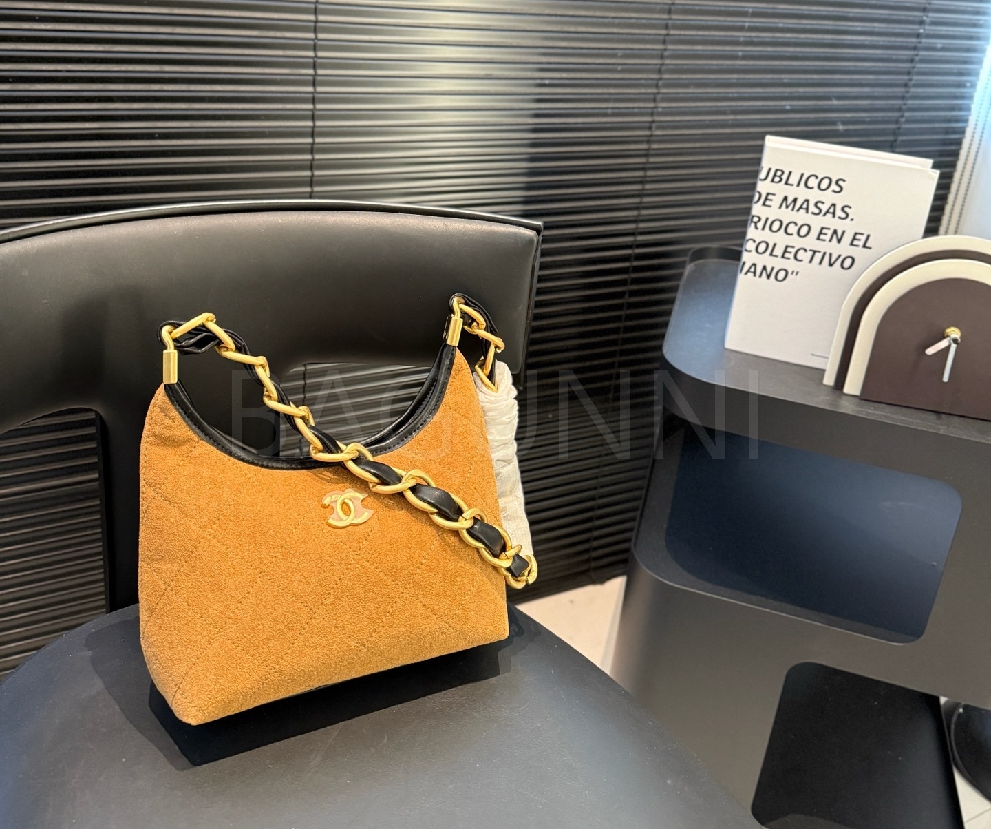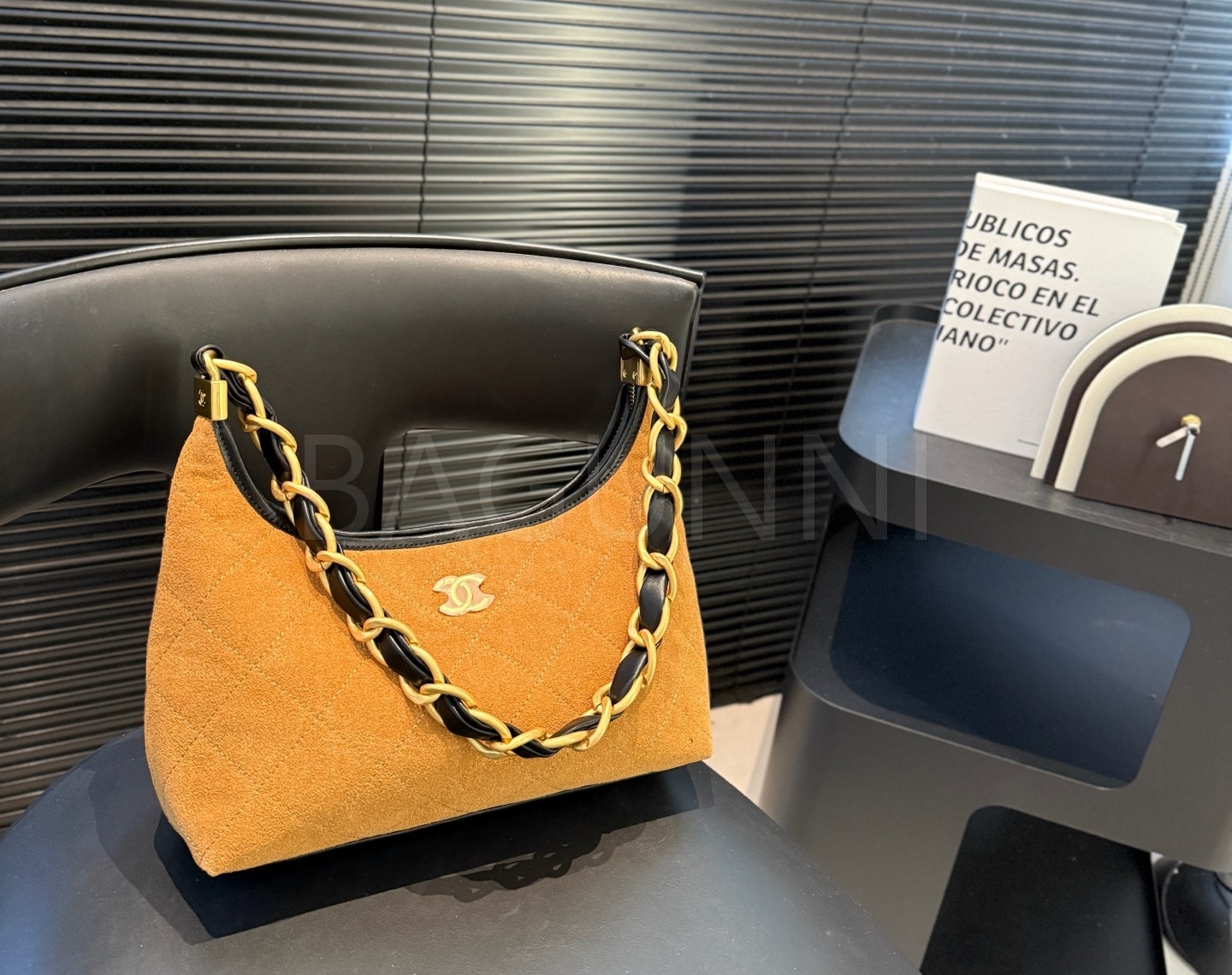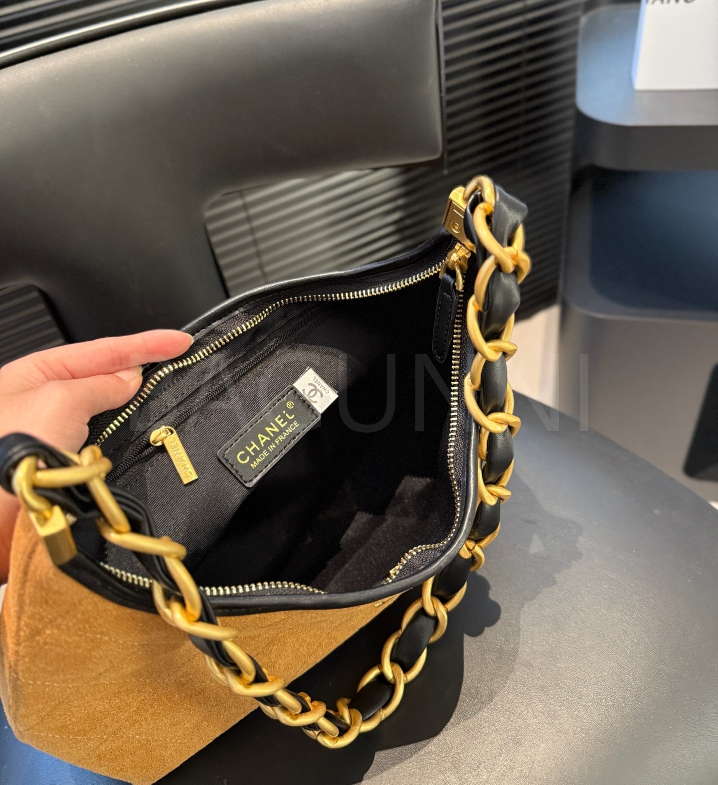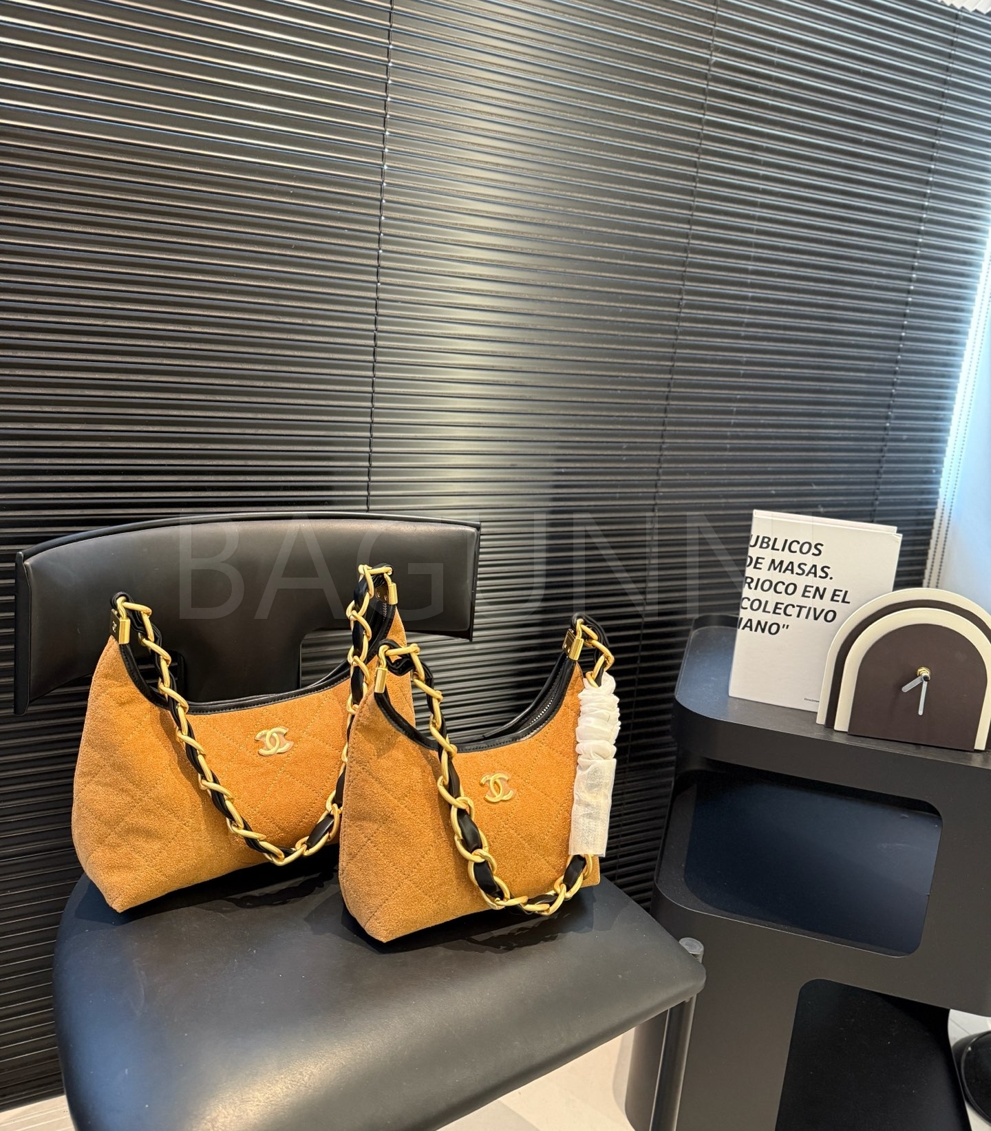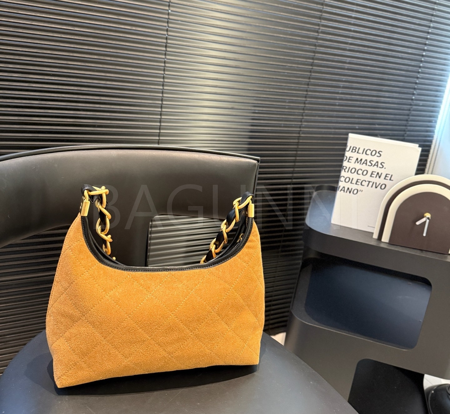 스웨이드 특유의 매력이 돋보이는 샤넬 스웨이드 호보 백입니다.