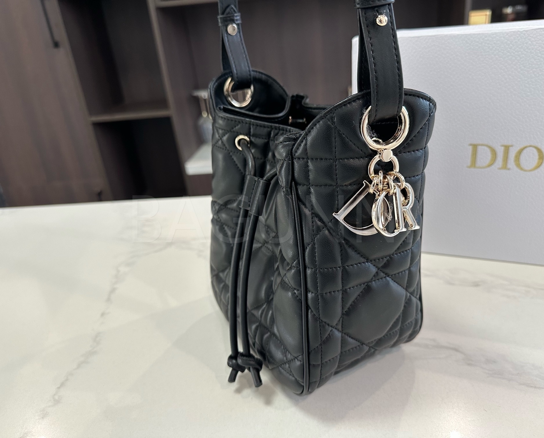 디올 까나쥬 버킷백입니다. 램스킨 특유의 질감이 자연스럽게 살아 있으며 브랜드 특유의 분위기를 편하게 즐기기 좋습니다.