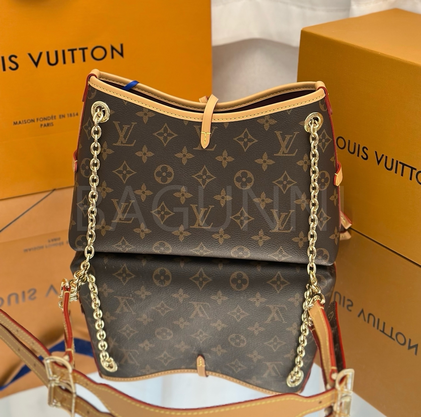 루이비통 특유의 세련된 분위기가 돋보이는 루이비통 캐리올 숄더백입니다.