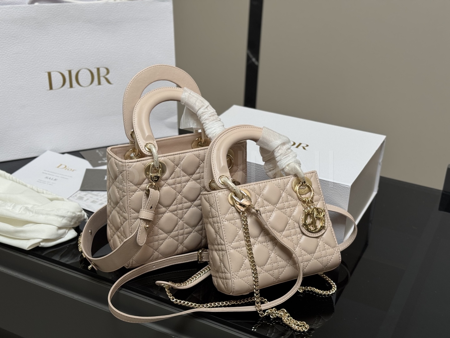 디올 레더 백입니다. 가죽 특유의 질감이 자연스럽게 살아 있으며 브랜드 특유의 분위기를 편하게 즐기기 좋습니다.