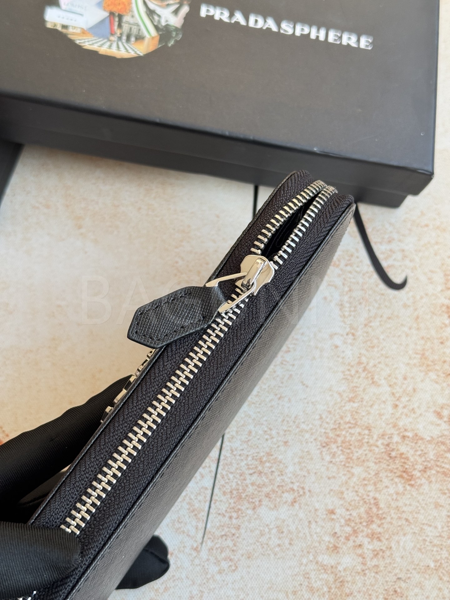 사피아노 질감이 깔끔하게 살아있는 프라다 사피아노 지퍼 장지갑입니다.