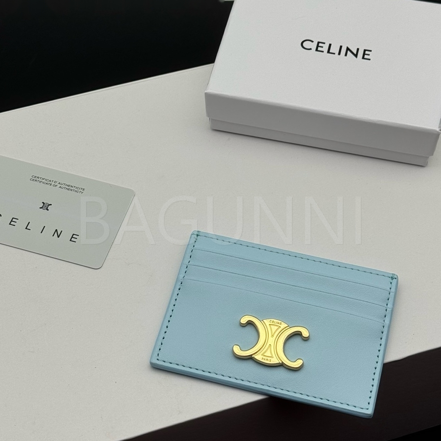 카프스킨의 질감이 돋보이는 셀린느 트리옹프 플랩 카드지갑입니다.