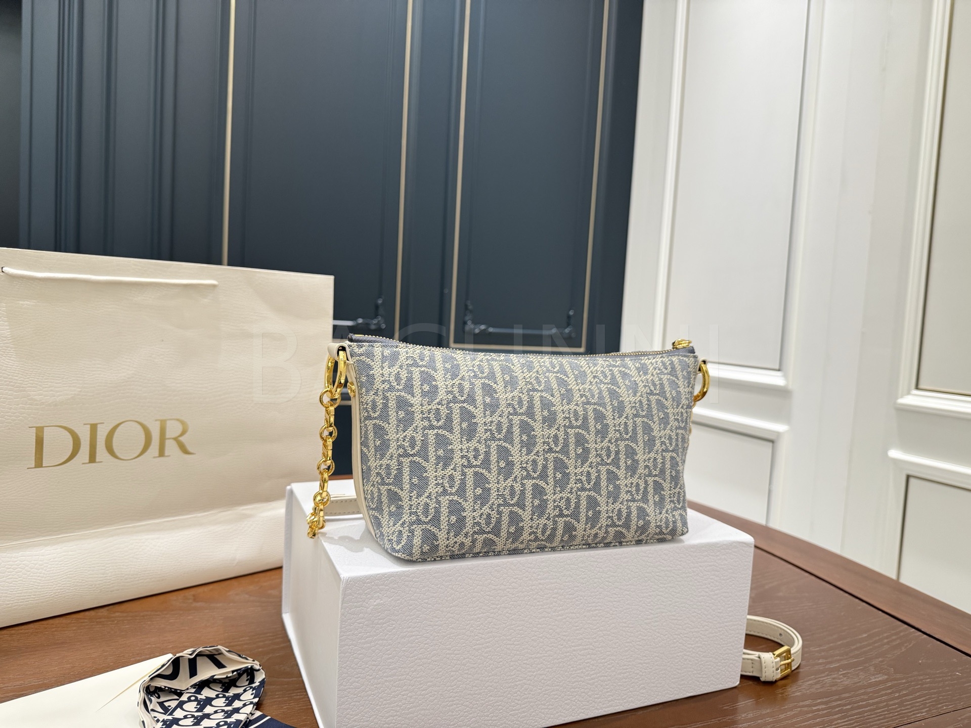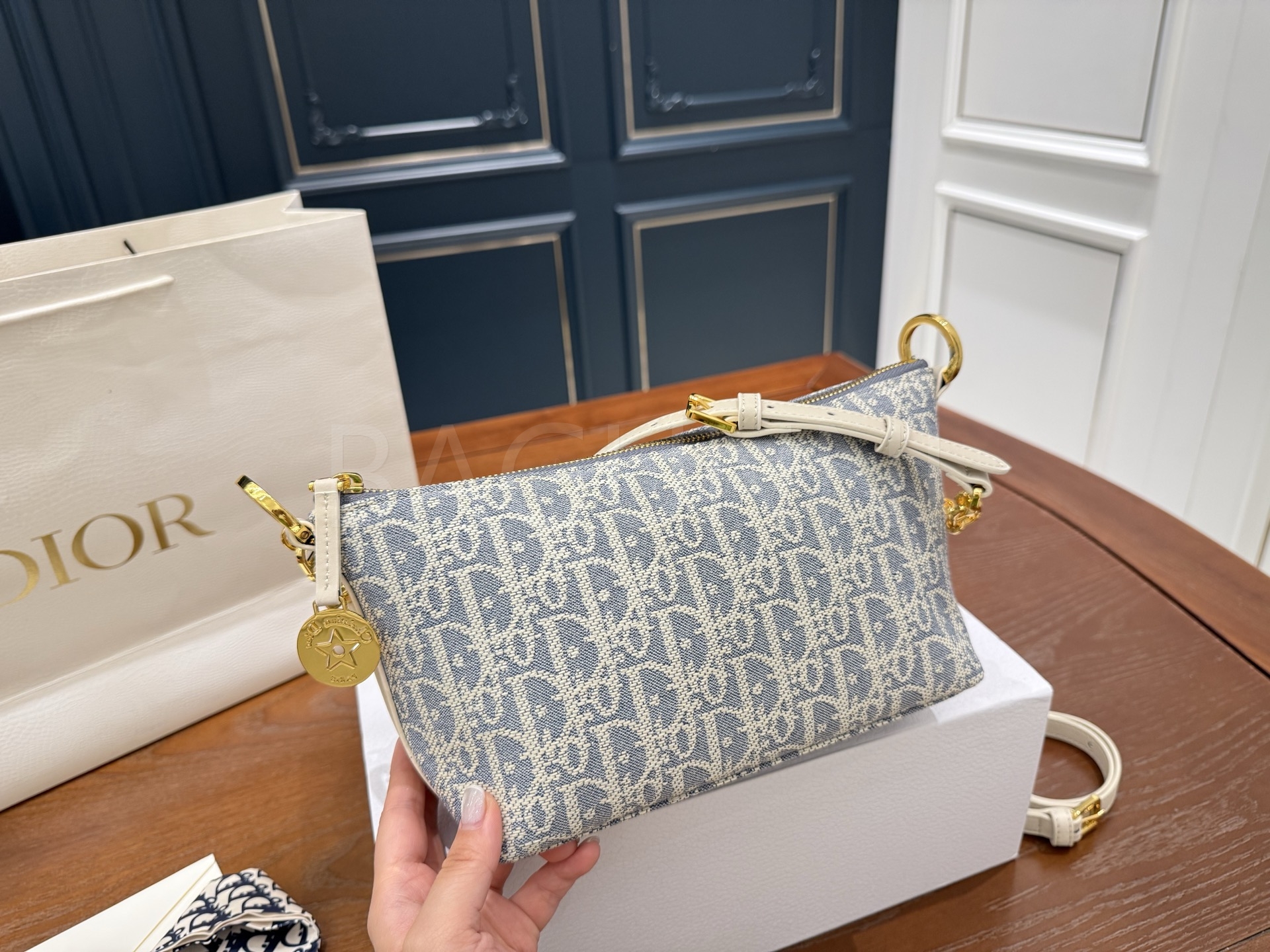 디올 디올스타 숄더백입니다. 가죽 특유의 질감이 자연스럽게 살아 있으며 블루 톤이 어우러져 브랜드 특유의 분위기를 편하게 즐기기 좋습니다.