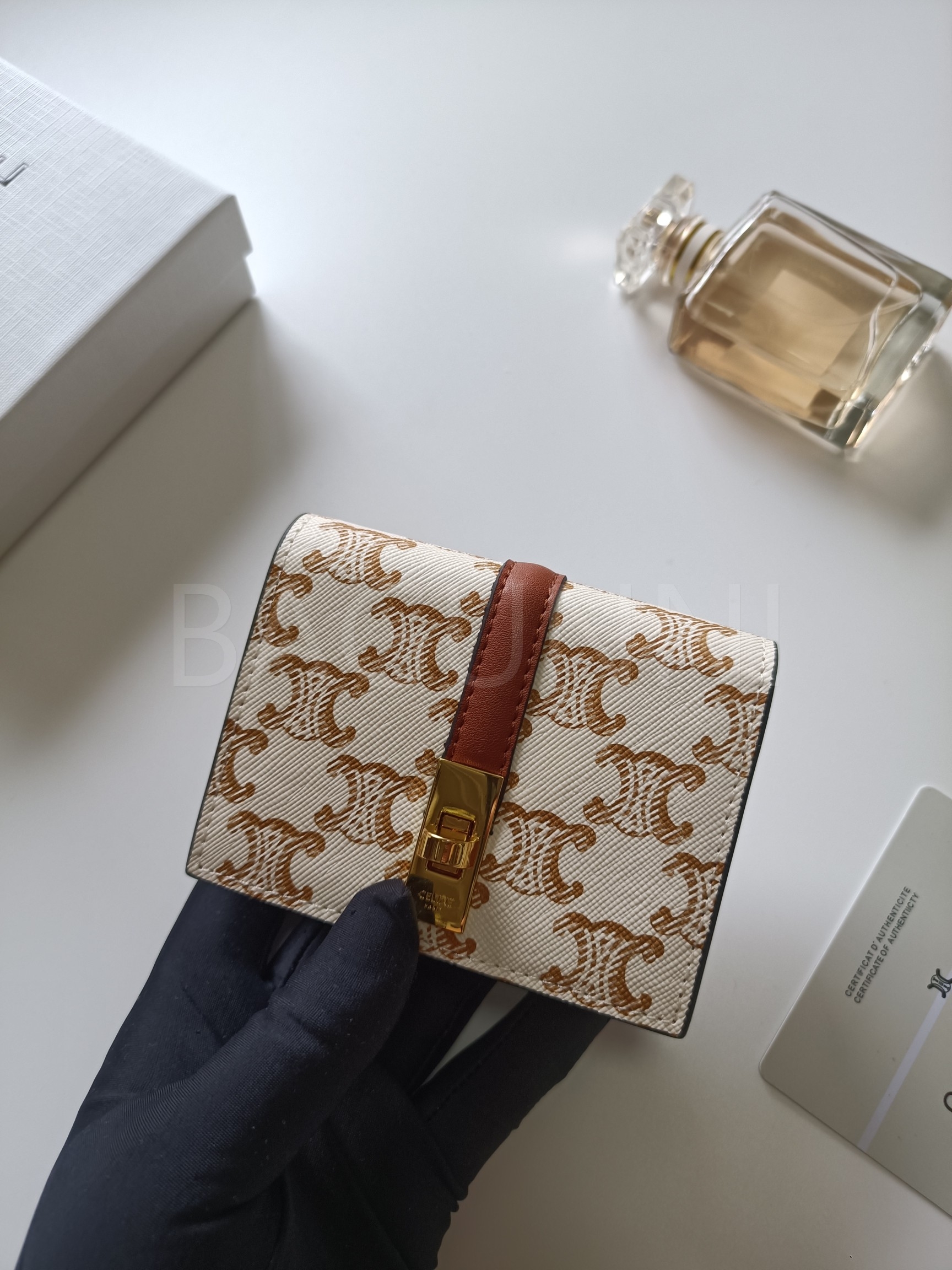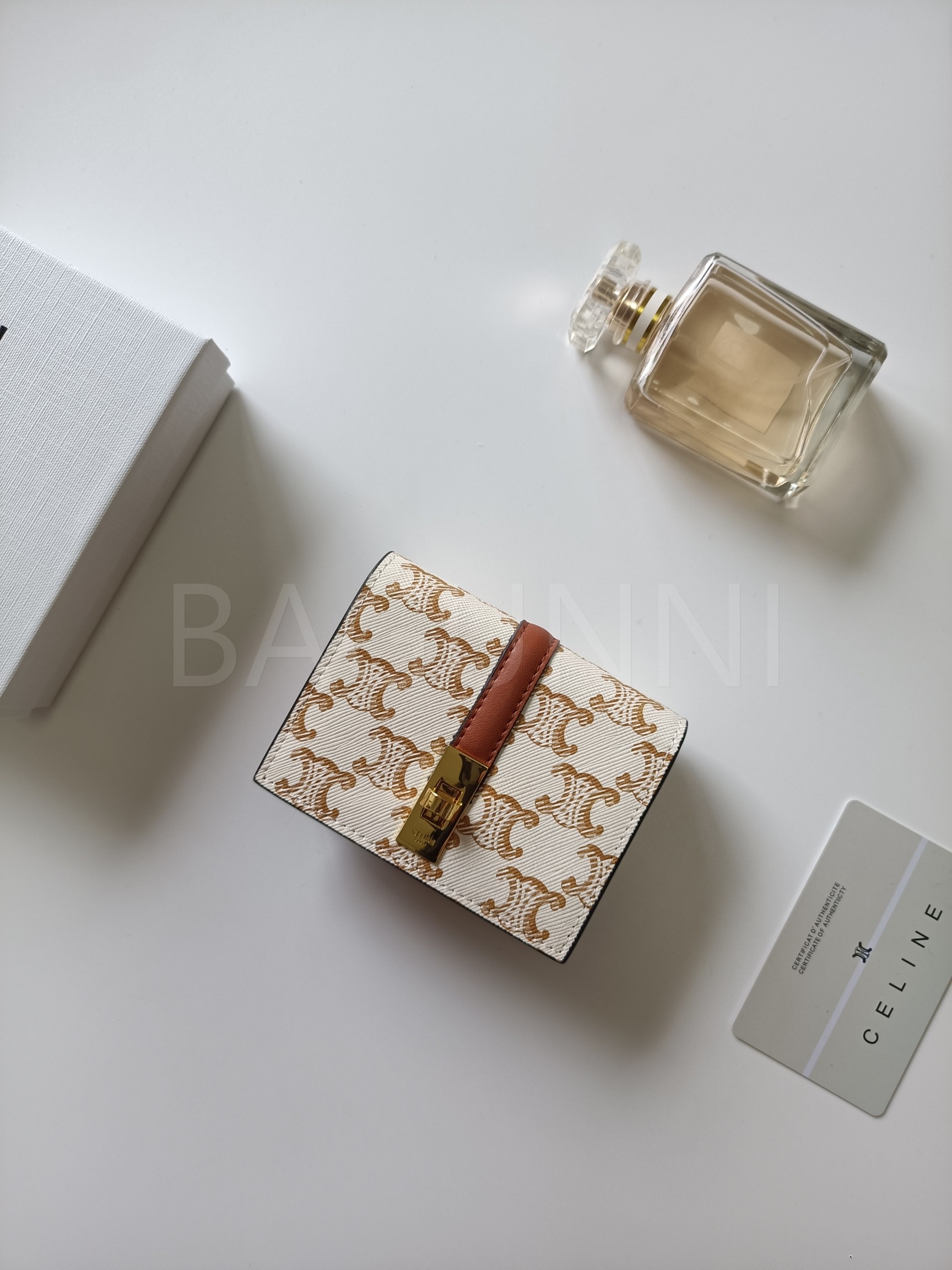 셀린느 특유의 무드가 자연스럽게 살아있는 트리옹프 플랩 카드지갑입니다.
