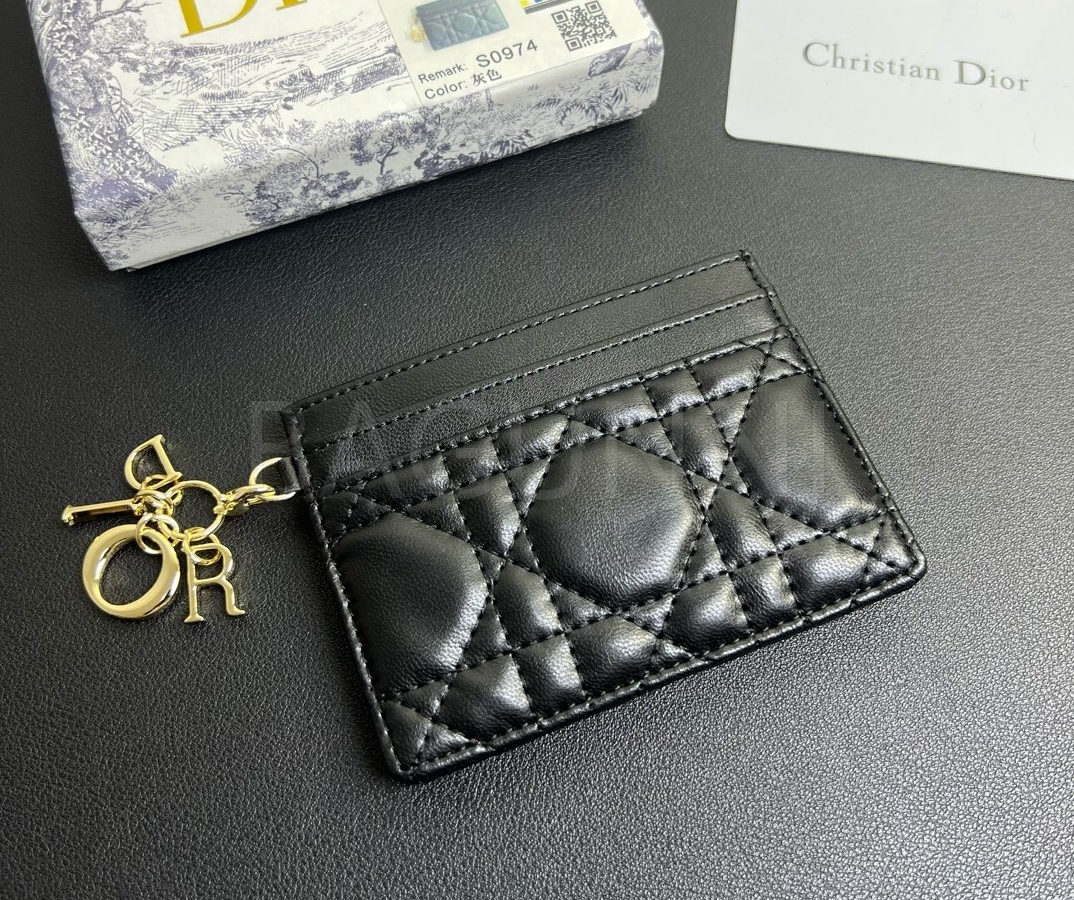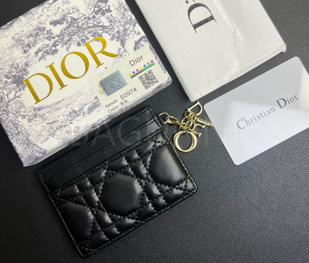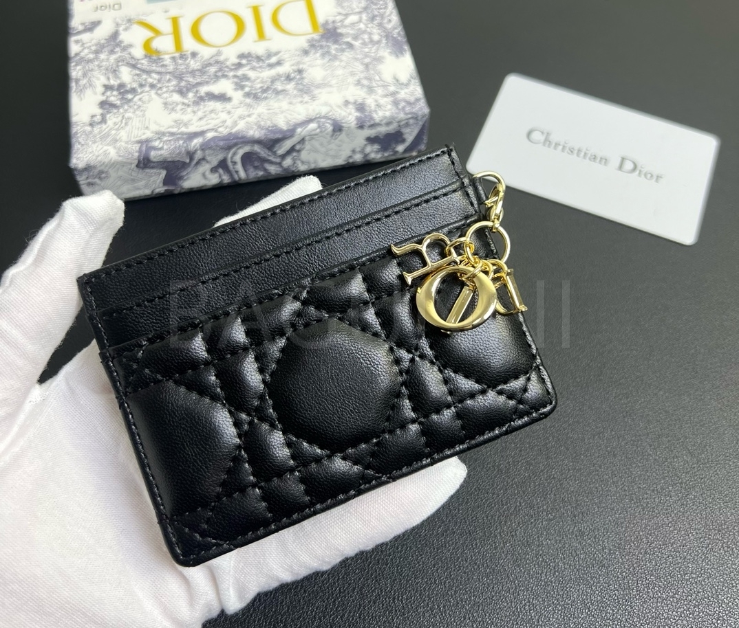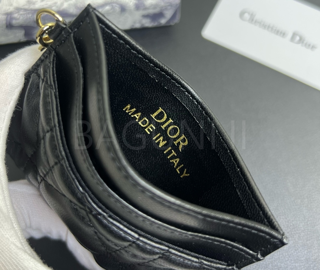 카프스킨의 질감이 돋보이는 디올 레이디 디올 카드지갑입니다.