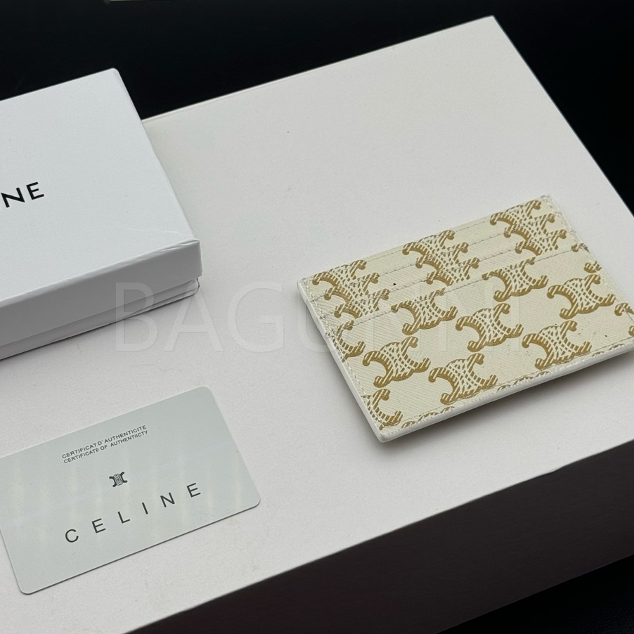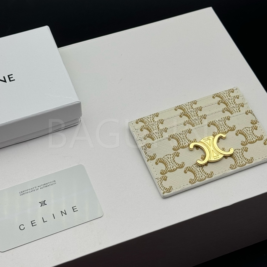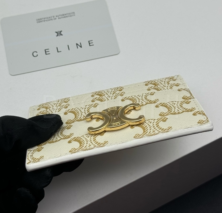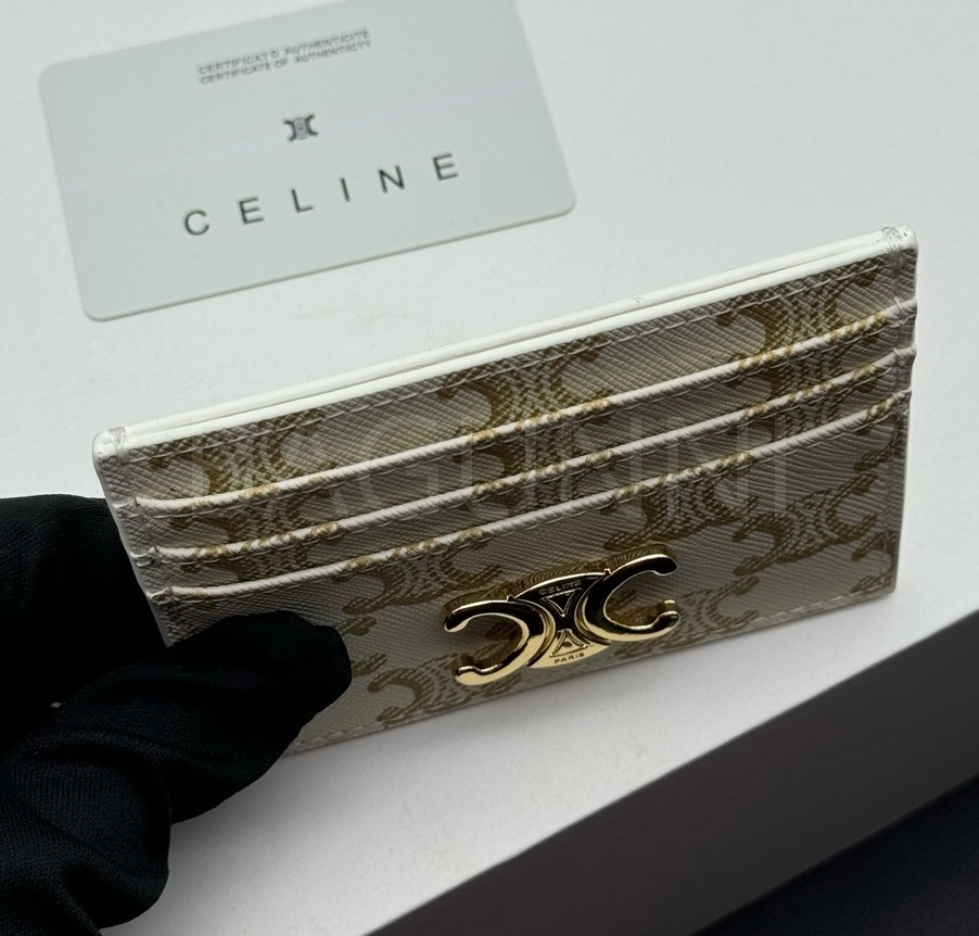 카프스킨의 질감이 돋보이는 셀린느 트리옹프 플랩 카드지갑입니다.