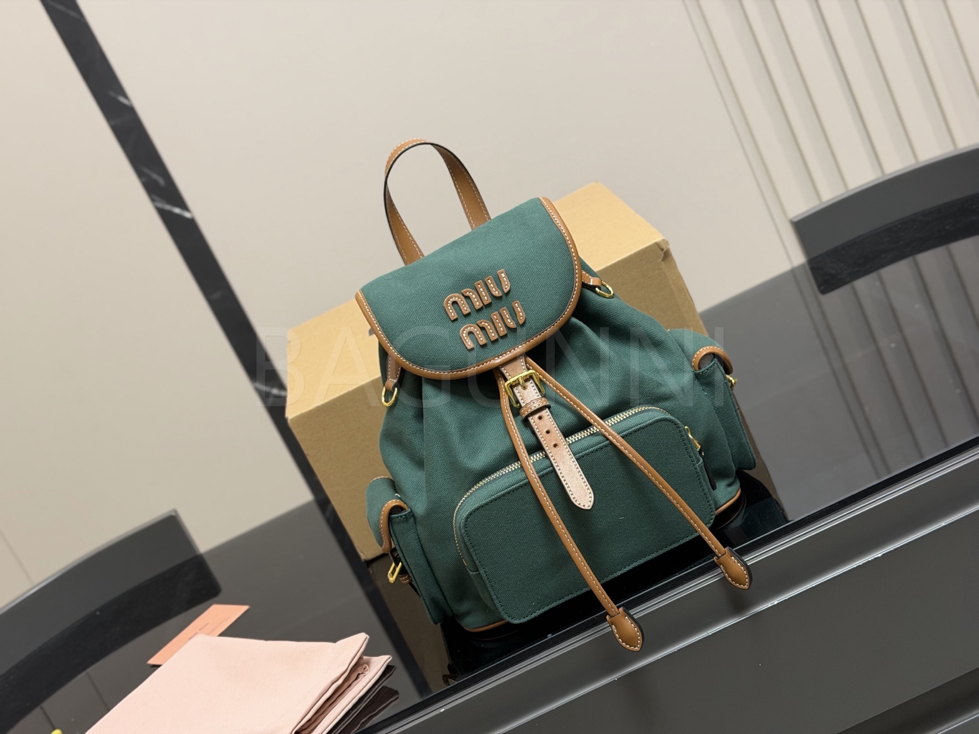 미우미우 로고 캔버스 백팩