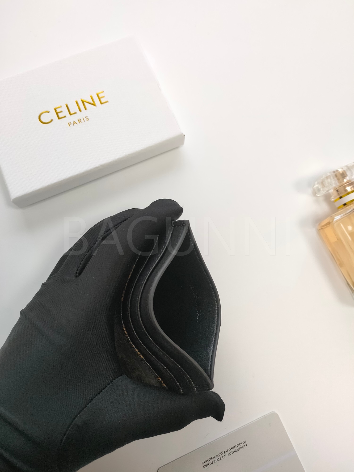 카프스킨의 질감이 돋보이는 셀린느 플랩 카드지갑입니다.