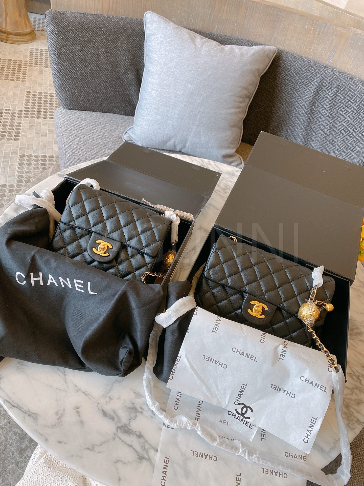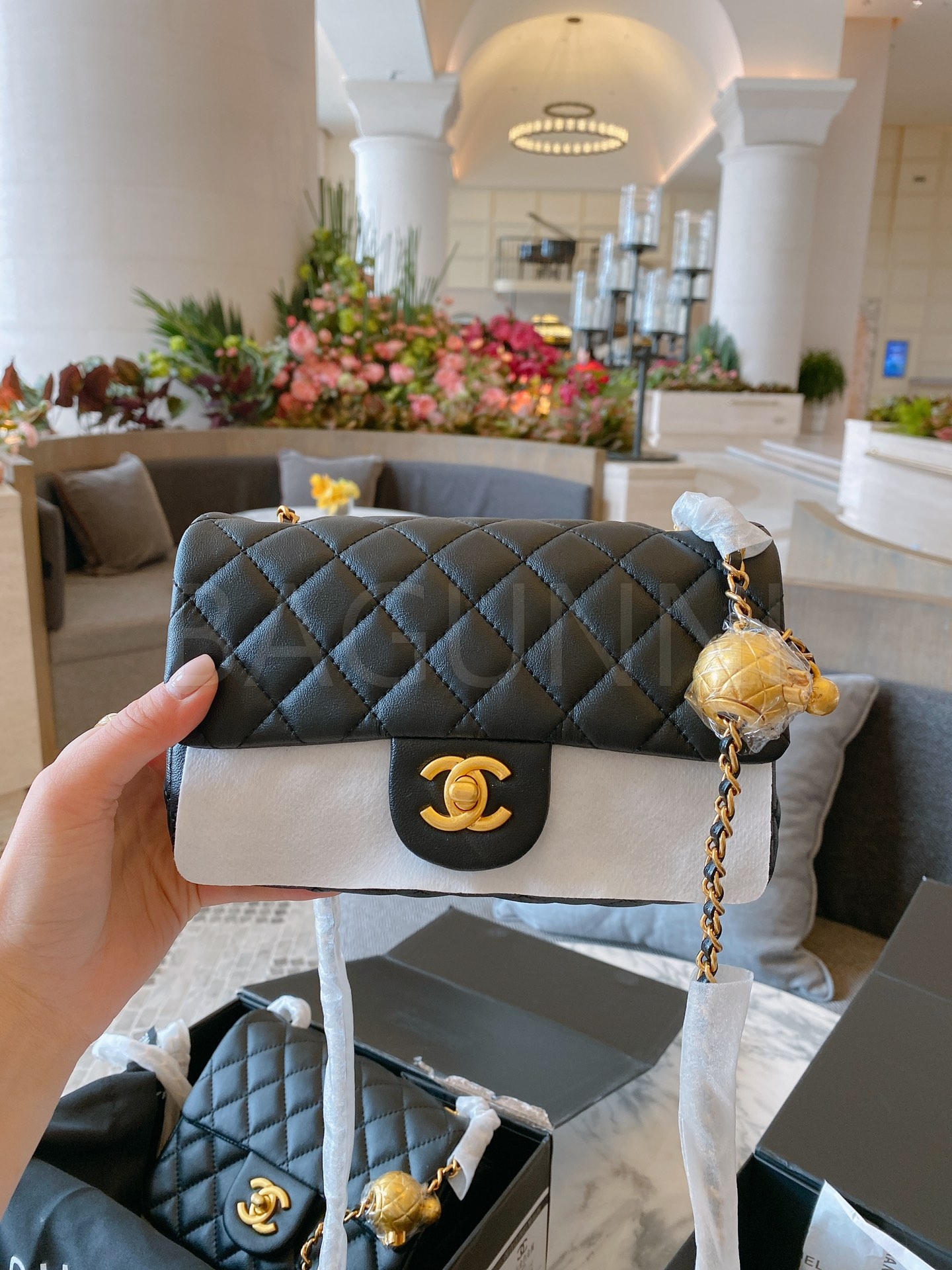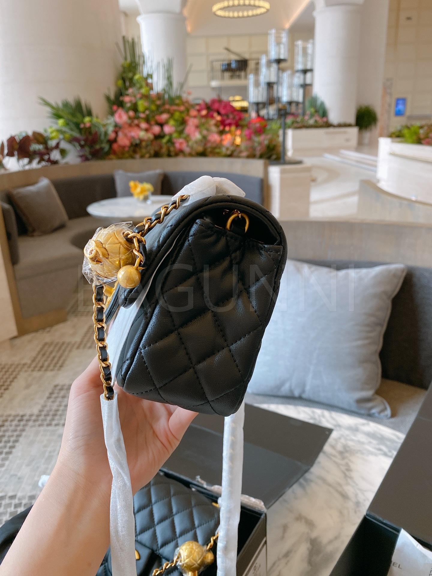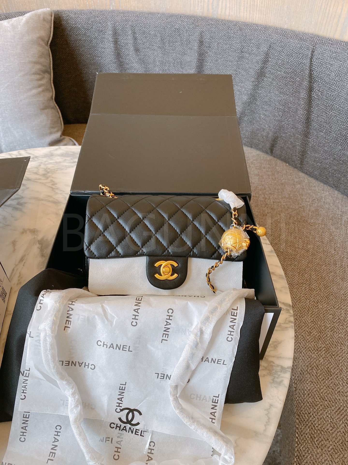 샤넬 금볼 스퀘어 플랩 백