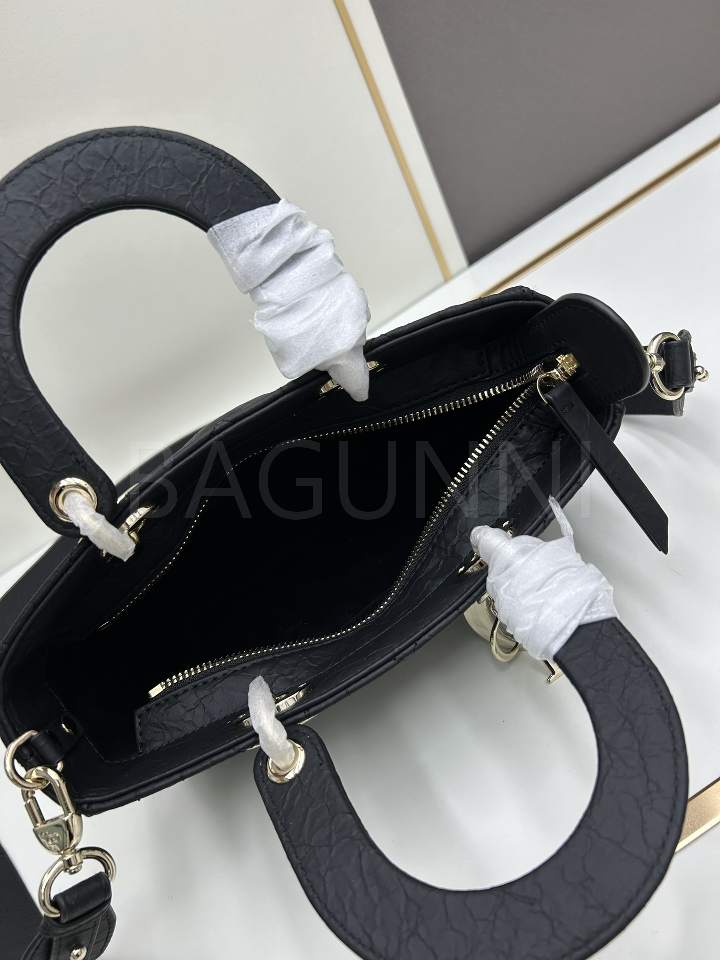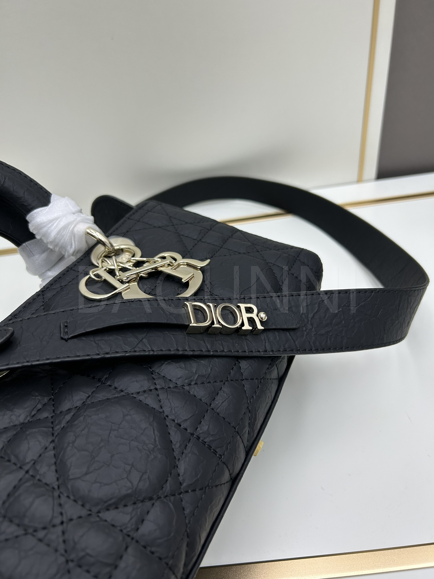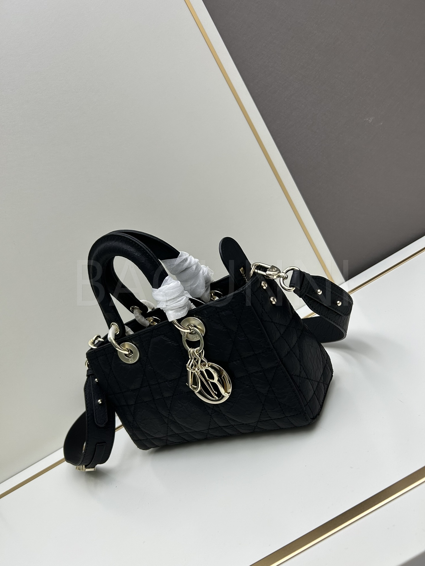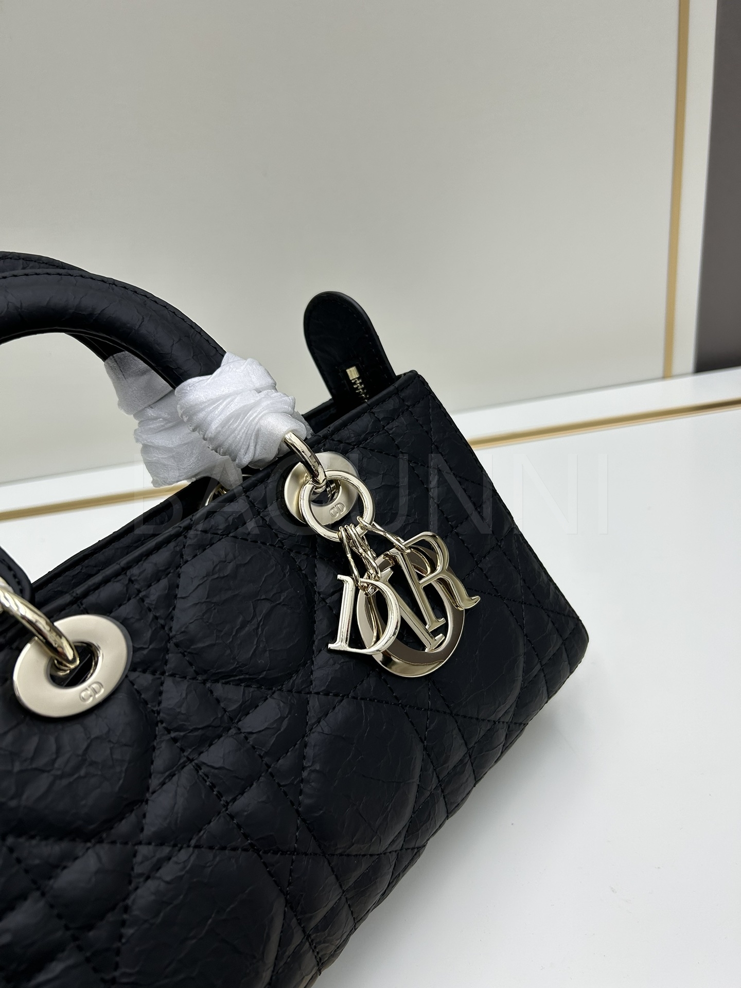 디올 레이디 디올 토트백입니다. 가죽 특유의 질감이 자연스럽게 살아 있으며 블랙 톤이 어우러져 브랜드 특유의 분위기를 편하게 즐기기 좋습니다.
