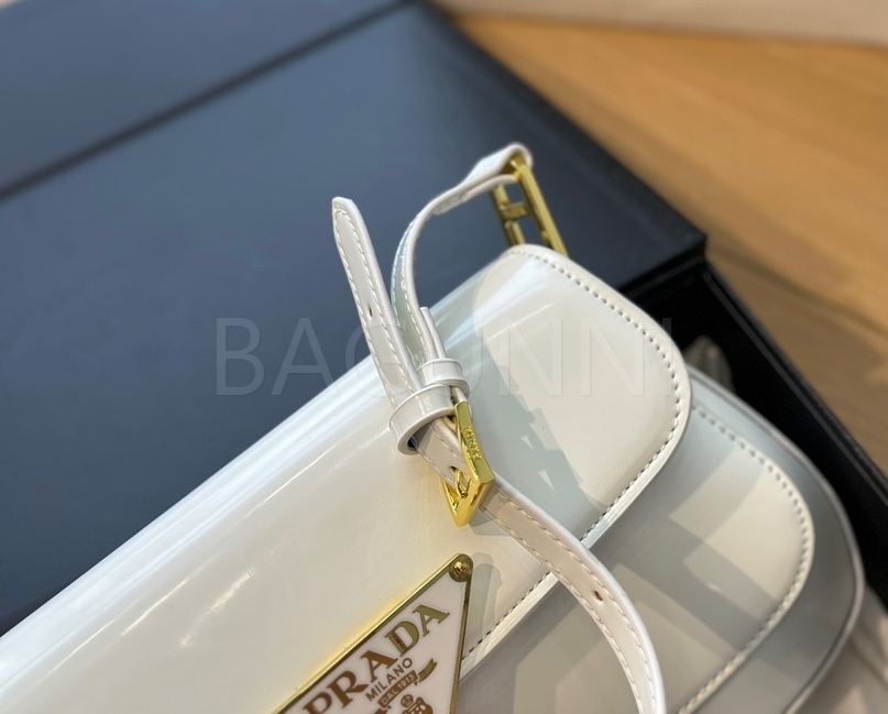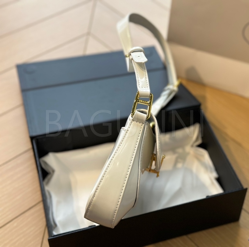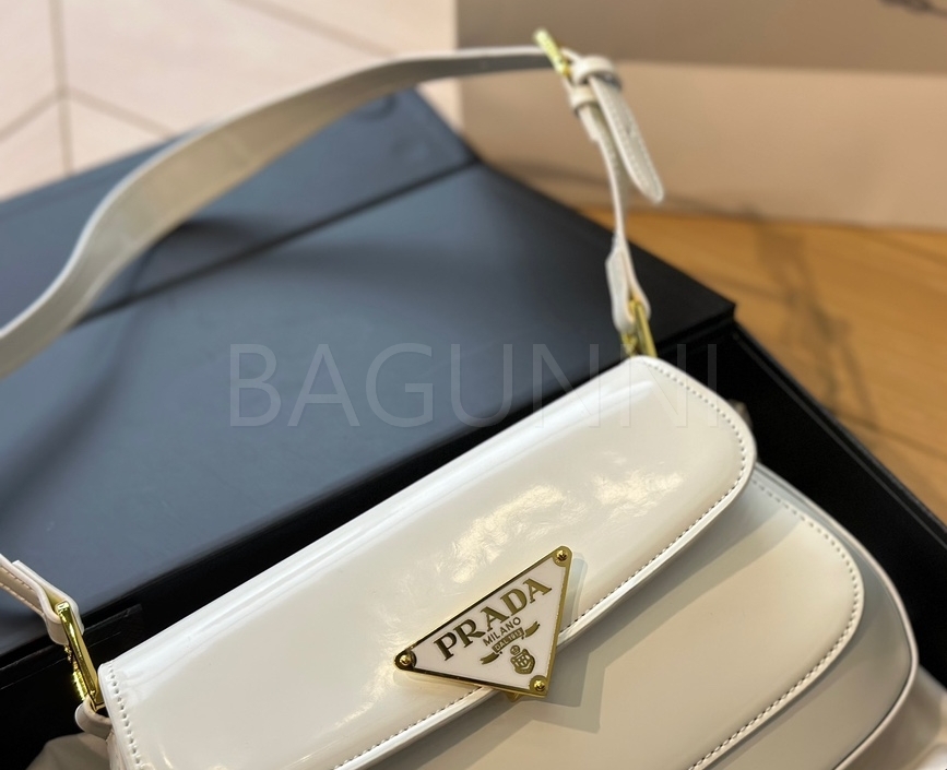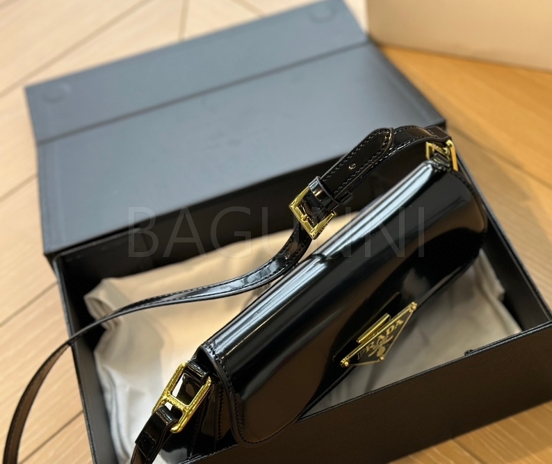 프라다 페이턴트 숄더백입니다. 페이턴트 가죽 특유의 질감이 자연스럽게 살아 있으며 브랜드 특유의 분위기를 편하게 즐기기 좋습니다.