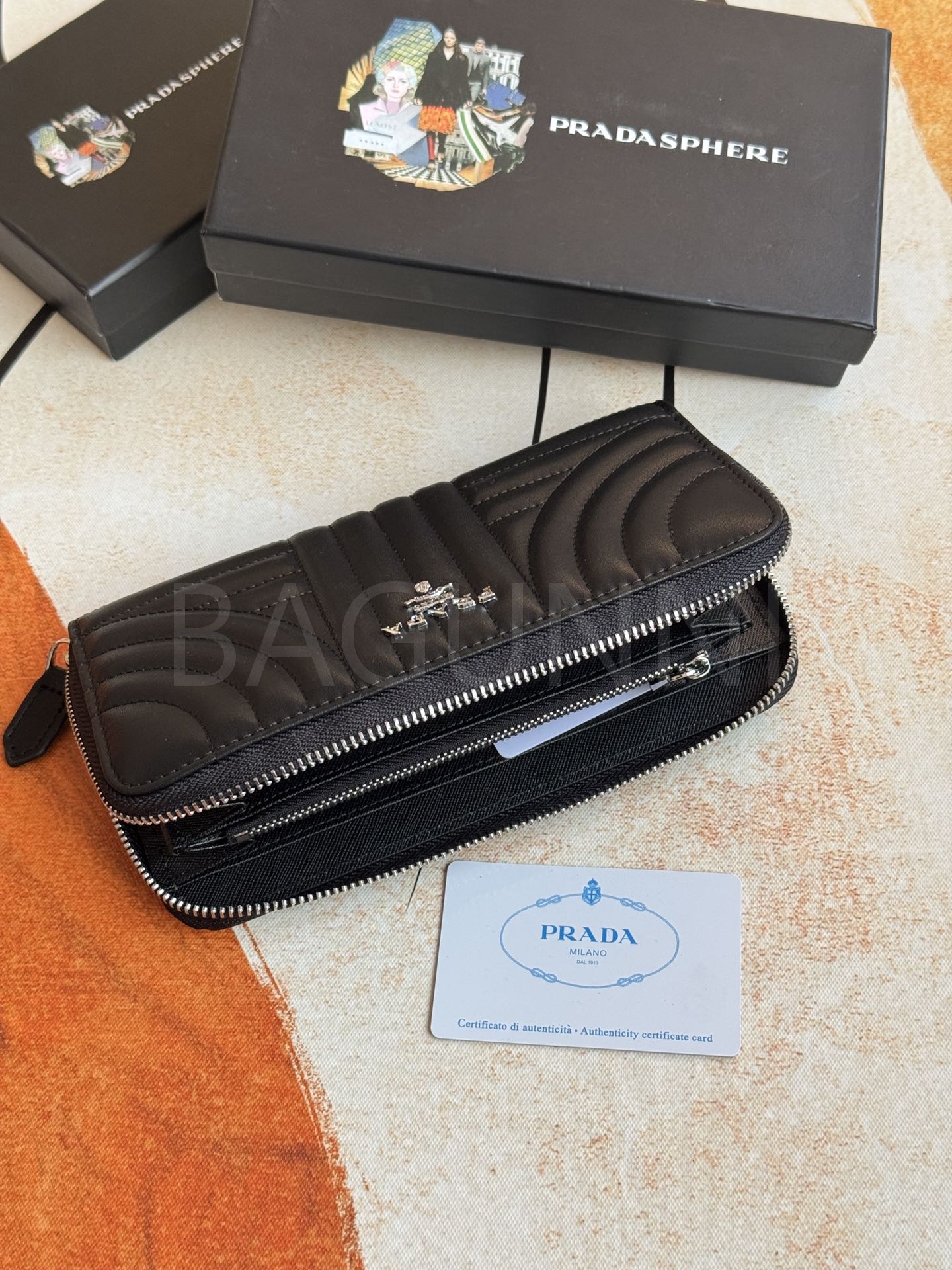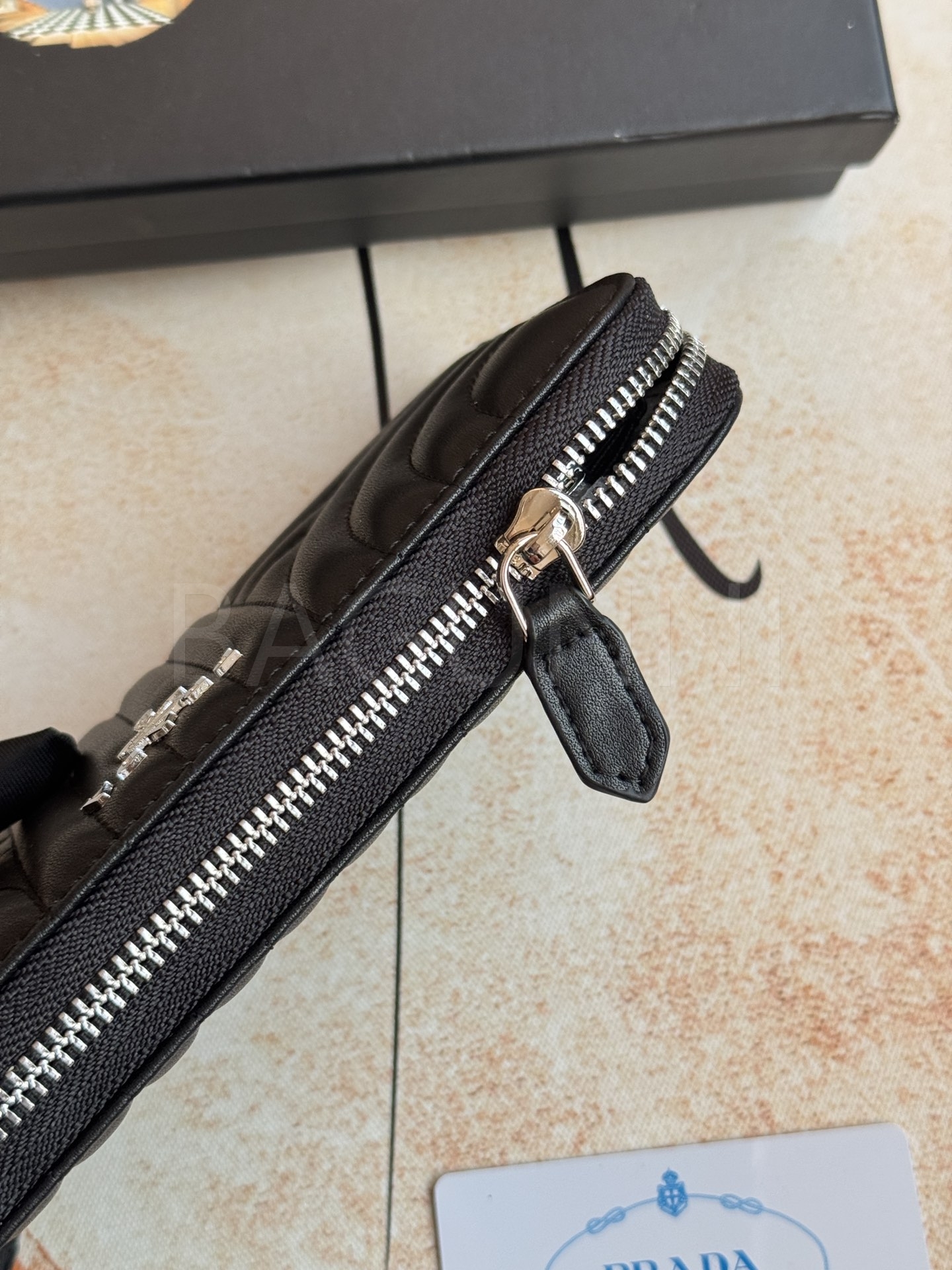 사피아노 질감이 깔끔하게 살아있는 프라다 사피아노 지퍼 장지갑입니다.