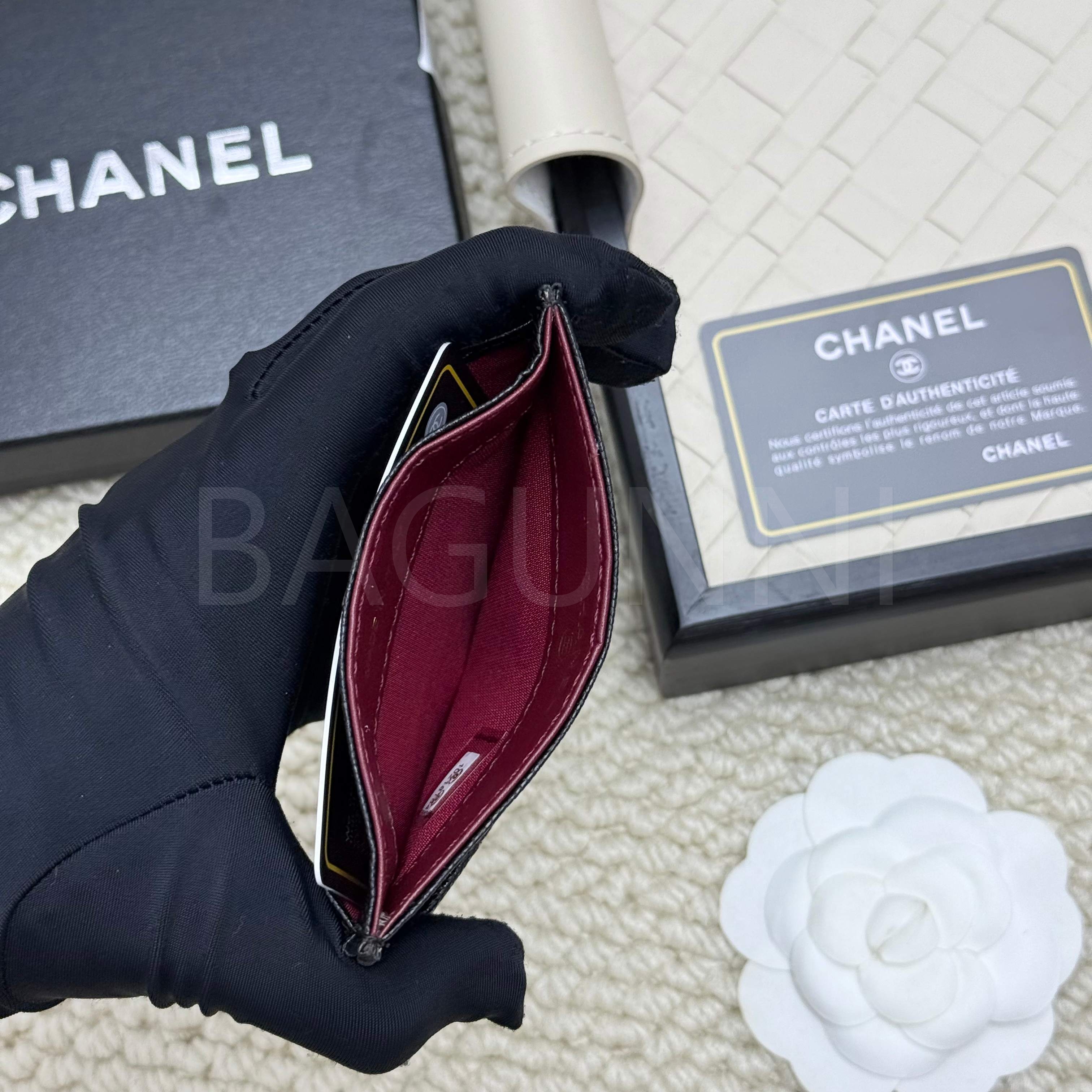 램스킨의 질감이 돋보이는 샤넬 클래식 플랩 카드지갑입니다.