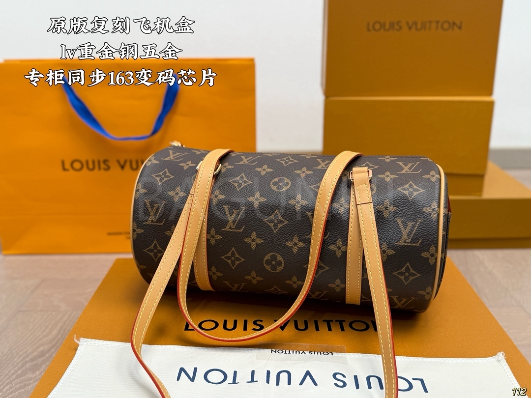 클래식한 캔버스 무드가 돋보이는 루이비통 원통 숄더백입니다.