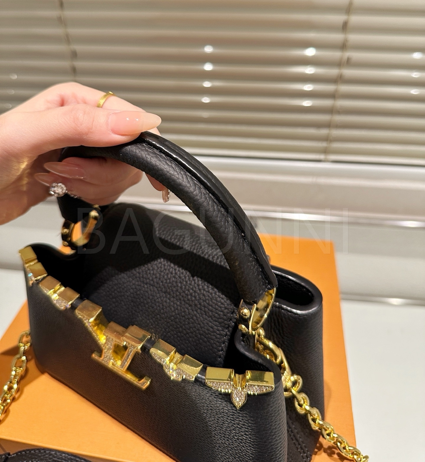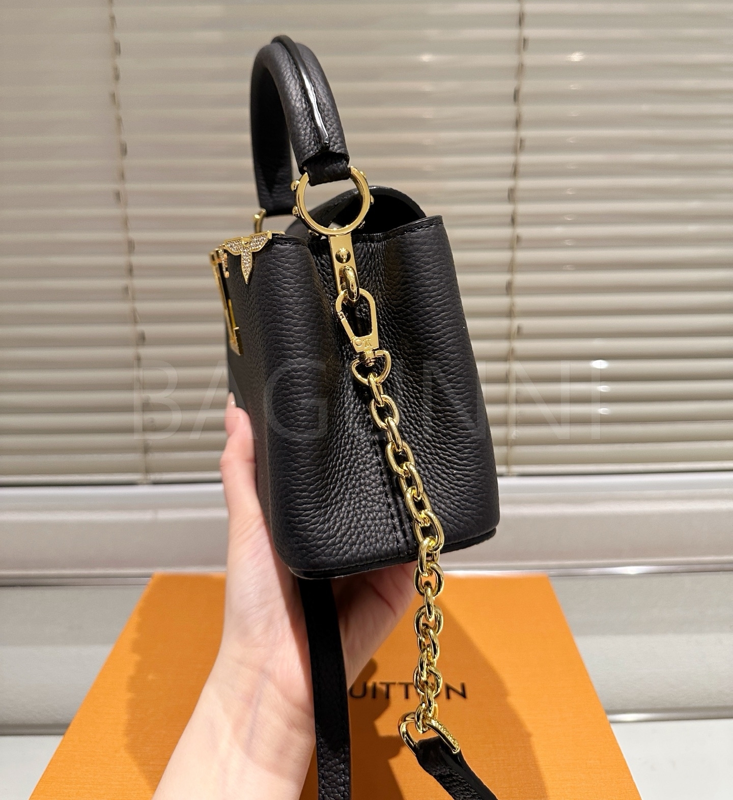 루이비통 카퓌신 미니 탑핸들백은 세련된 실루엣을 담은 아이템입니다.