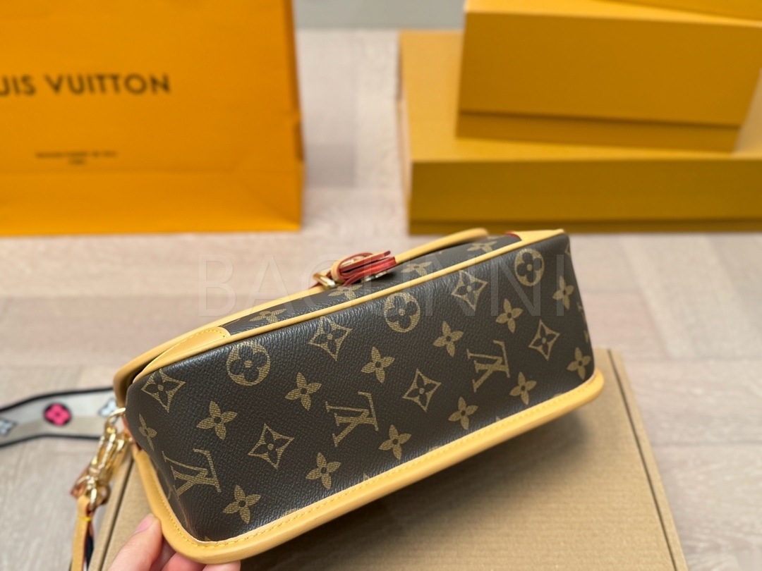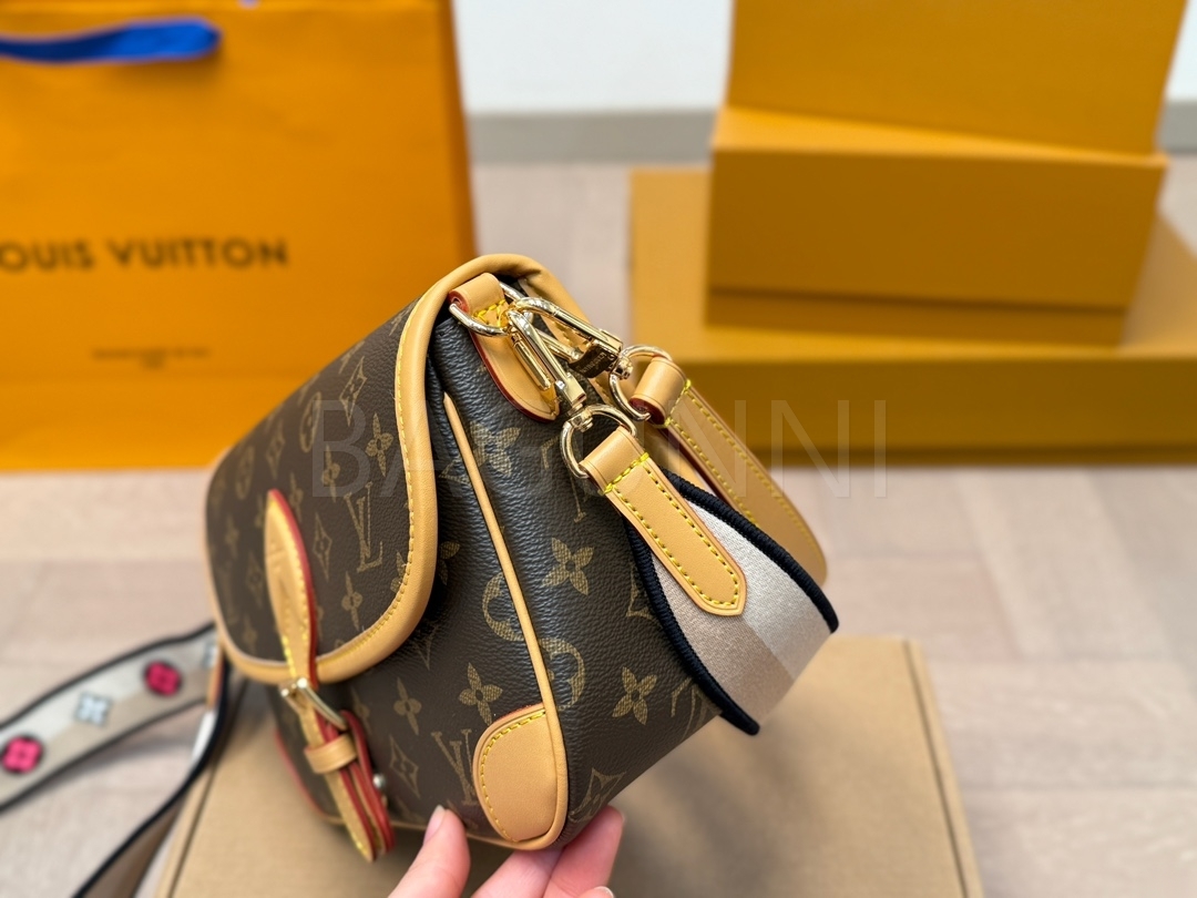 클래식한 캔버스 무드가 돋보이는 루이비통 다이앤 숄더백입니다.