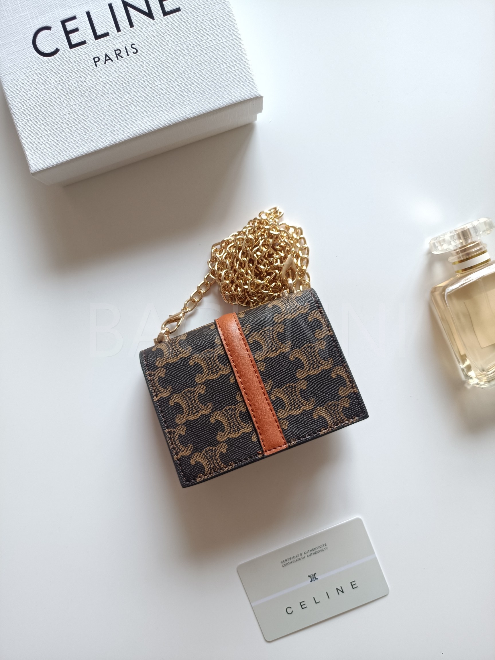 셀린느 특유의 무드가 자연스럽게 살아있는 트리옹프 플랩 카드지갑입니다.
