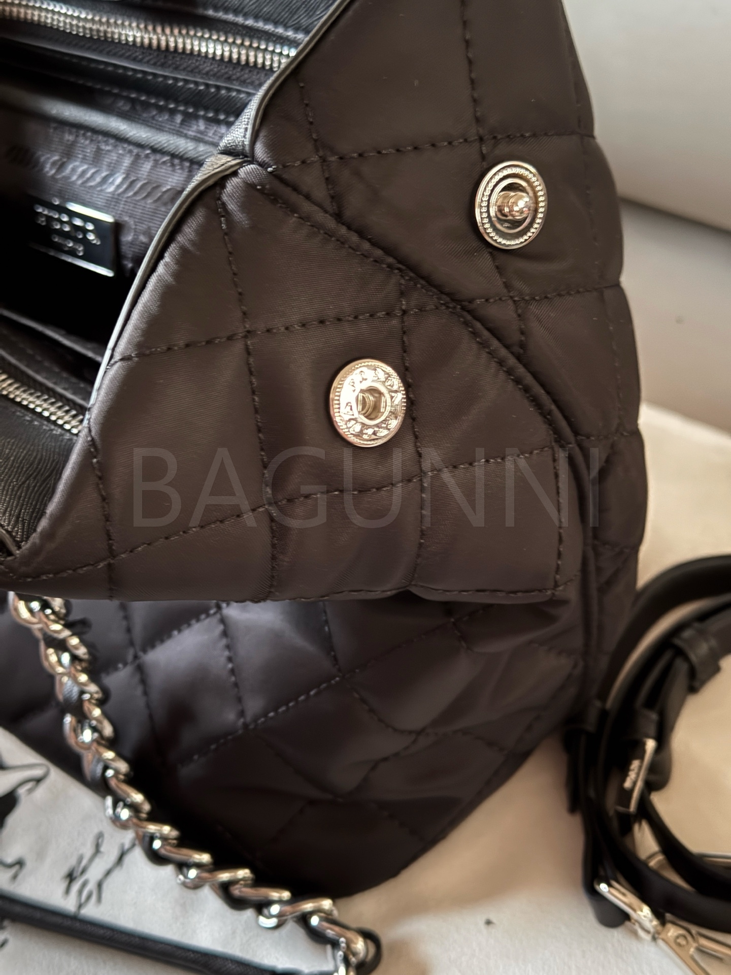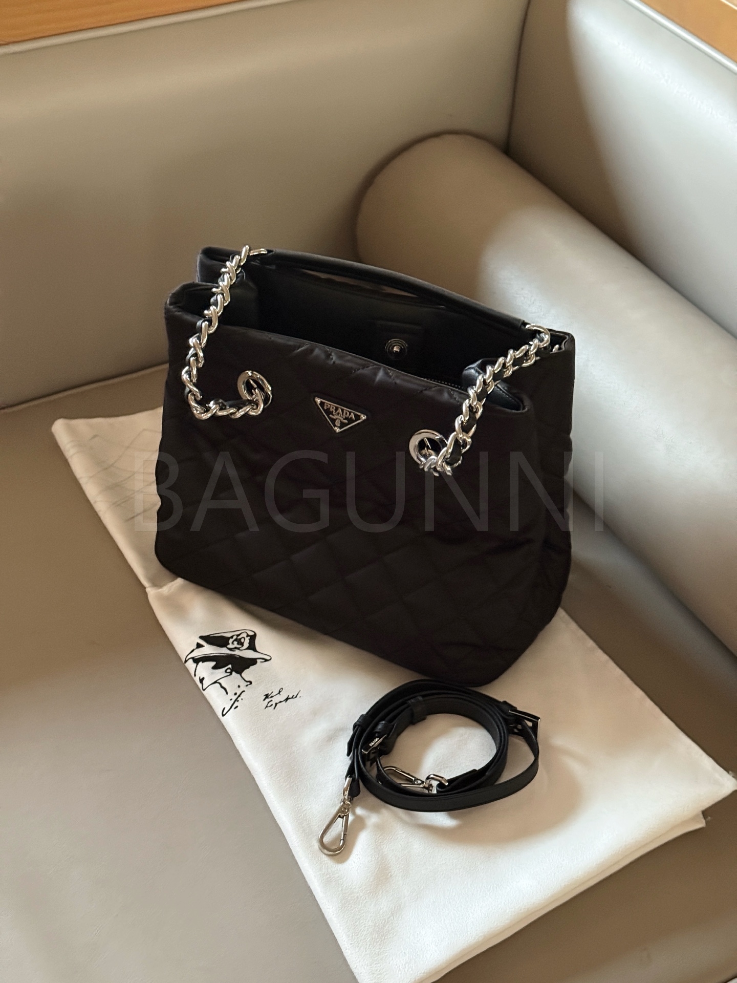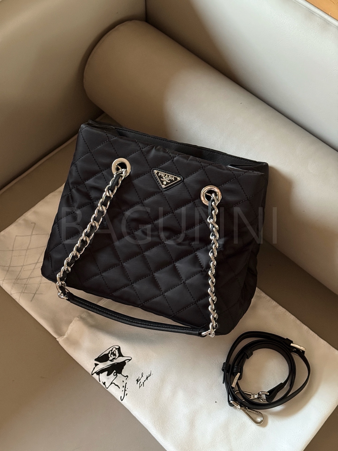 프라다 토트백은 세련된 실루엣을 담은 아이템입니다.