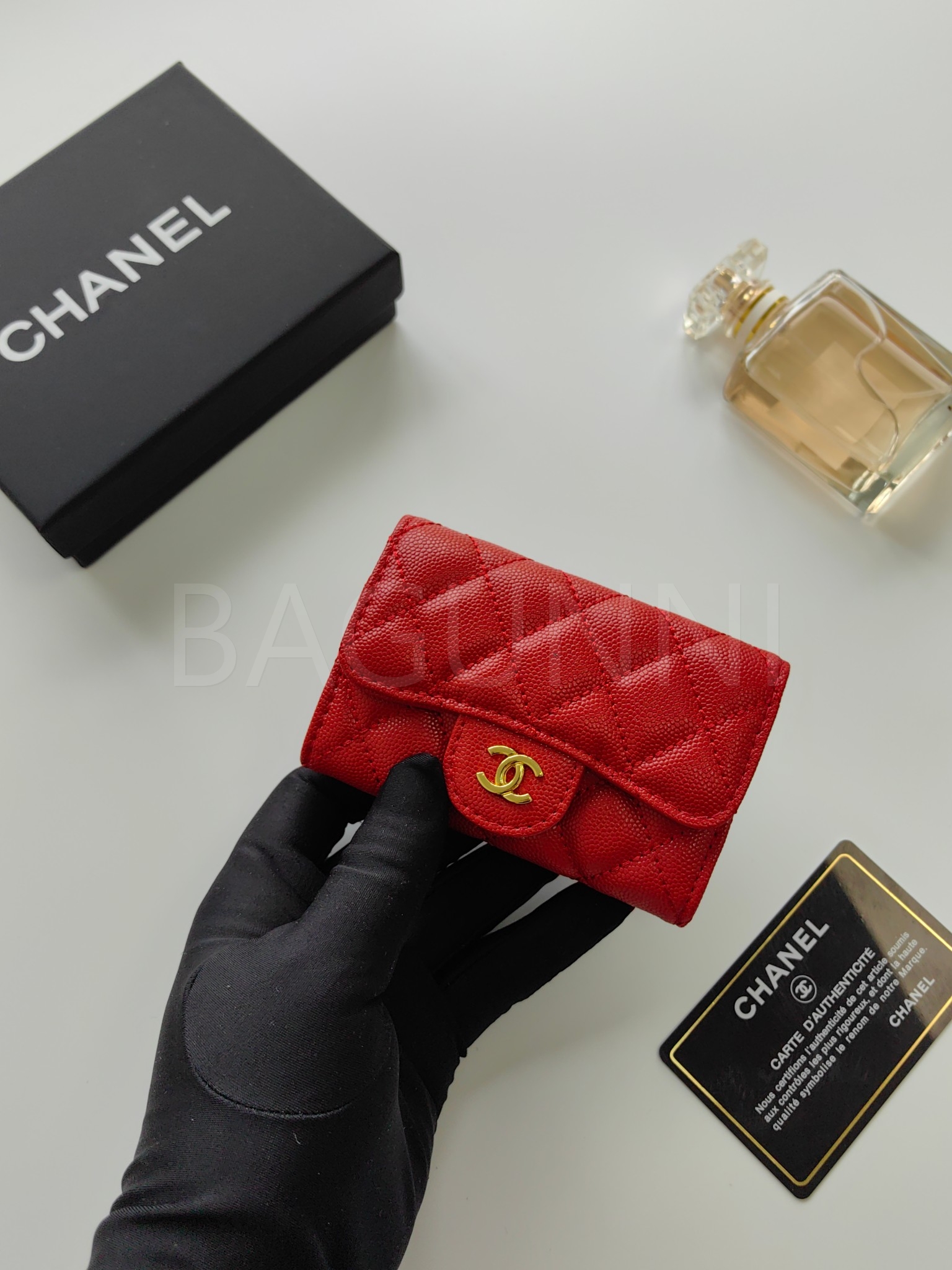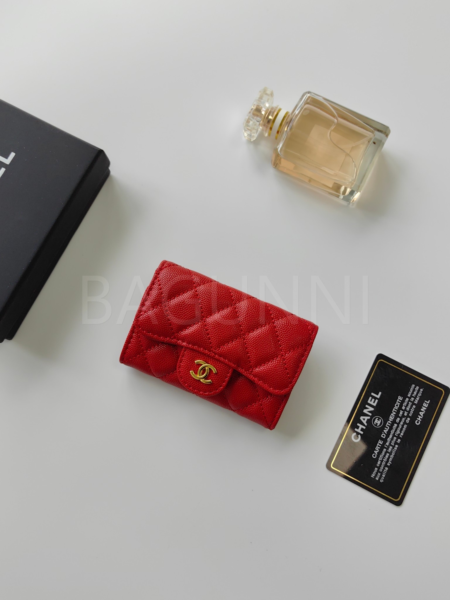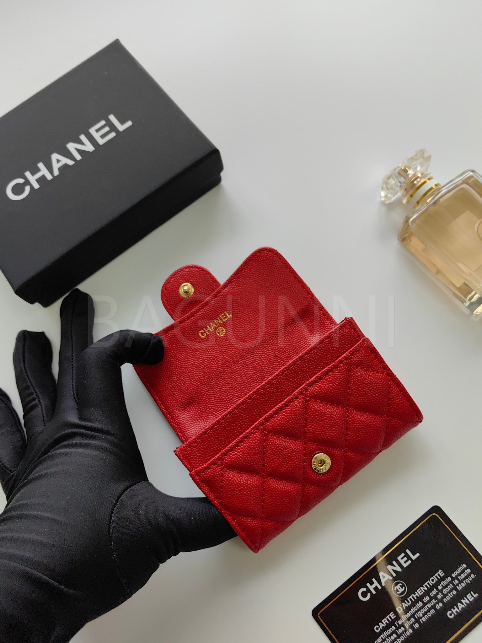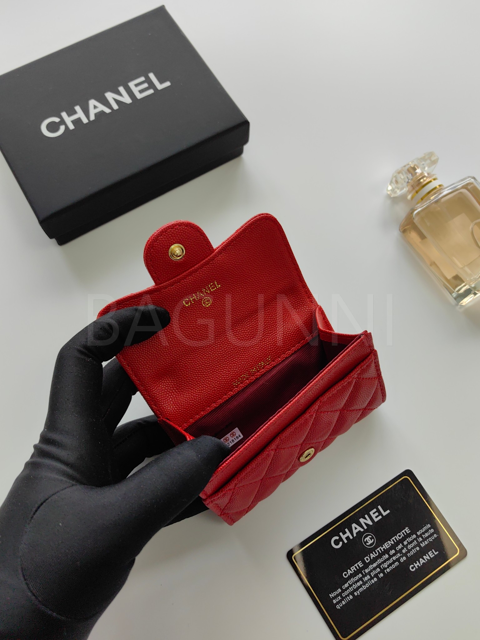 카프스킨의 질감이 돋보이는 샤넬 클래식 플랩 카드지갑입니다.