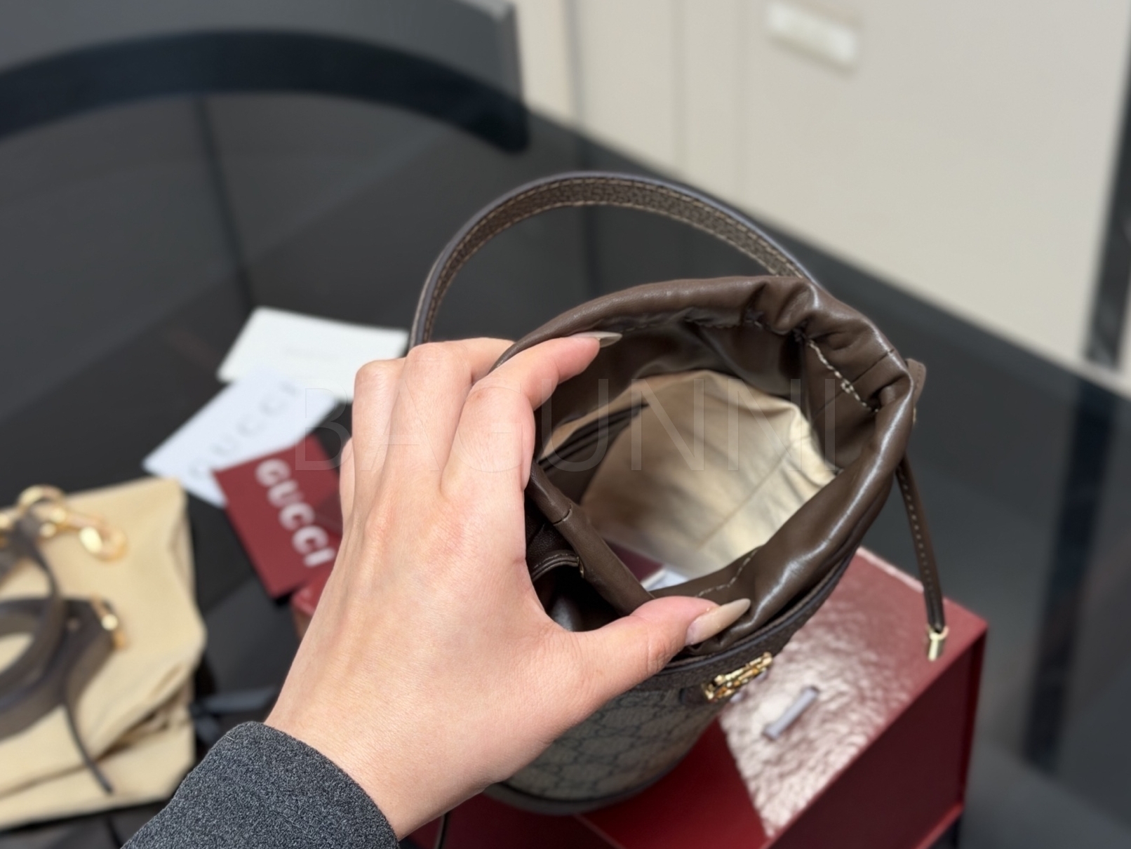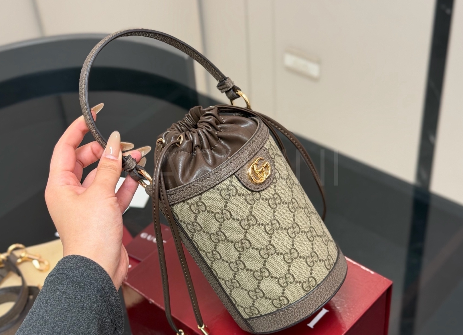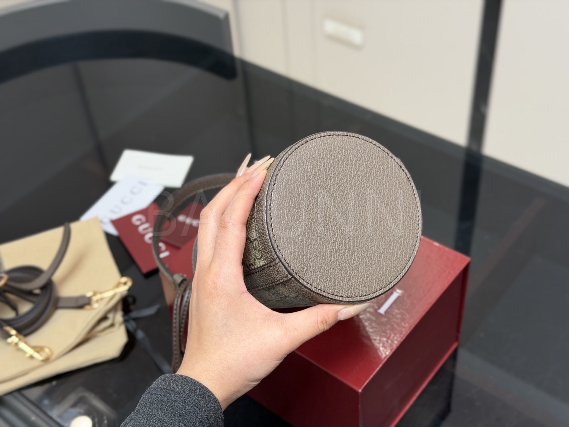 구찌 오피디아 버킷백입니다. 브랜드 특유의 분위기를 편하게 즐기기 좋습니다.