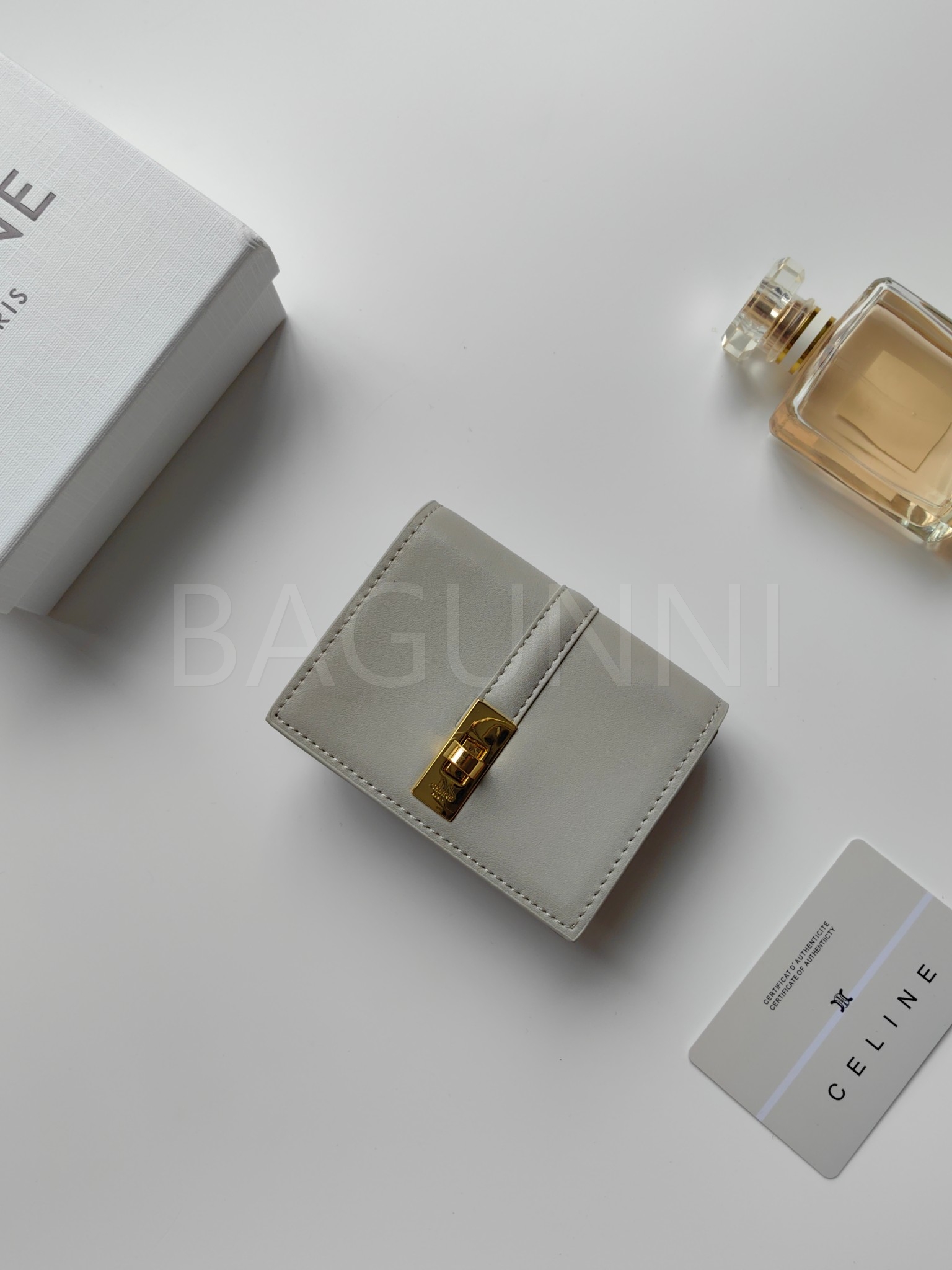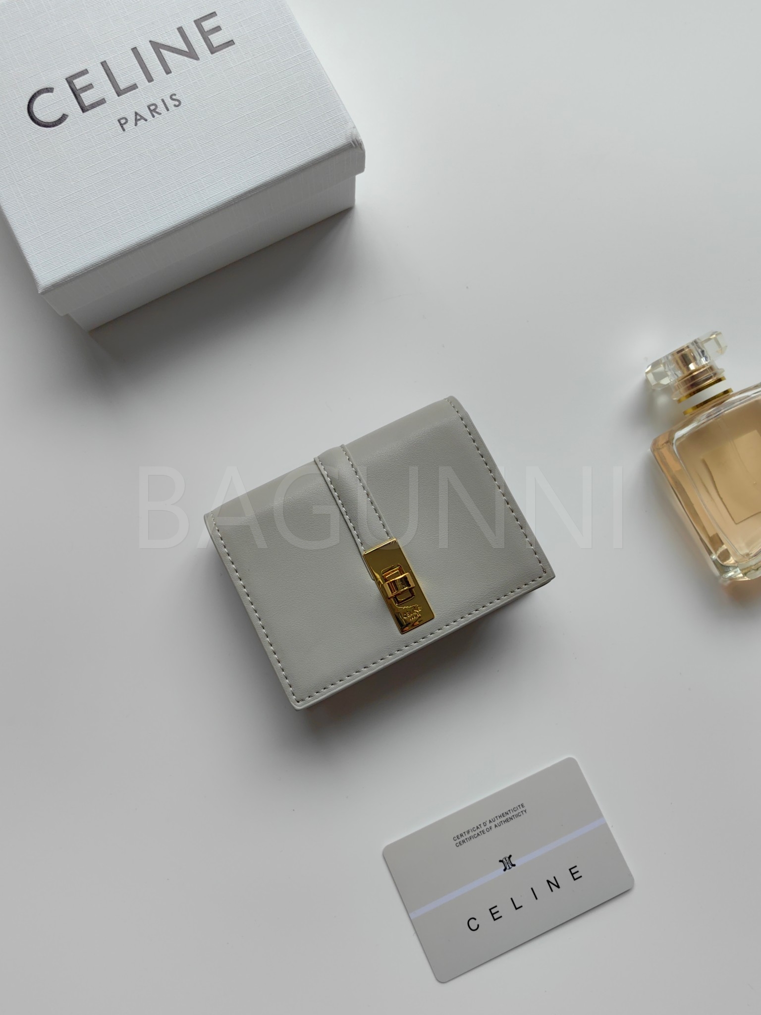 셀린느 특유의 무드가 자연스럽게 살아있는 트리옹프 플랩 카드지갑입니다.