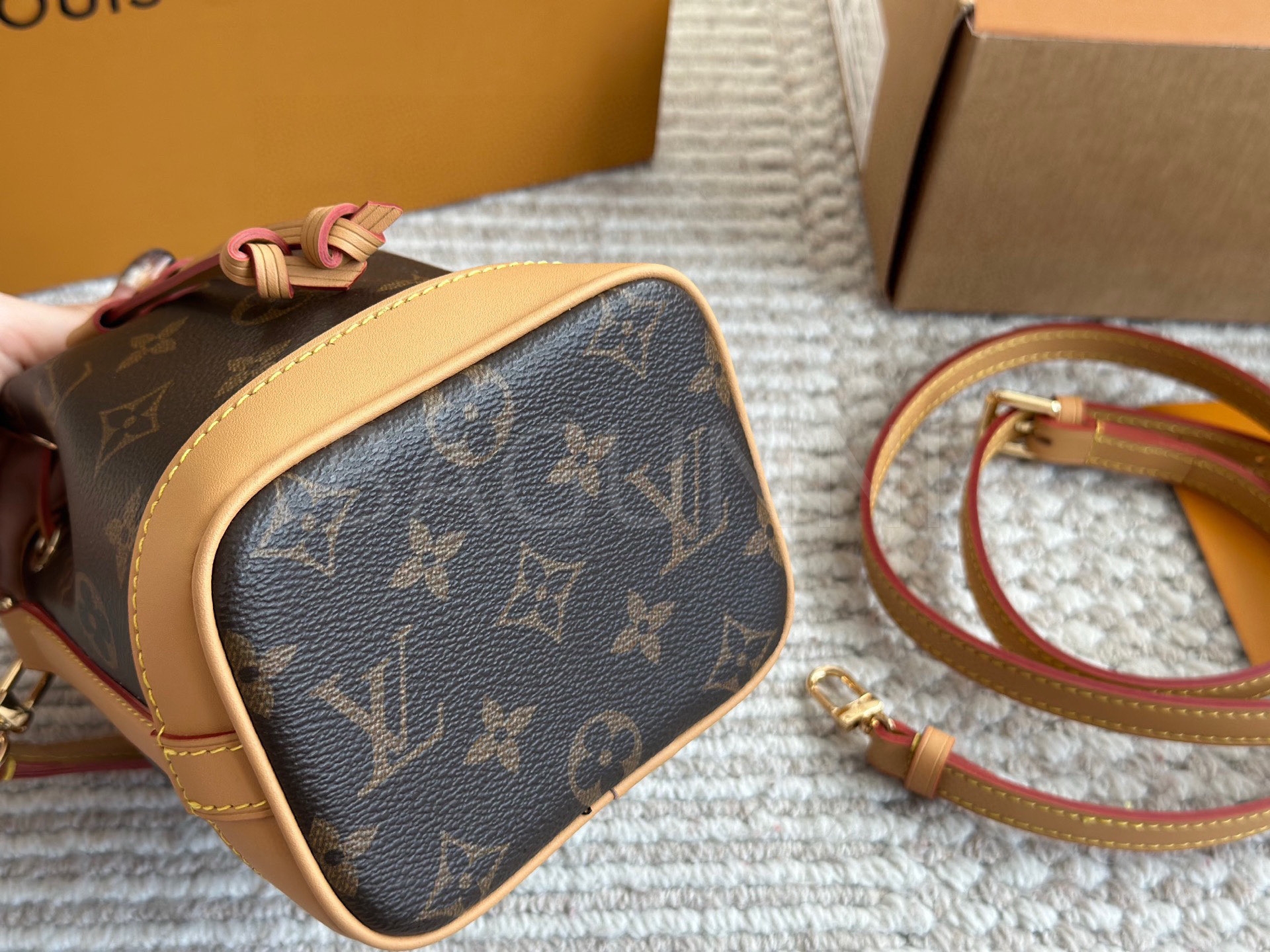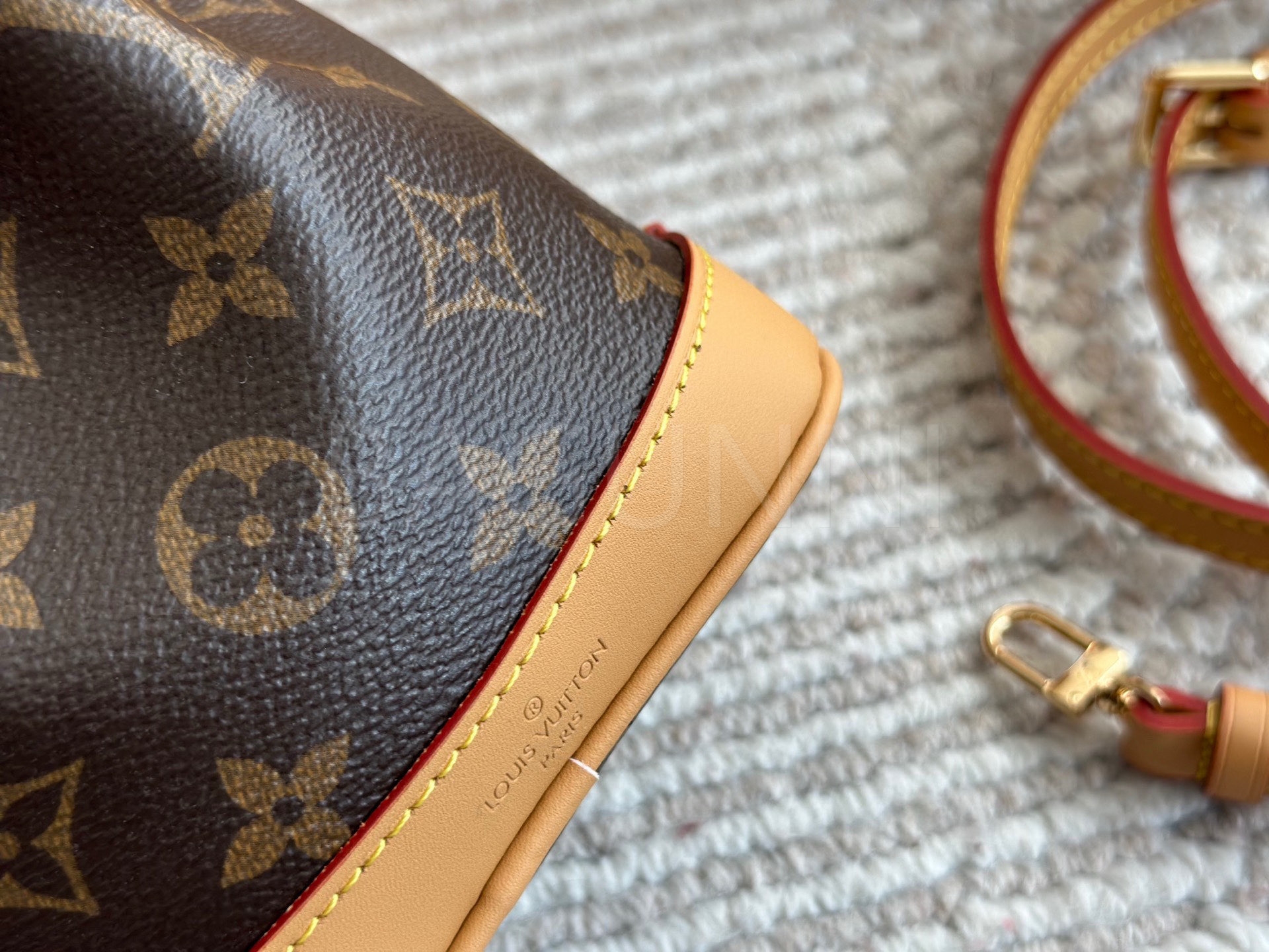 모노그램 패턴, 탑핸들, 버킷 실루엣 디테일이 조화롭게 어우러져 완성도를 높여줍니다