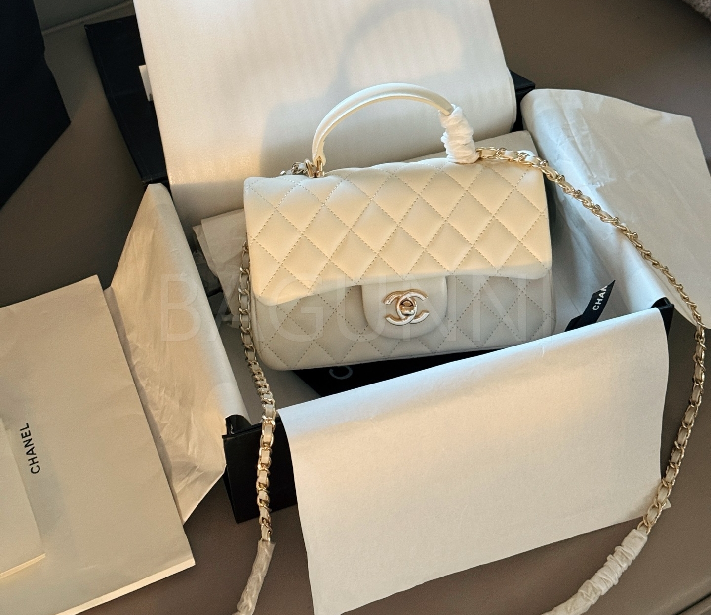 샤넬 클래식 플랩 탑핸들백은 빈티지한 무드를 담은 아이템입니다.