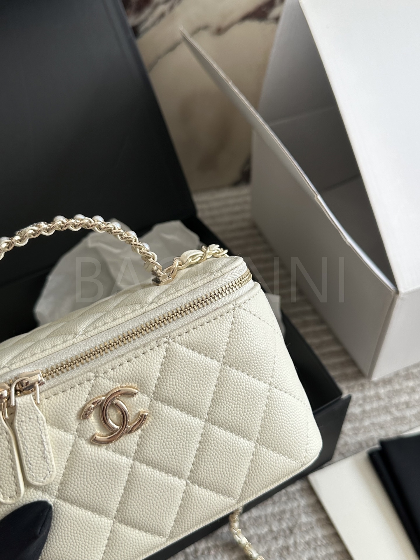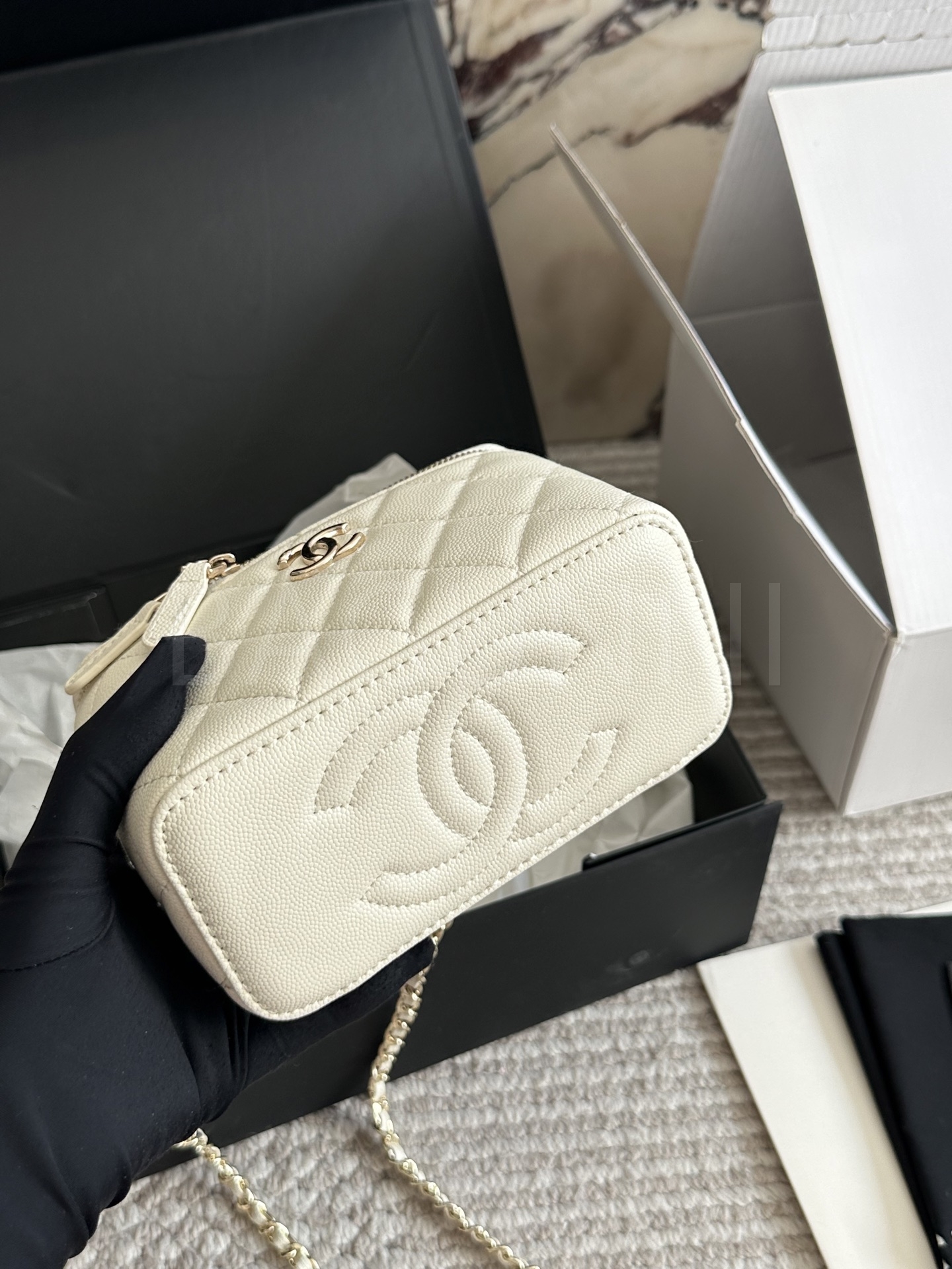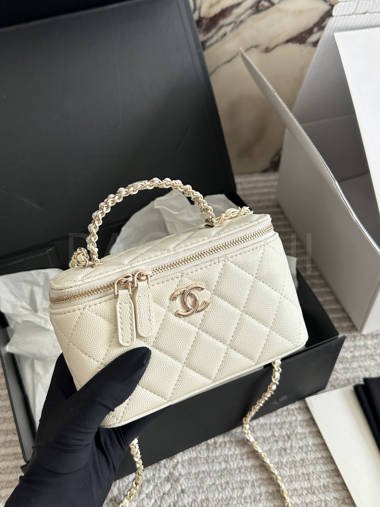 샤넬 금볼 탑핸들 박스 백
