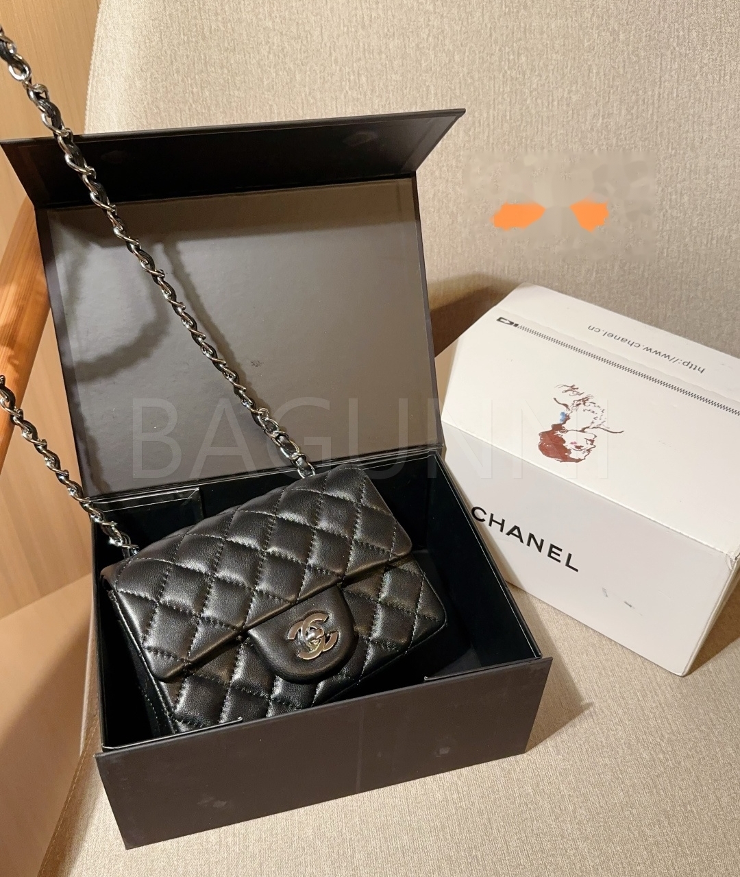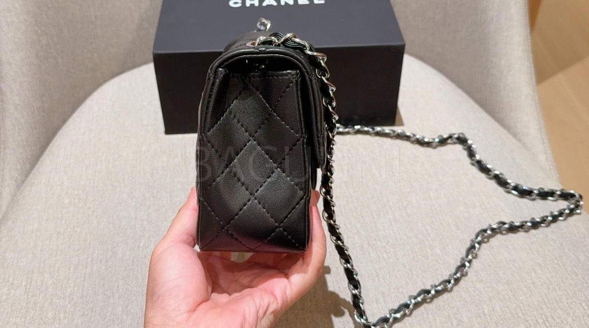 램스킨 특유의 매력이 돋보이는 샤넬 스퀘어 플랩 백입니다.