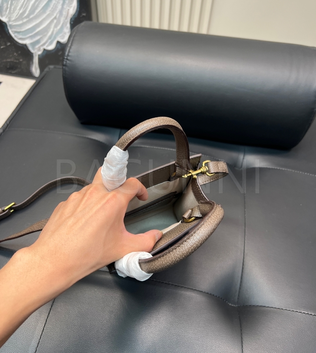 구찌 오피디아 토트백입니다. 가죽 특유의 질감이 자연스럽게 살아 있으며 베이지, 브라운, 골드 톤이 어우러져 브랜드 특유의 분위기를 편하게 즐기기 좋습니다.