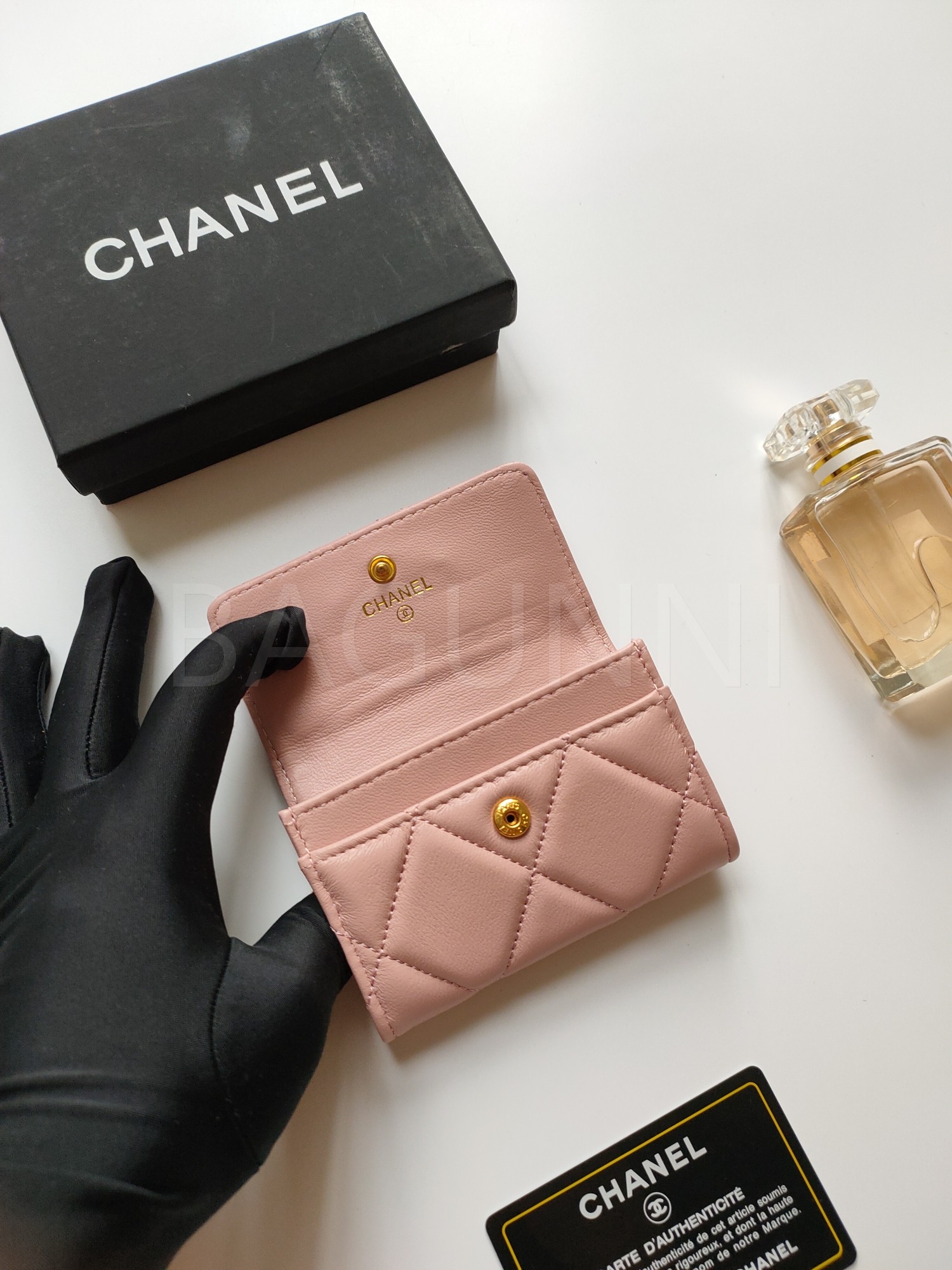 램스킨의 질감이 돋보이는 샤넬 클래식 플랩 카드지갑입니다.