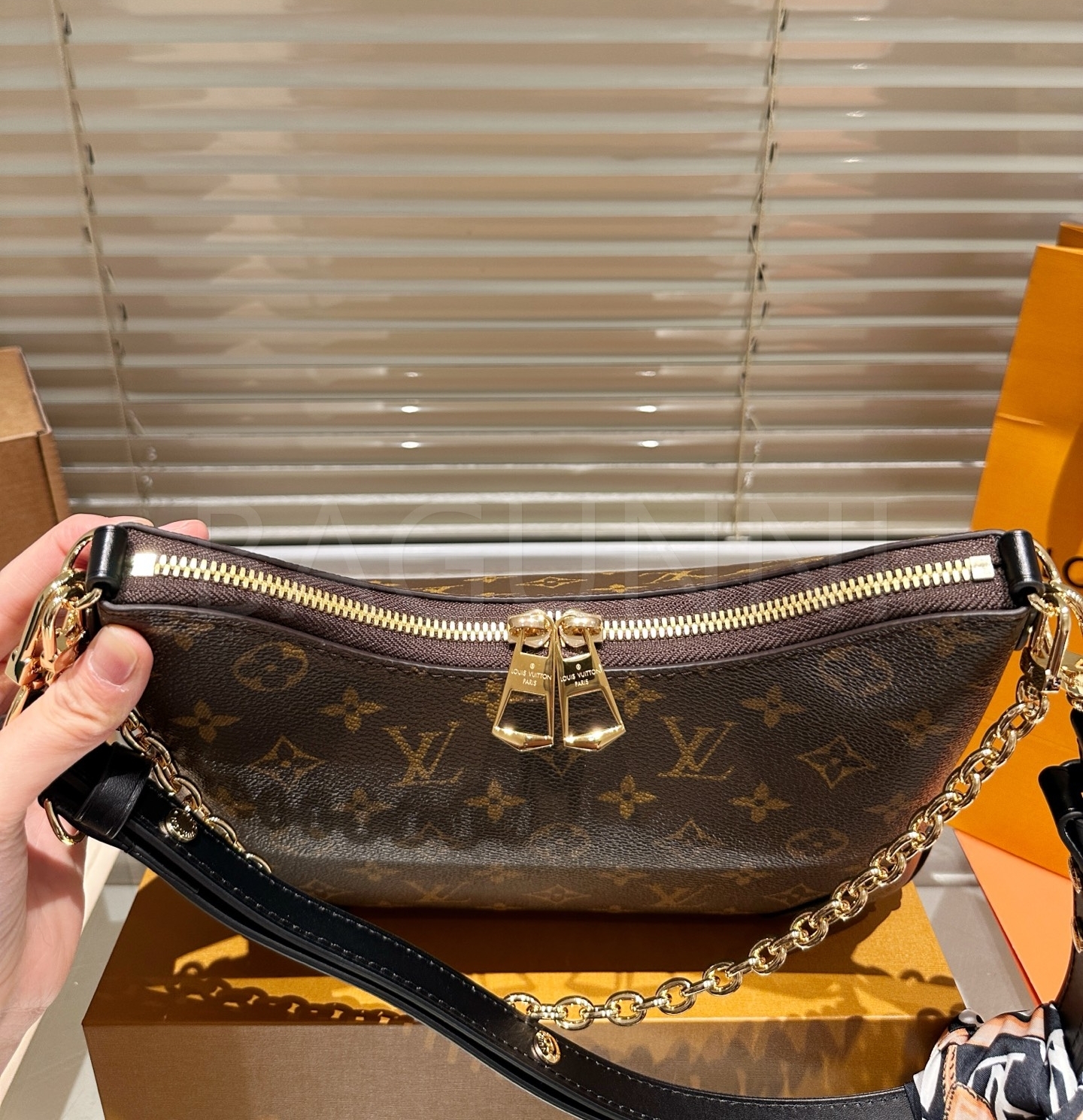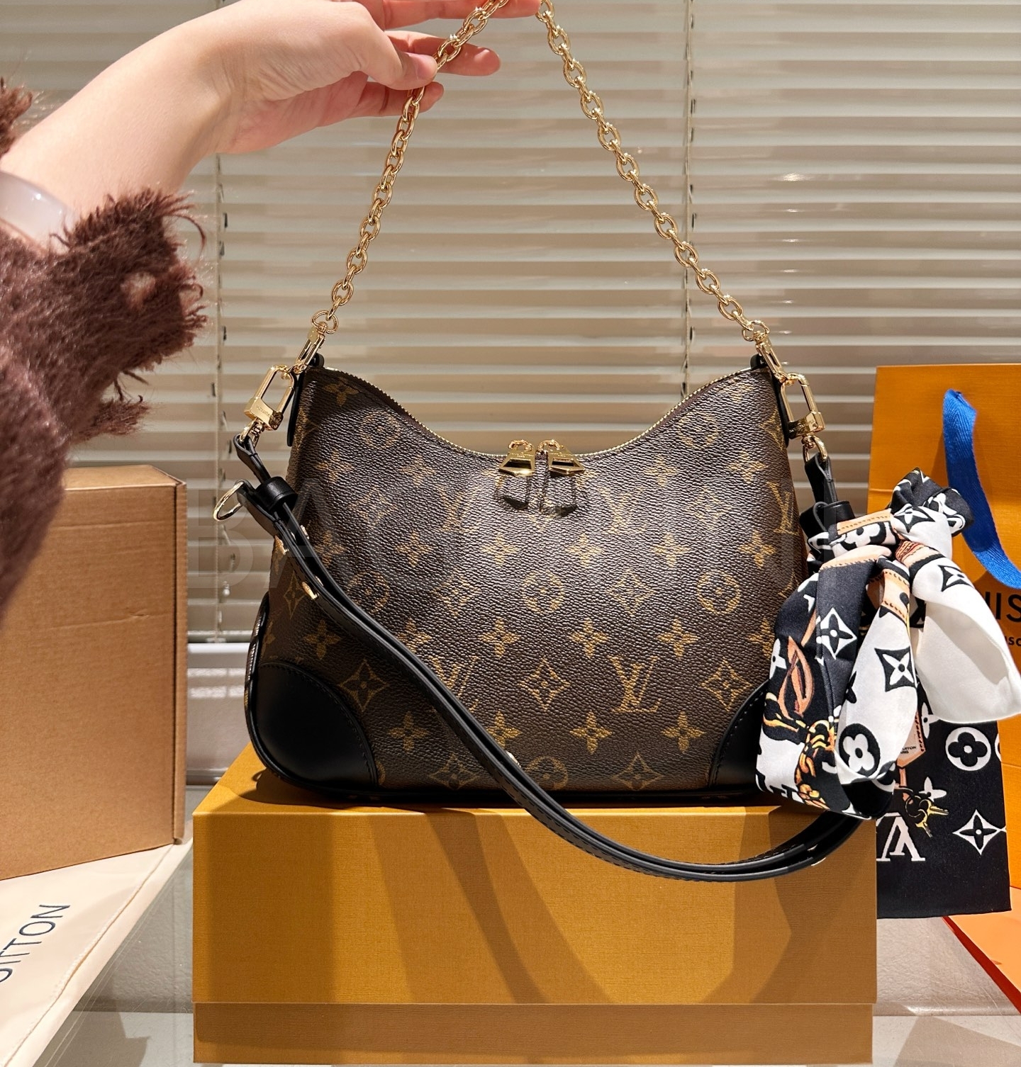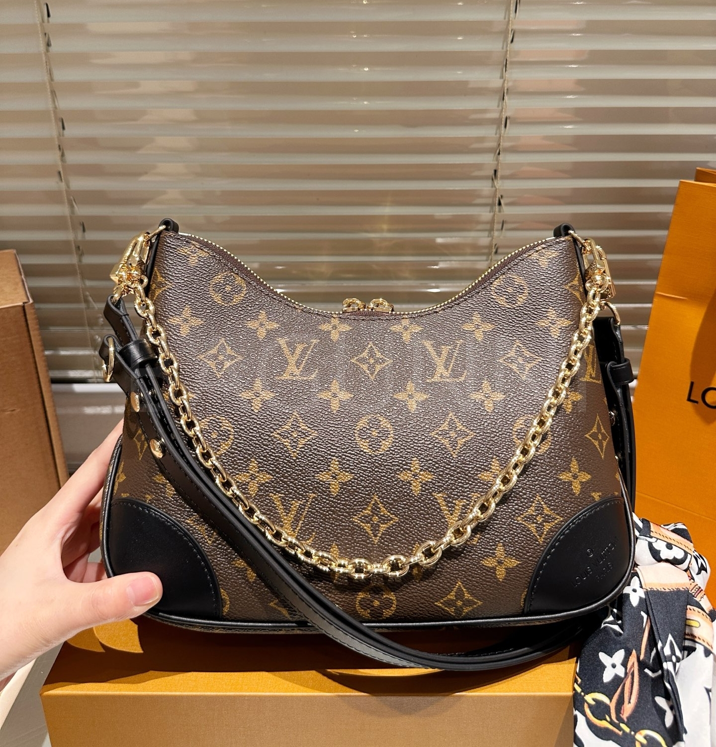 루이비통 체인 호보 백은 세련된 실루엣을 담은 아이템입니다.