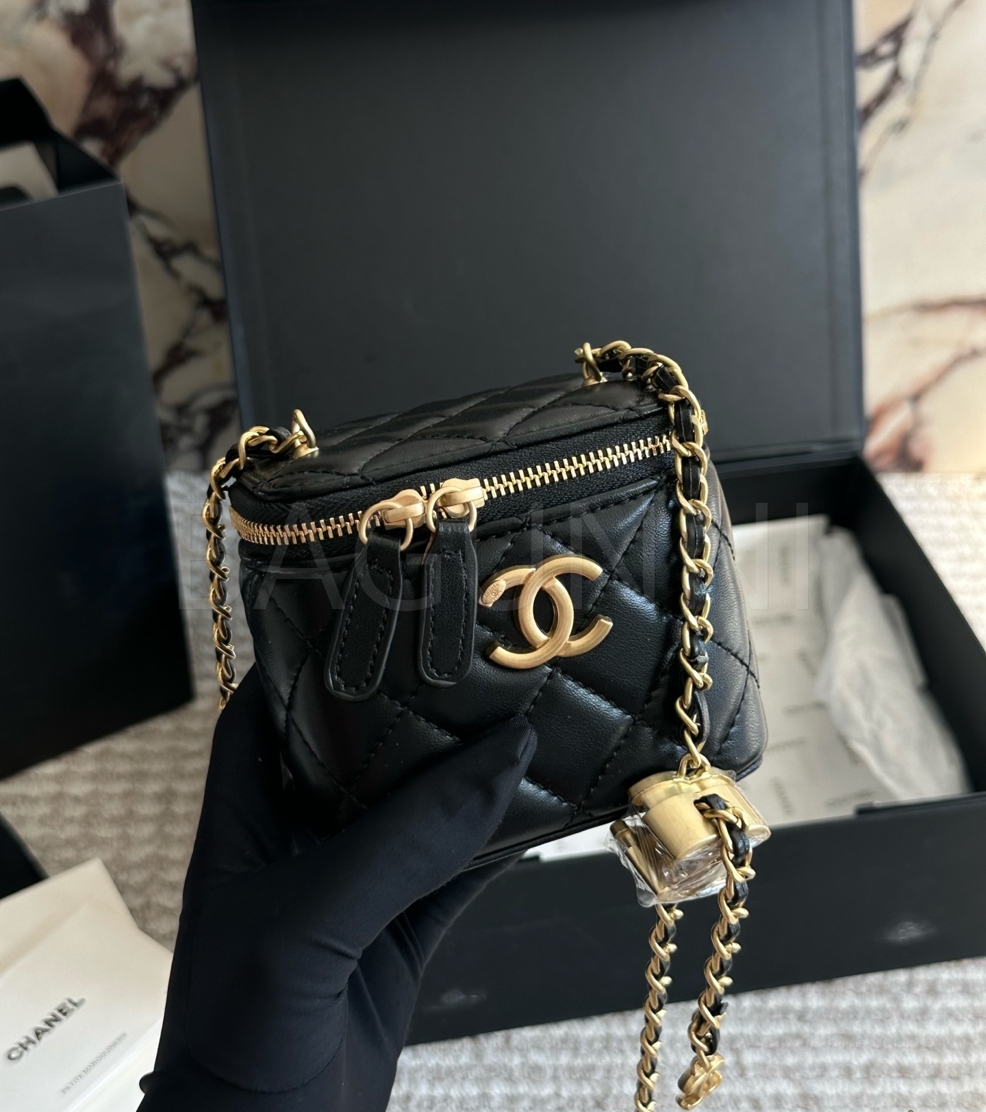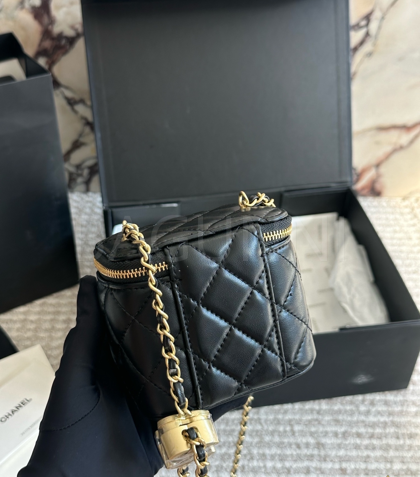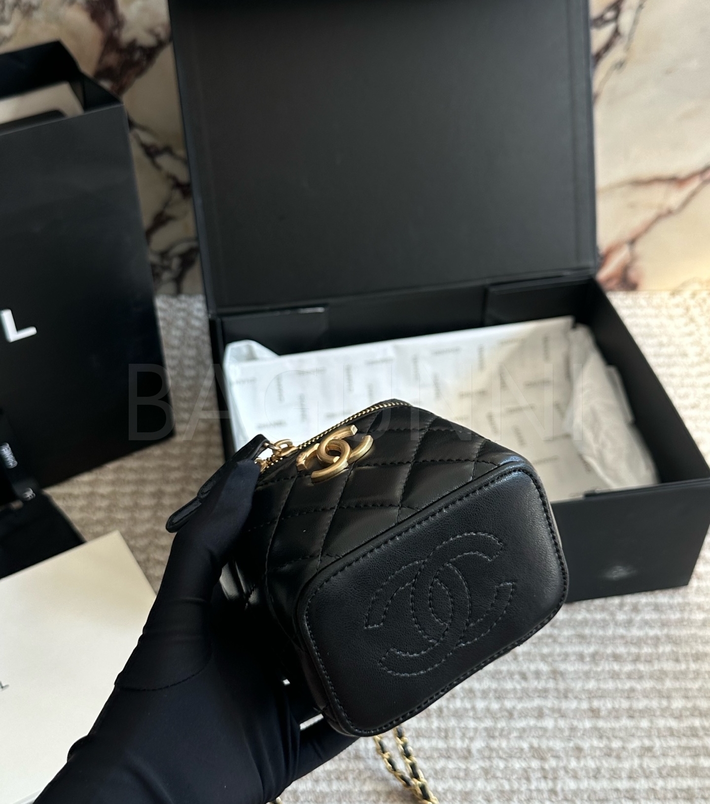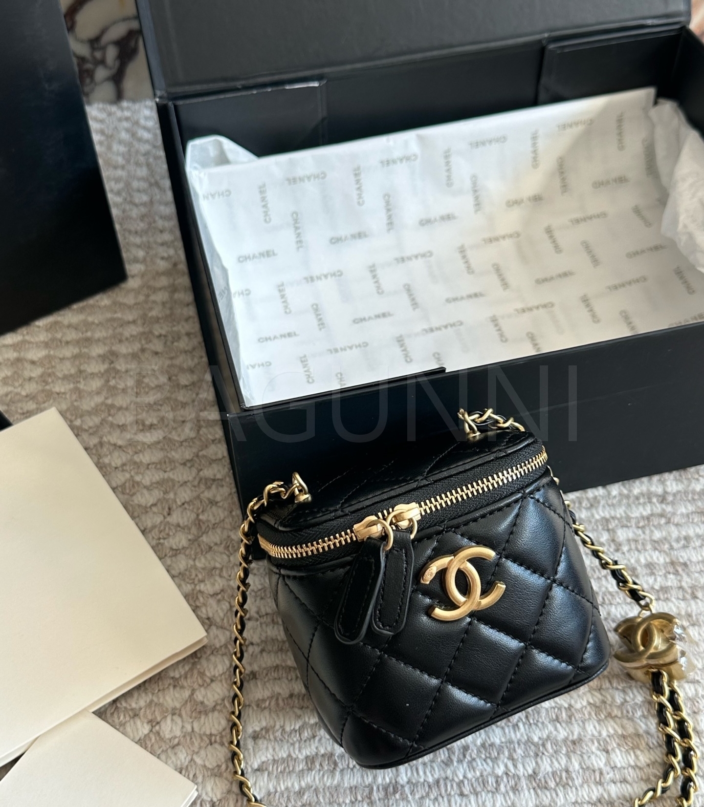 퀼팅 디테일, 더블 C 로고, 체인 스트랩, 금볼 디테일, 박스 실루엣, 넉넉한 수납력 디테일이 조화롭게 어우러져 완성도를 높여줍니다 데일리룩부터 가벼운 외출까지 부담 없이 활용하기 좋습니다