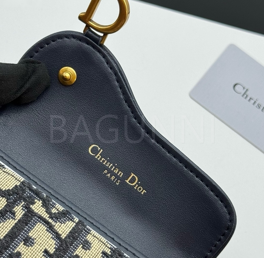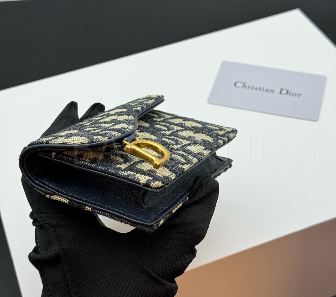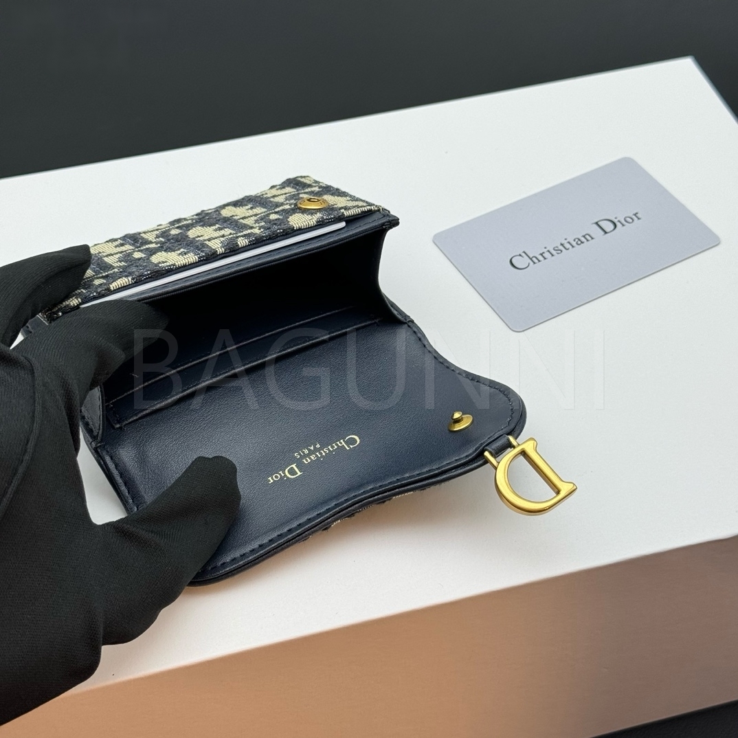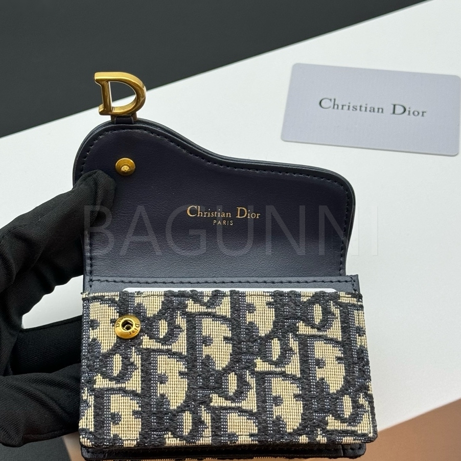카프스킨의 질감이 돋보이는 디올 새들 카드지갑입니다.
