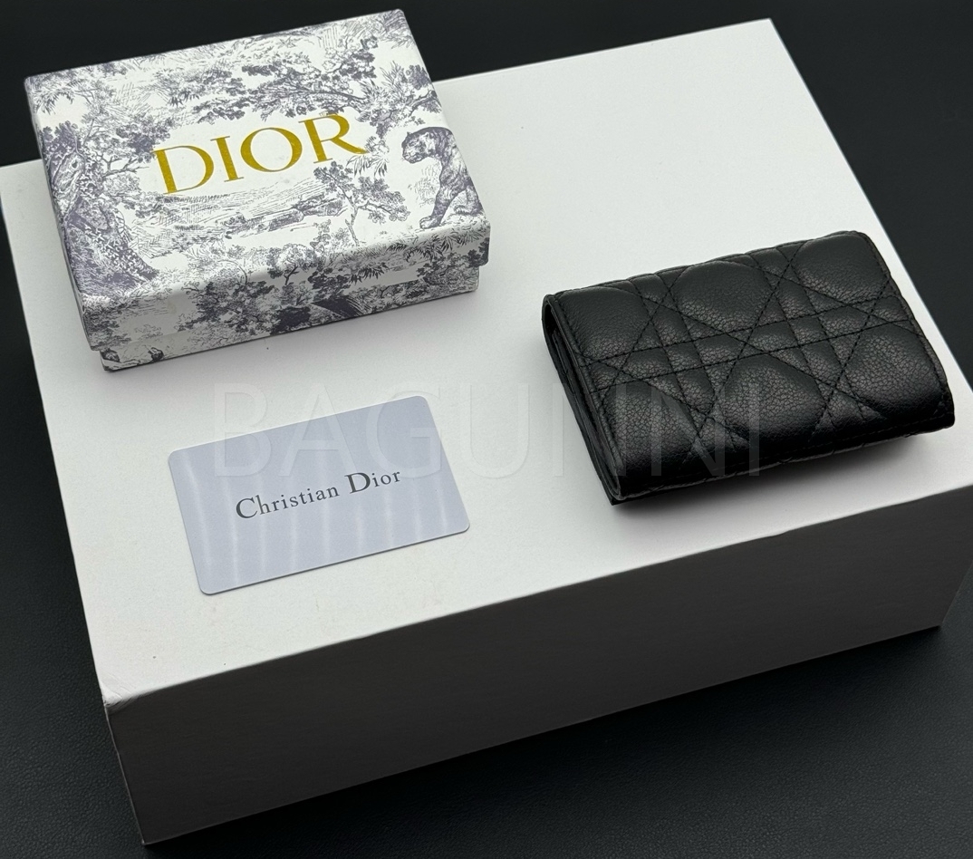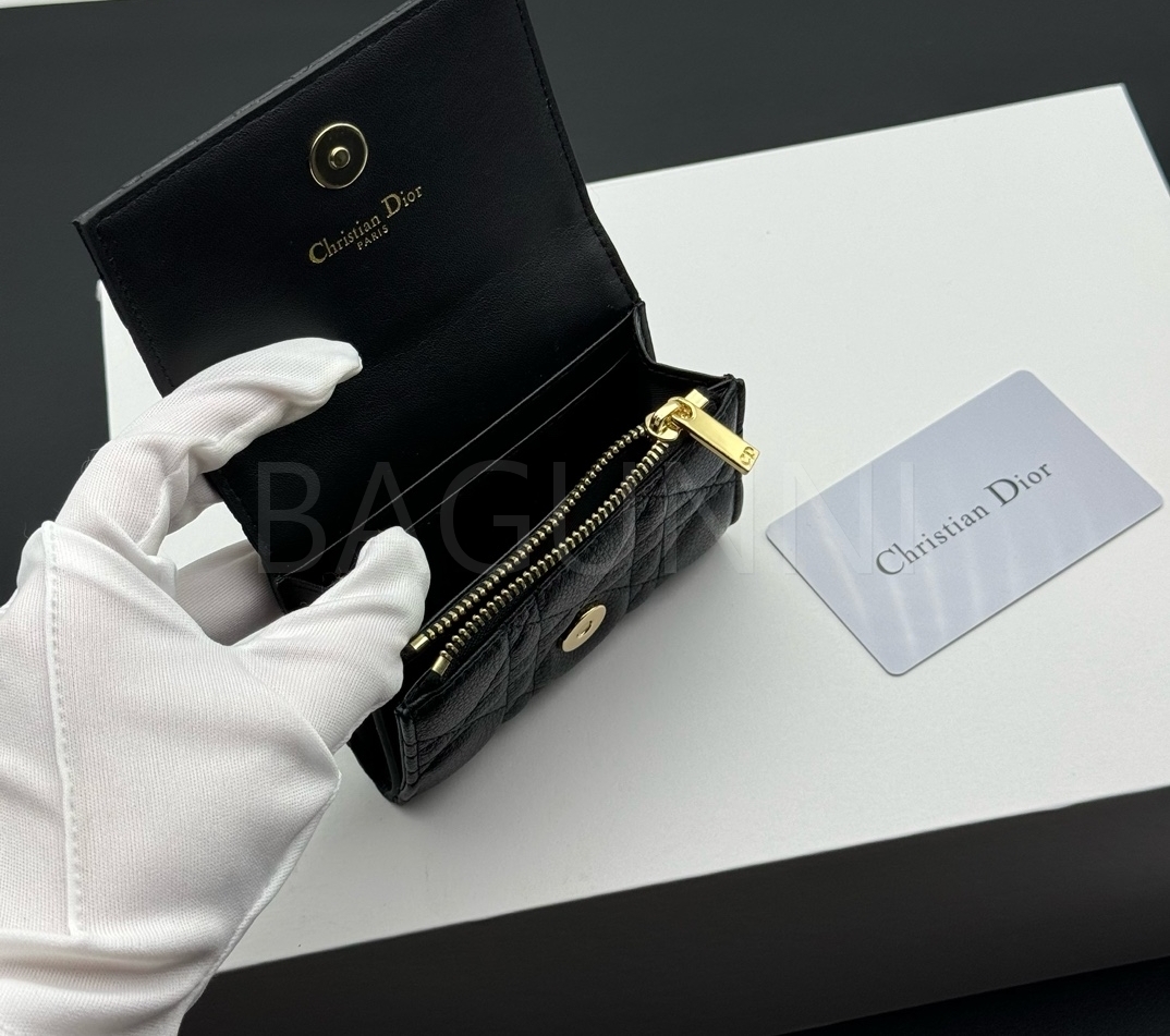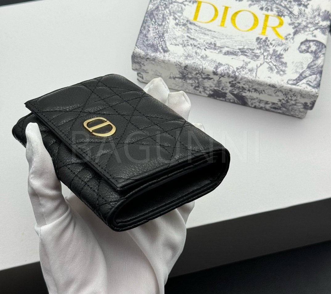 카프스킨의 질감이 돋보이는 디올 카로 카드지갑입니다.