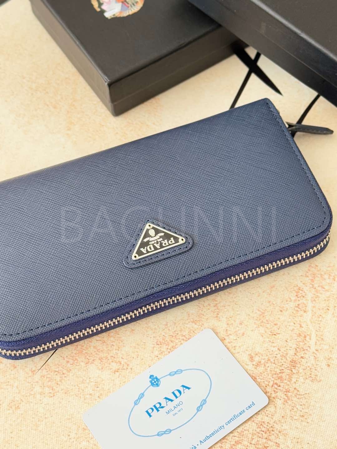 사피아노 질감이 깔끔하게 살아있는 프라다 사피아노 지퍼 장지갑입니다.