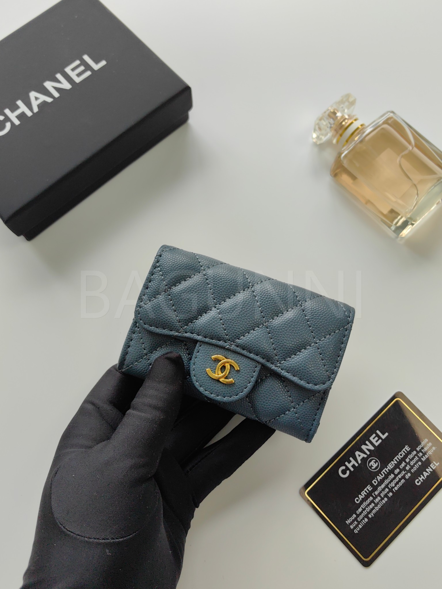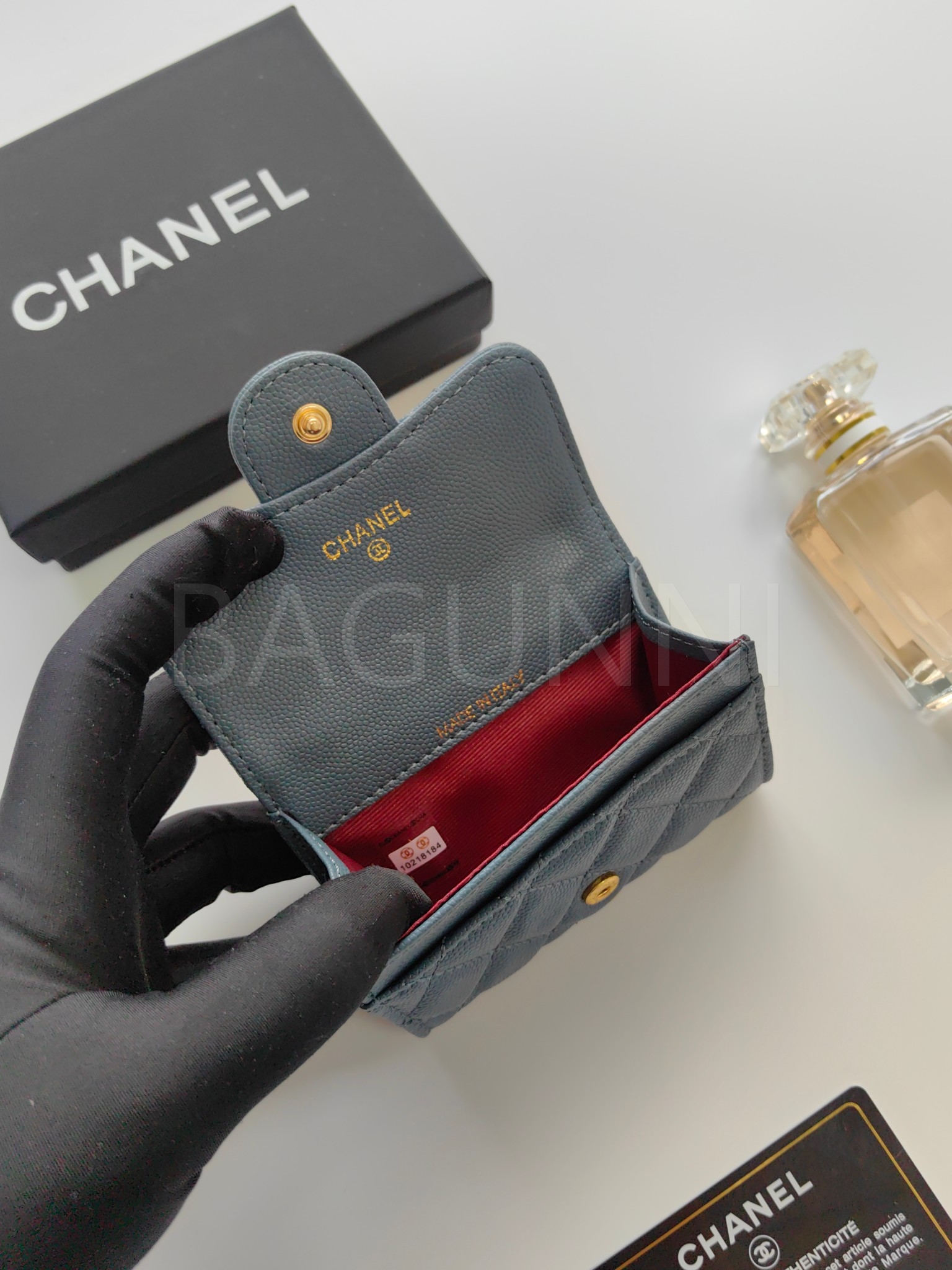 카프스킨의 질감이 돋보이는 샤넬 클래식 플랩 카드지갑입니다.