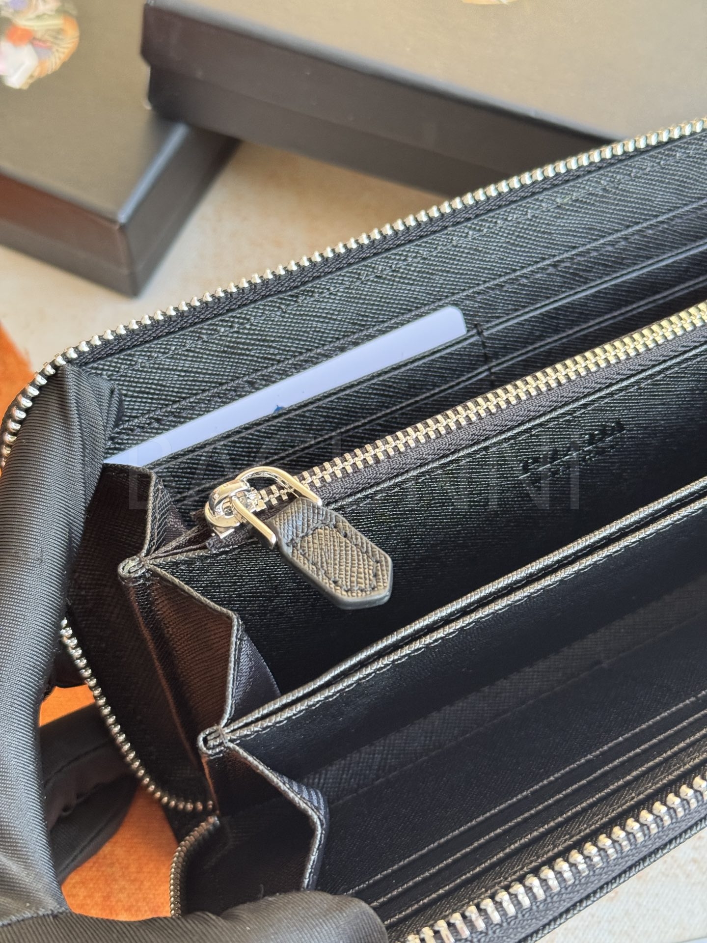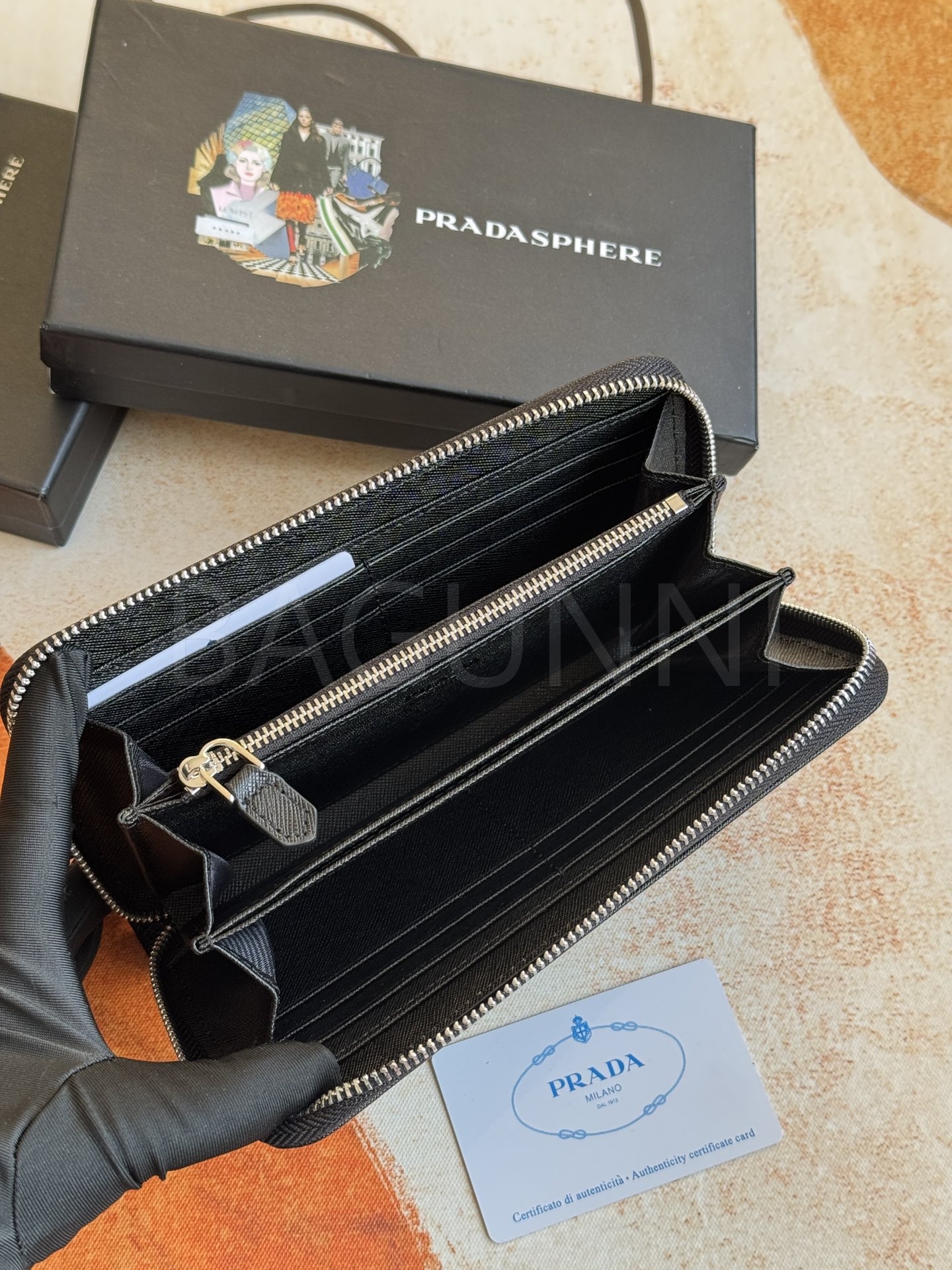 사피아노 질감이 깔끔하게 살아있는 프라다 사피아노 지퍼 장지갑입니다.