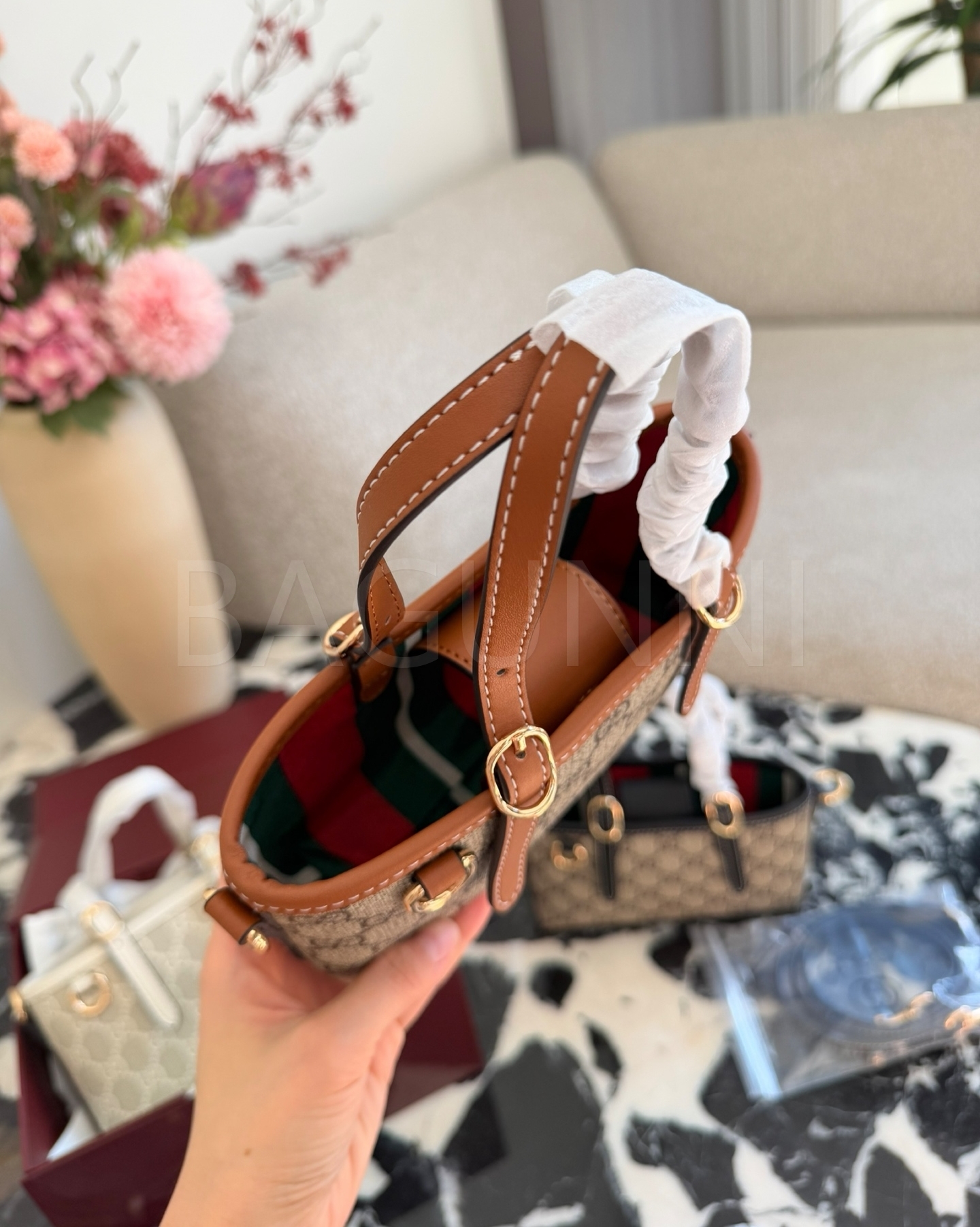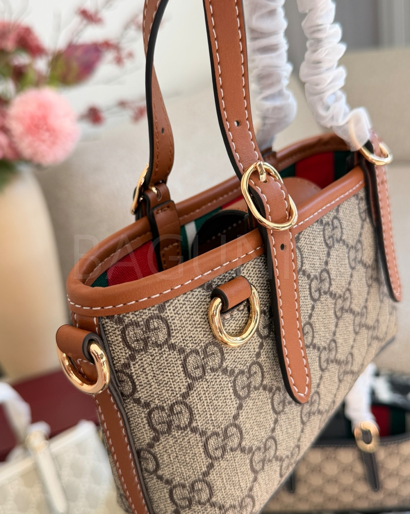 구찌 미니 토트백입니다. 브랜드 특유의 분위기를 편하게 즐기기 좋습니다.