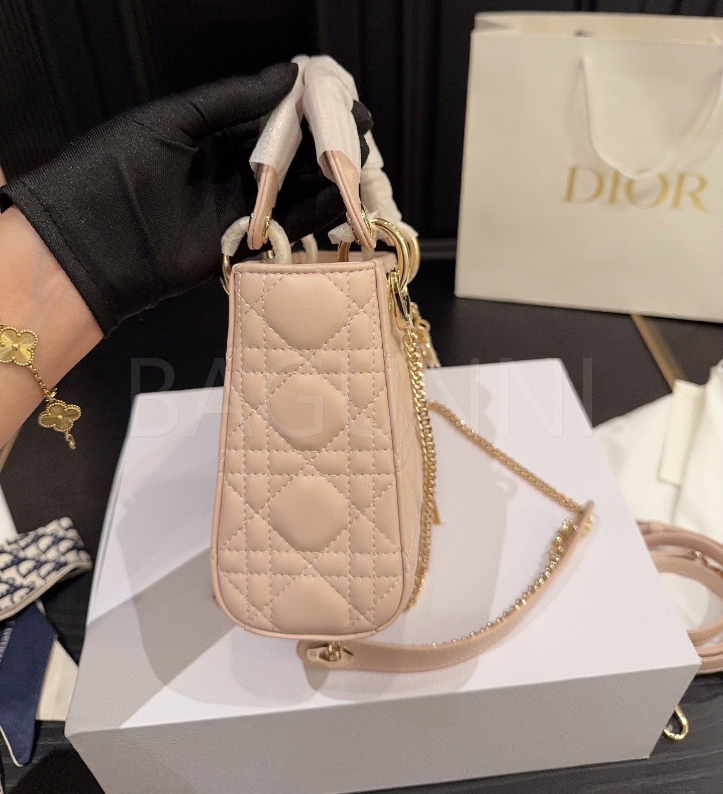 디올 레이디 디올 탑핸들백입니다. 램스킨 특유의 질감이 자연스럽게 살아 있으며 브랜드 특유의 분위기를 편하게 즐기기 좋습니다.