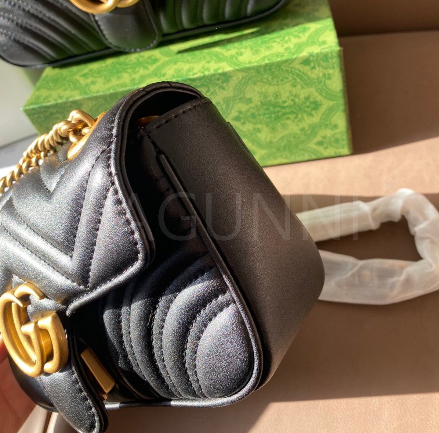 구찌 레더 백입니다. 가죽 특유의 질감이 자연스럽게 살아 있으며 브랜드 특유의 분위기를 편하게 즐기기 좋습니다.