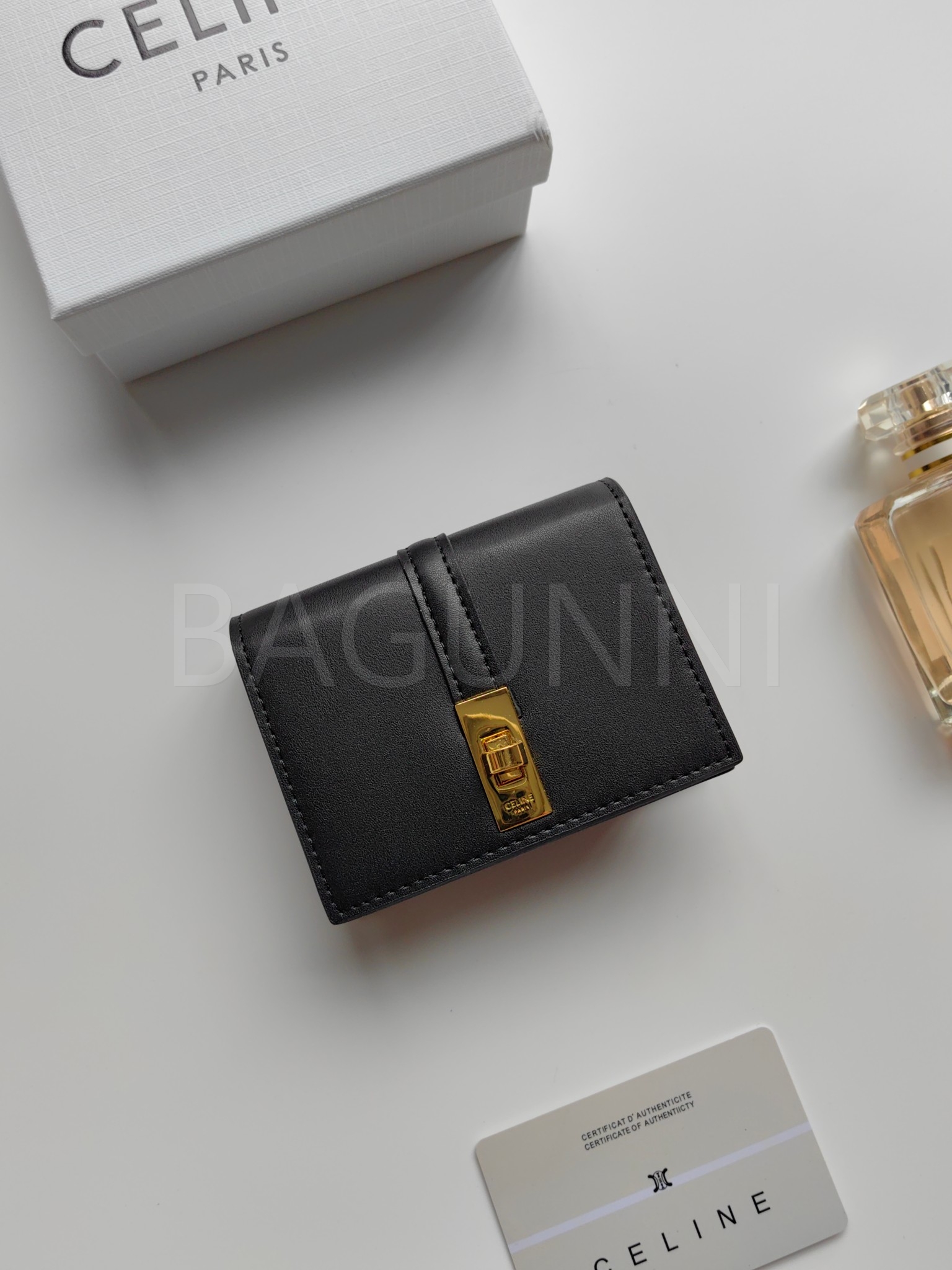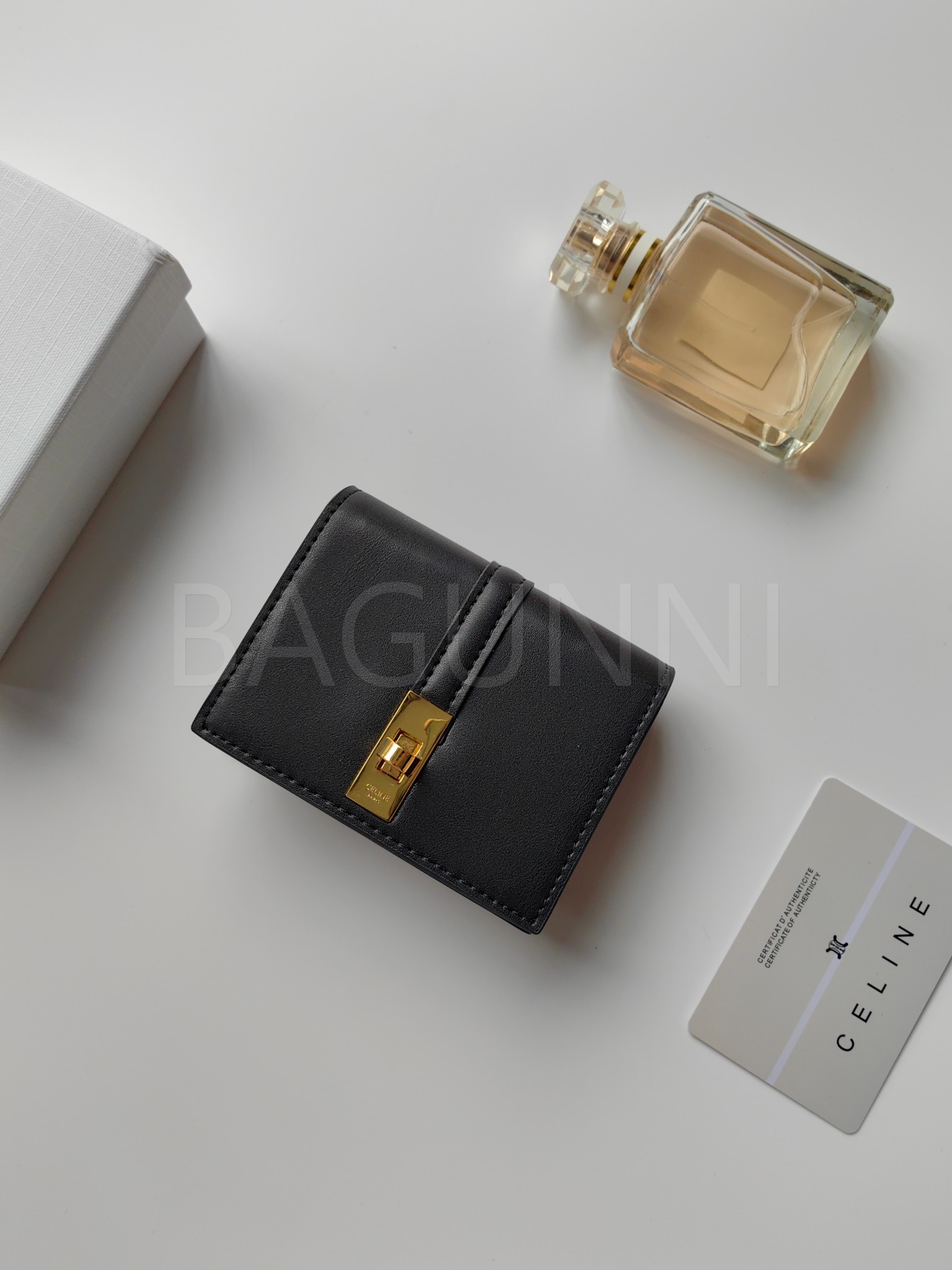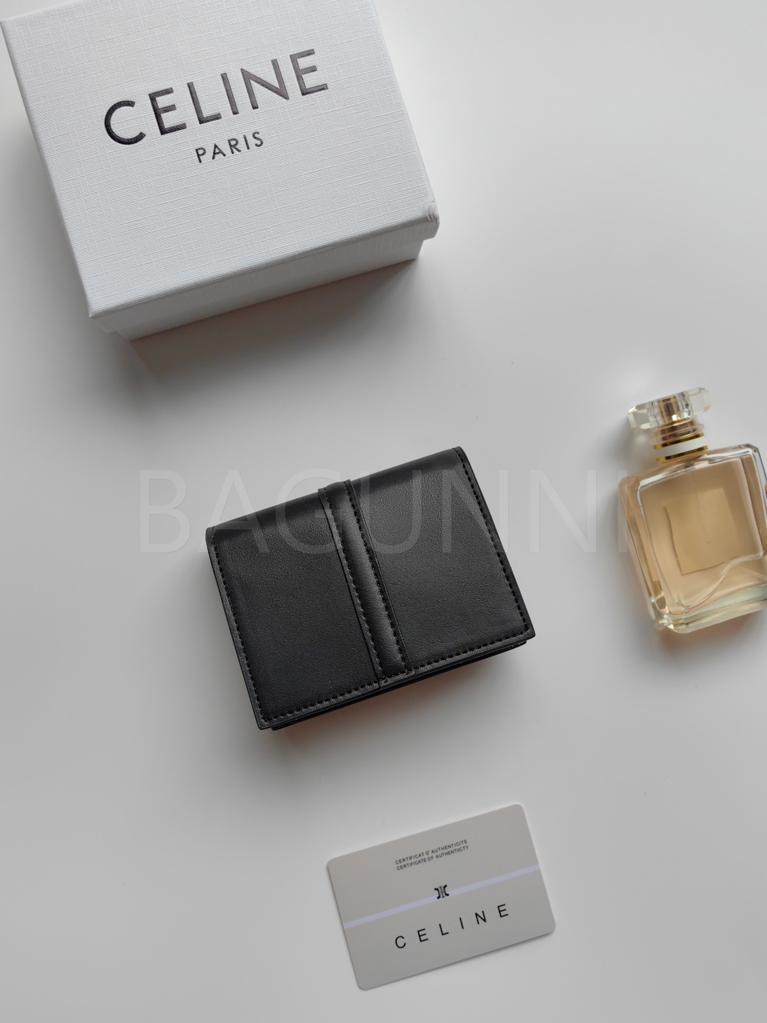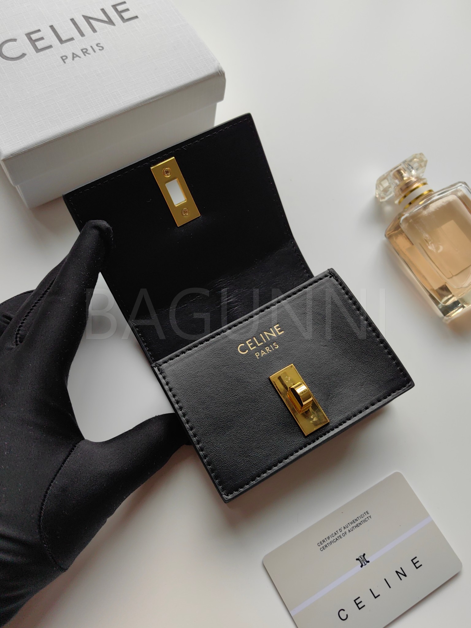 셀린느 특유의 무드가 자연스럽게 살아있는 트리옹프 플랩 카드지갑입니다.