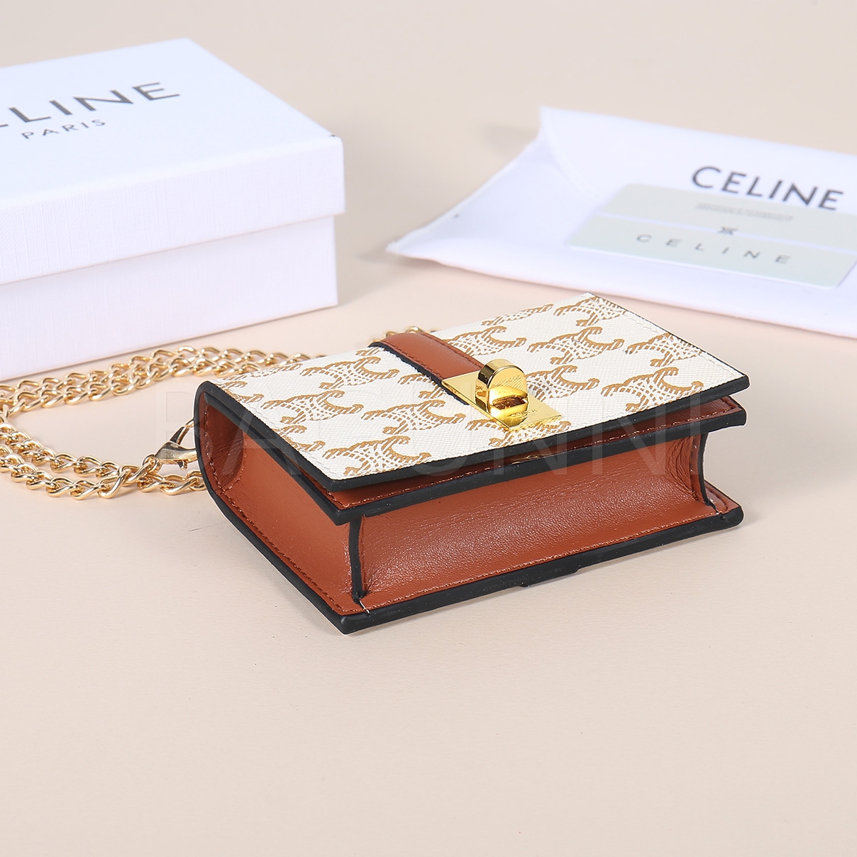 셀린느 특유의 무드가 자연스럽게 살아있는 트리옹프 플랩 카드지갑입니다.