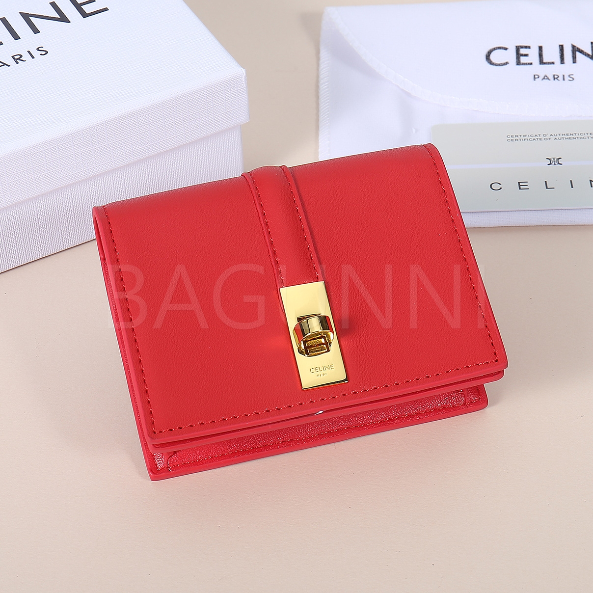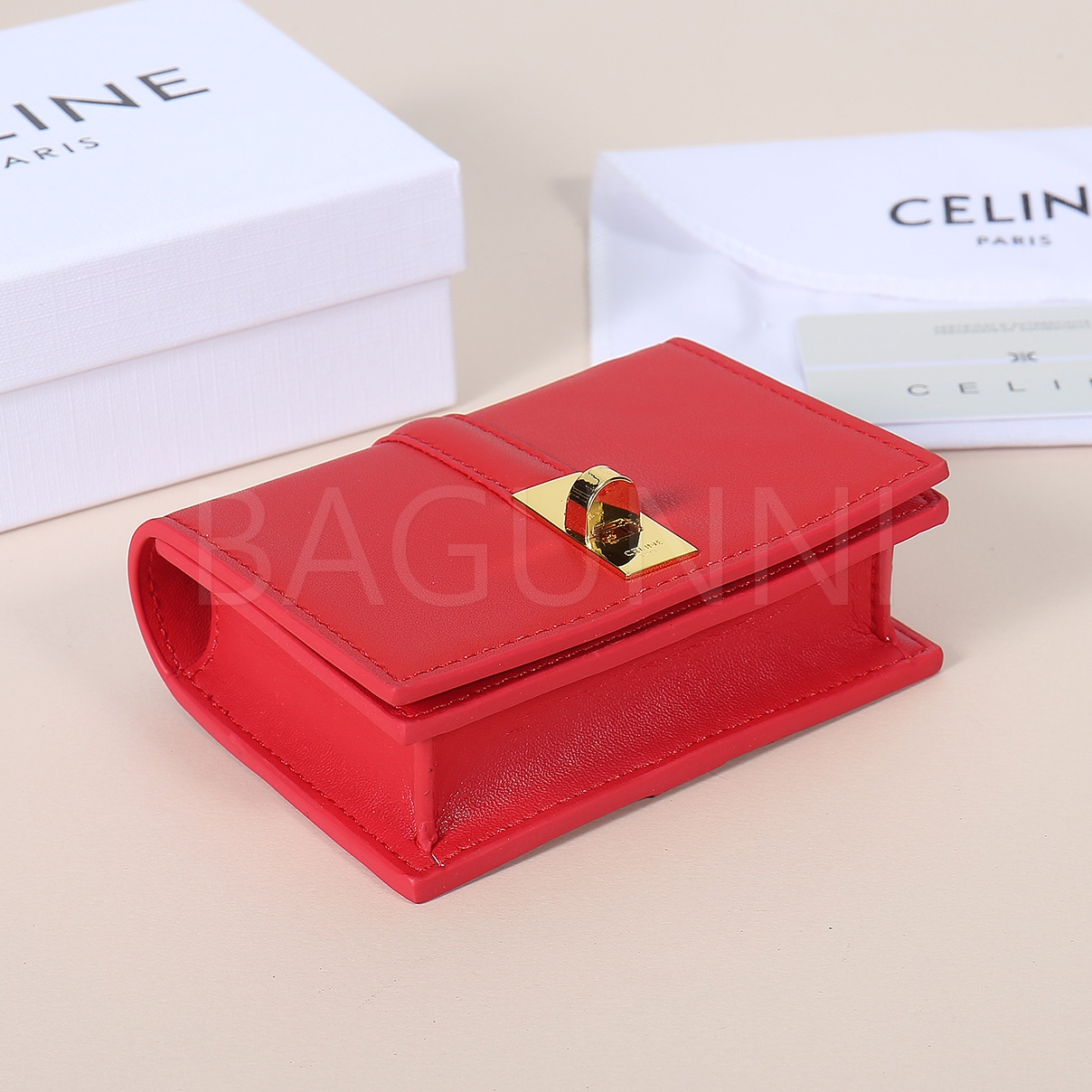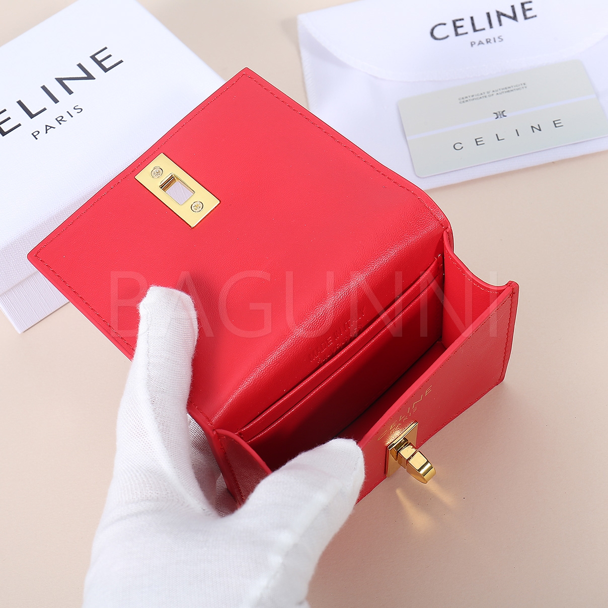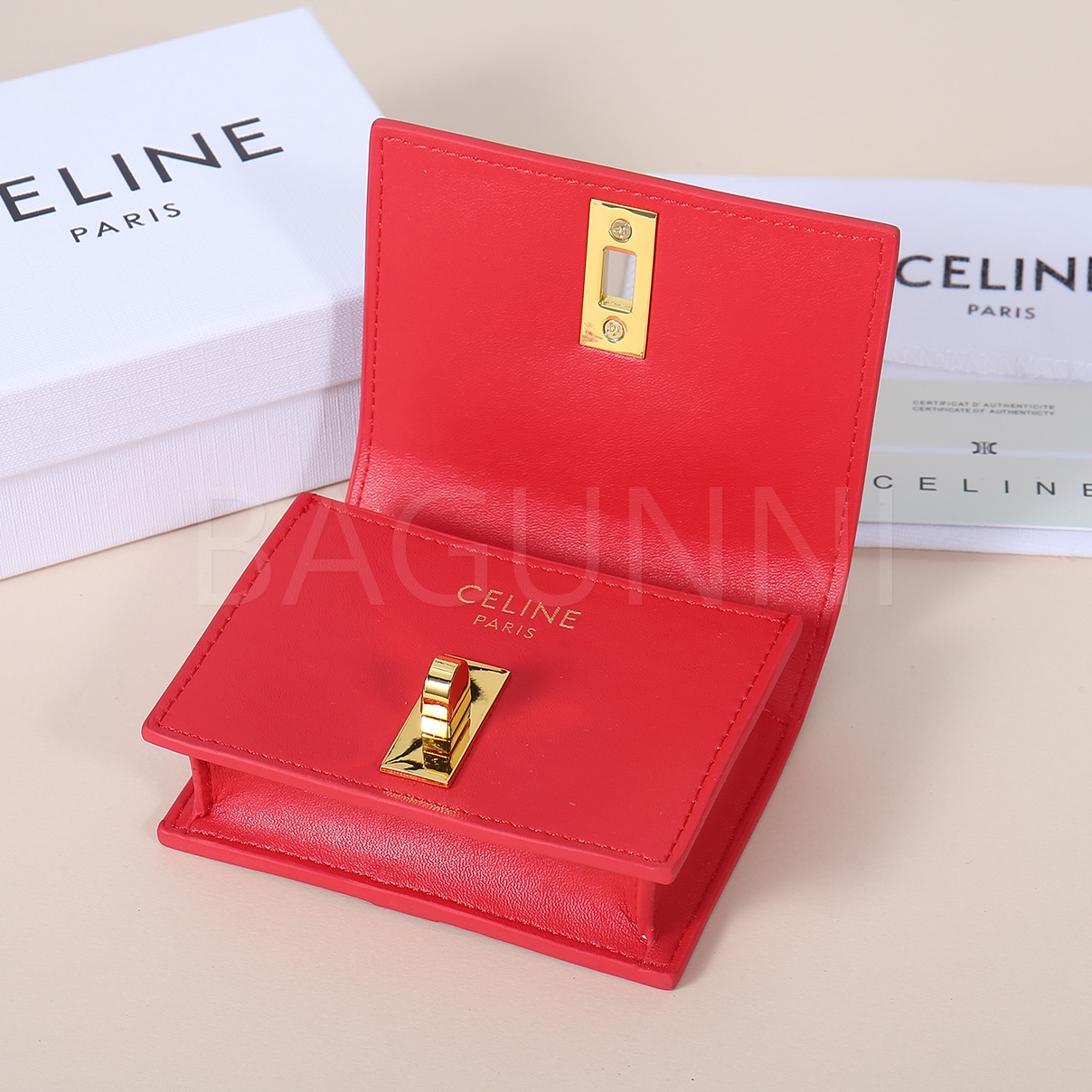 카프스킨의 질감이 돋보이는 셀린느 트리옹프 플랩 카드지갑입니다.