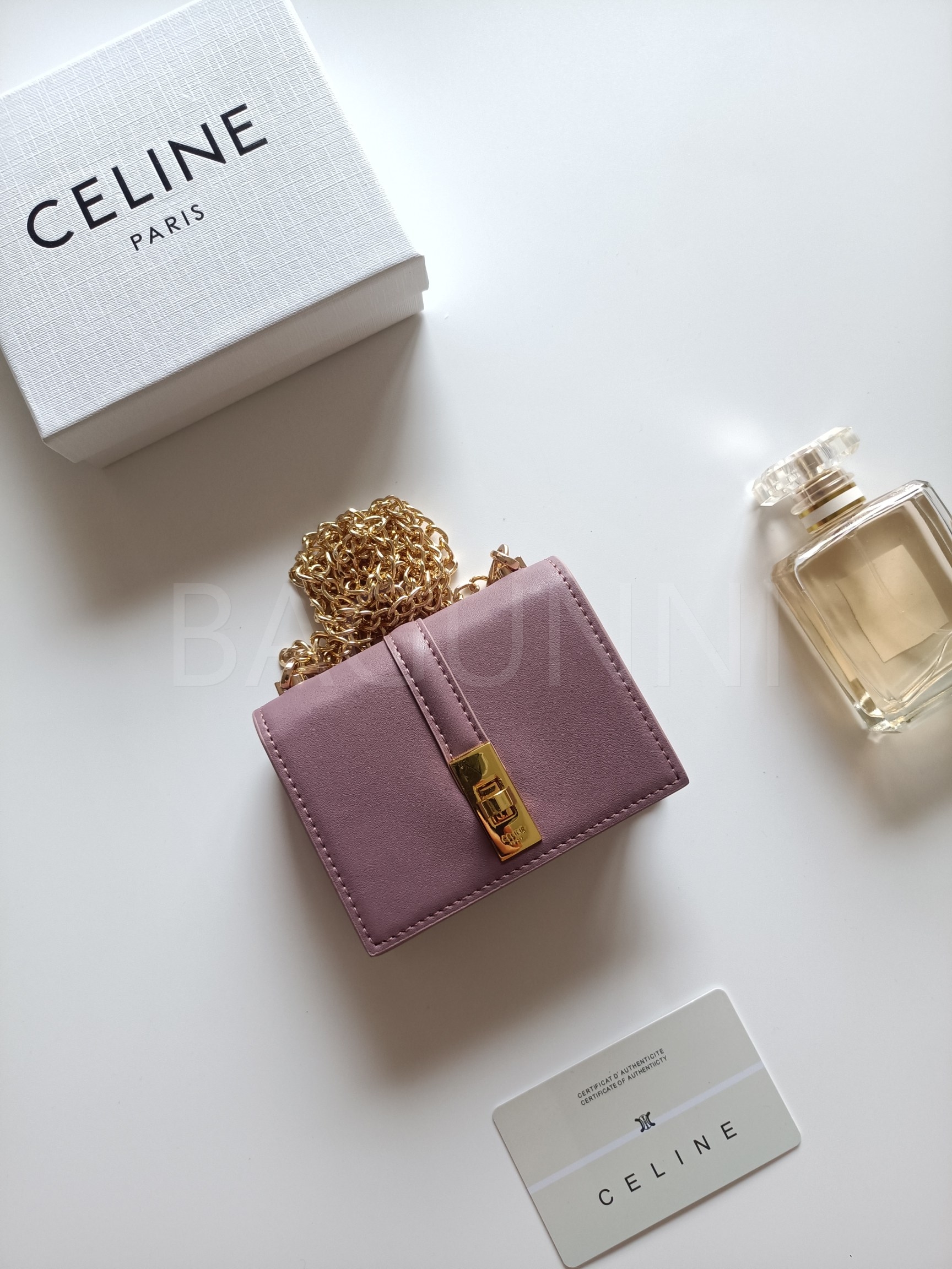 셀린느 특유의 무드가 자연스럽게 살아있는 트리옹프 플랩 카드지갑입니다.