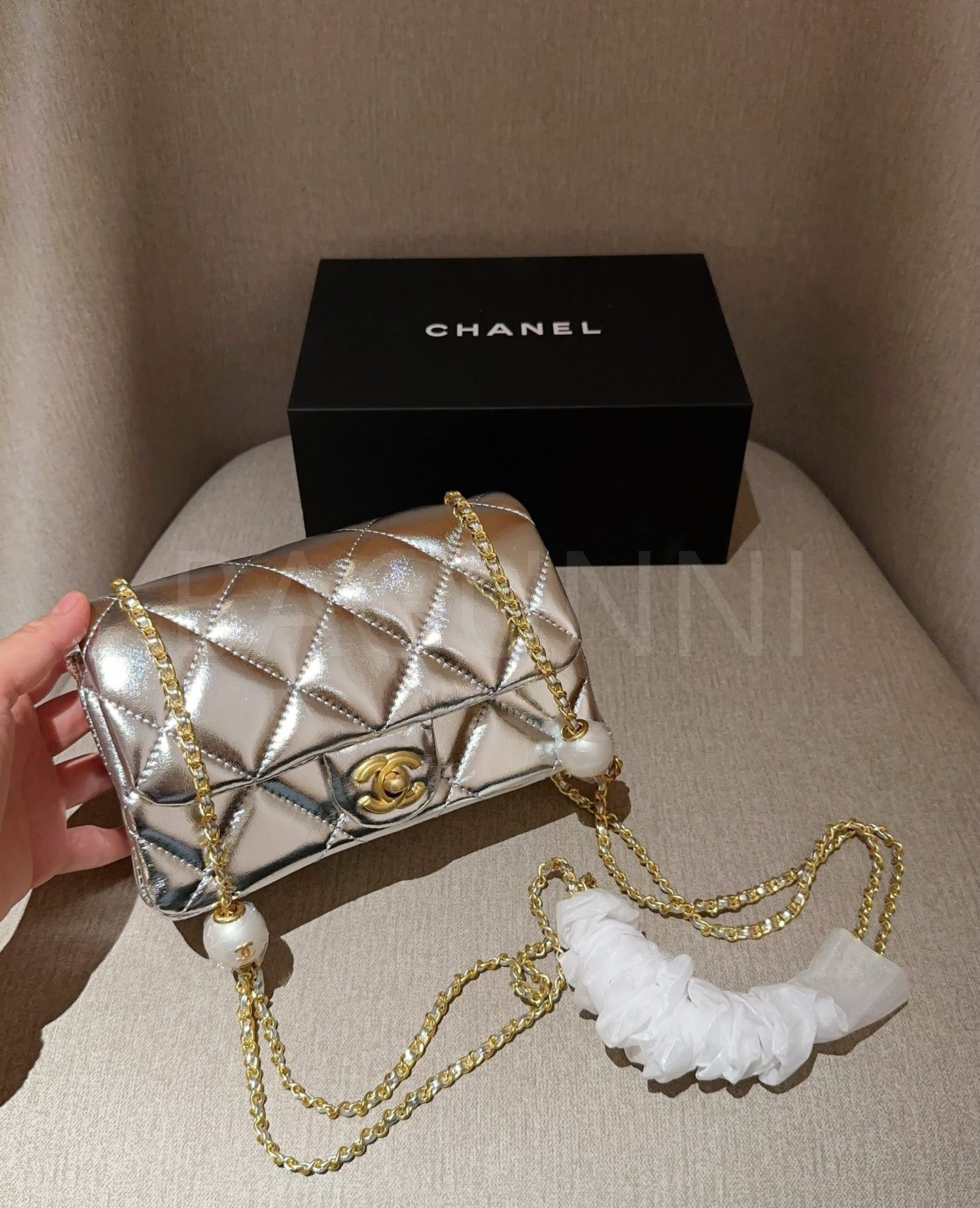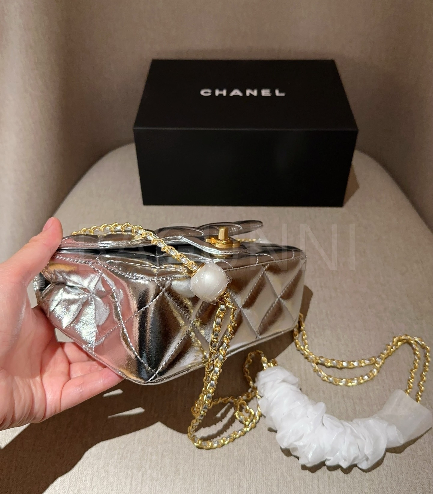 세련된 무드가 돋보이는 샤넬 클래식 플랩 미니백입니다.