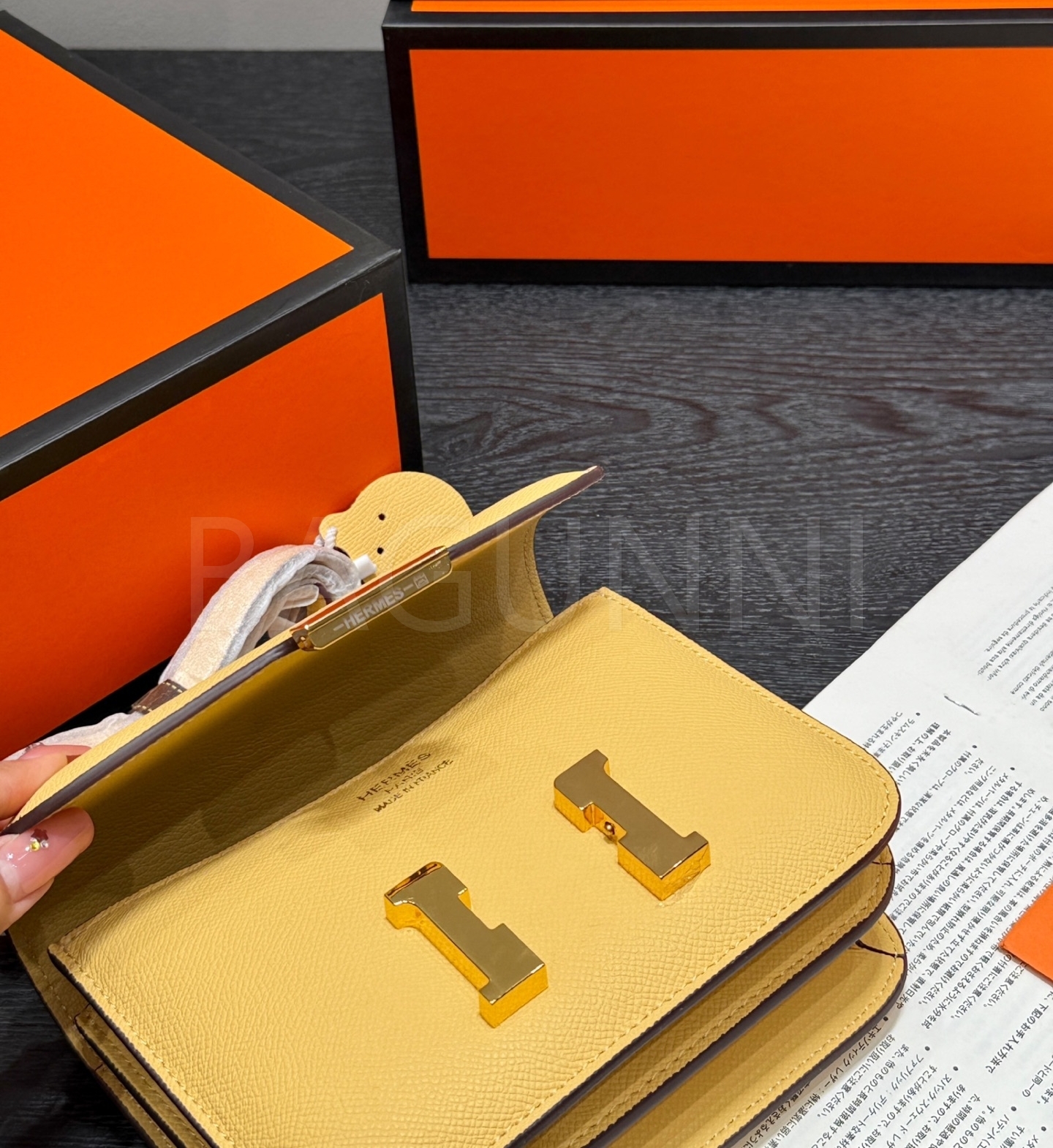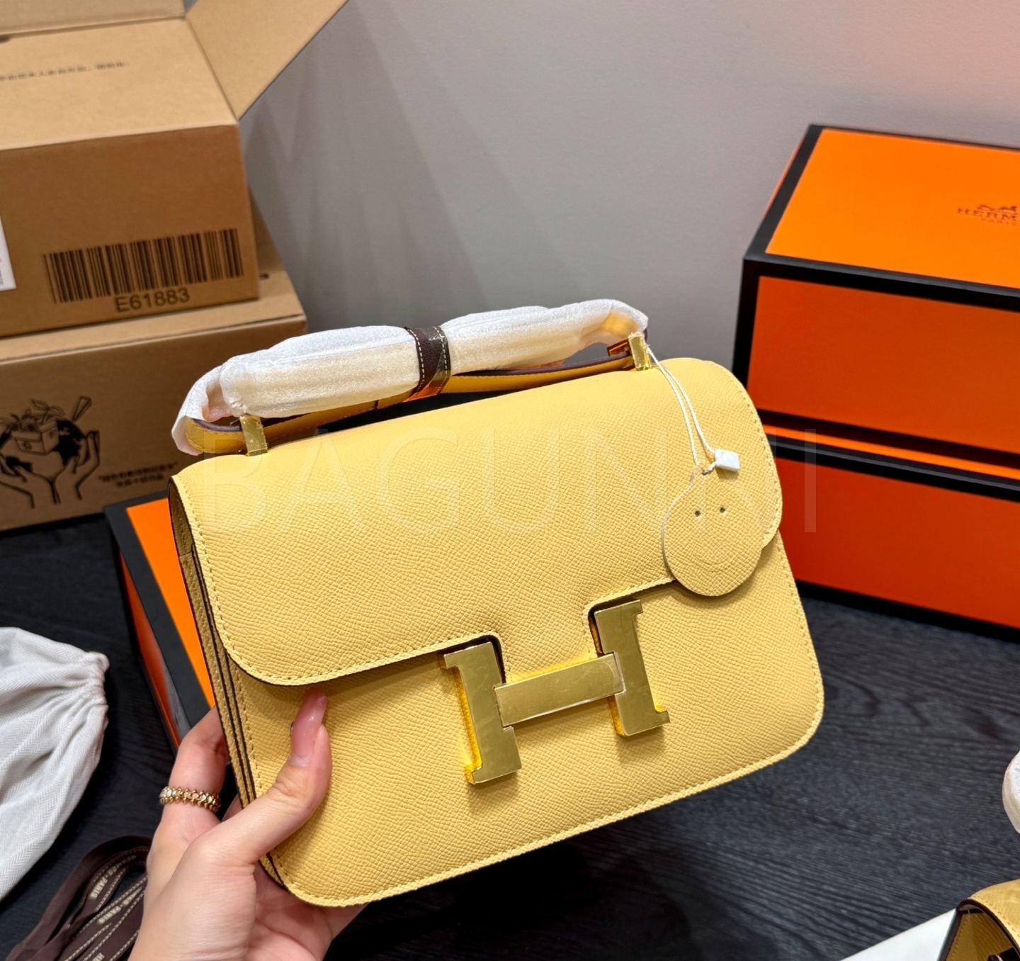 에르메스 콘스탄스 숄더백입니다. 가죽 특유의 질감이 자연스럽게 살아 있으며 브랜드 특유의 분위기를 편하게 즐기기 좋습니다.
