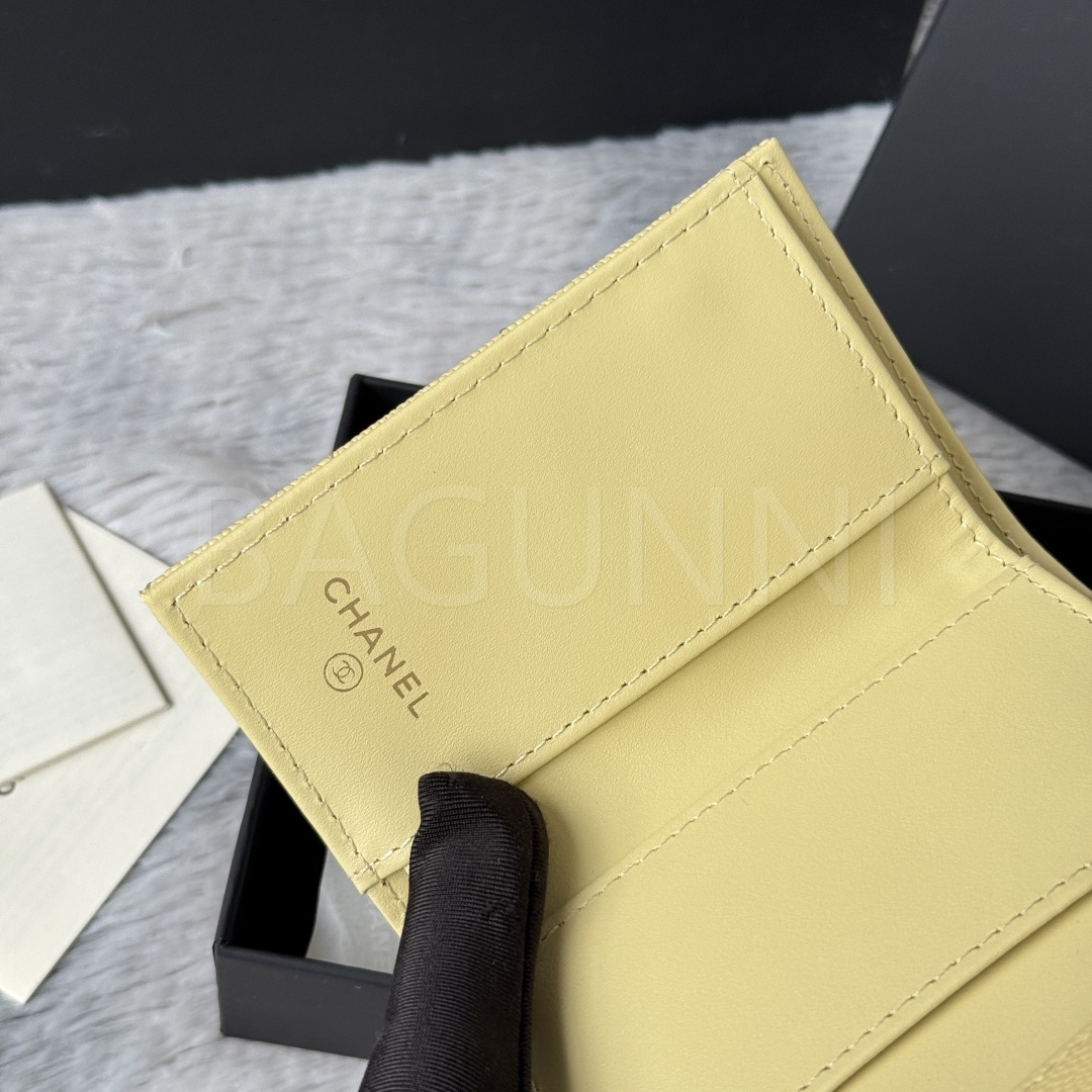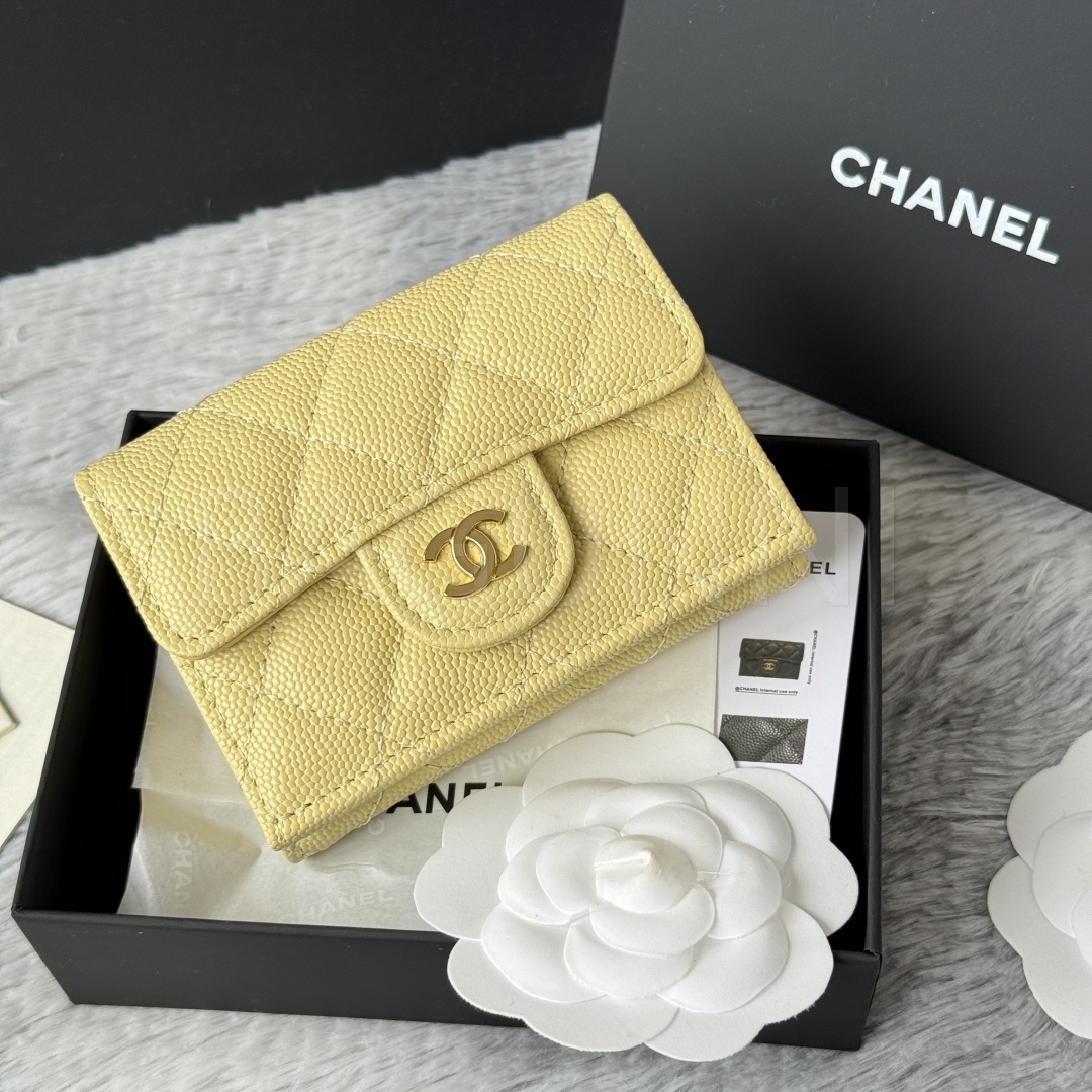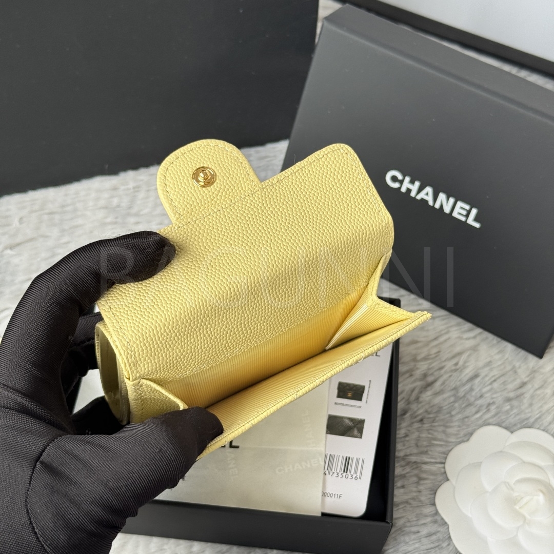 카프스킨의 질감이 돋보이는 샤넬 트리폴드 반지갑입니다.